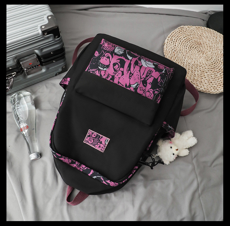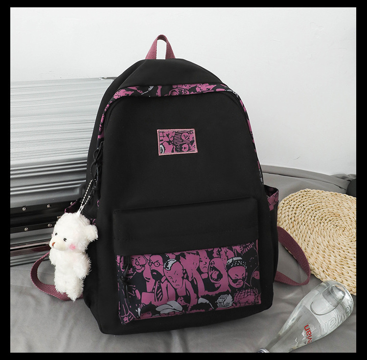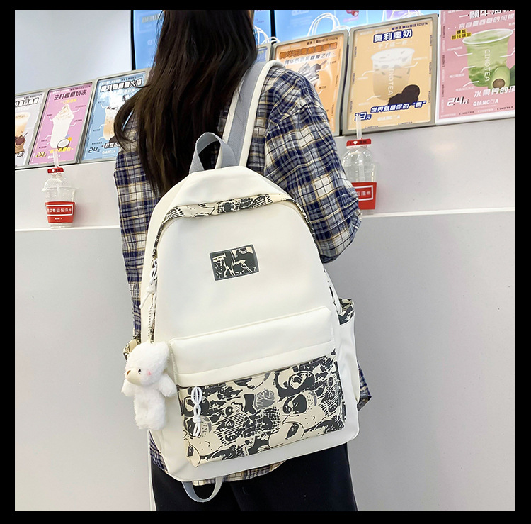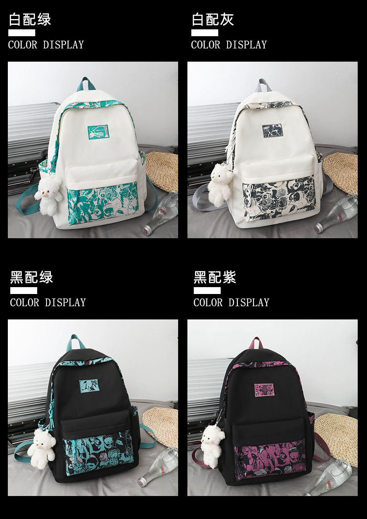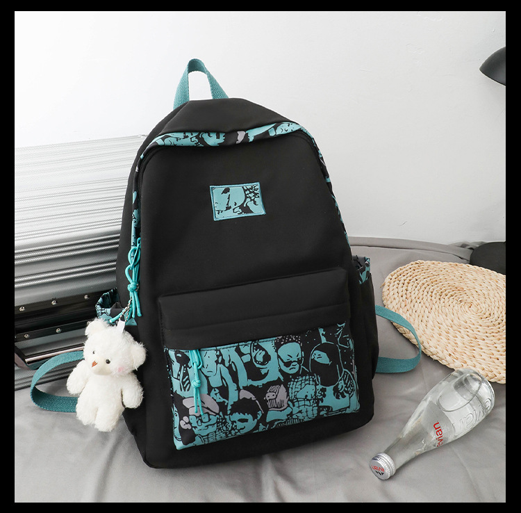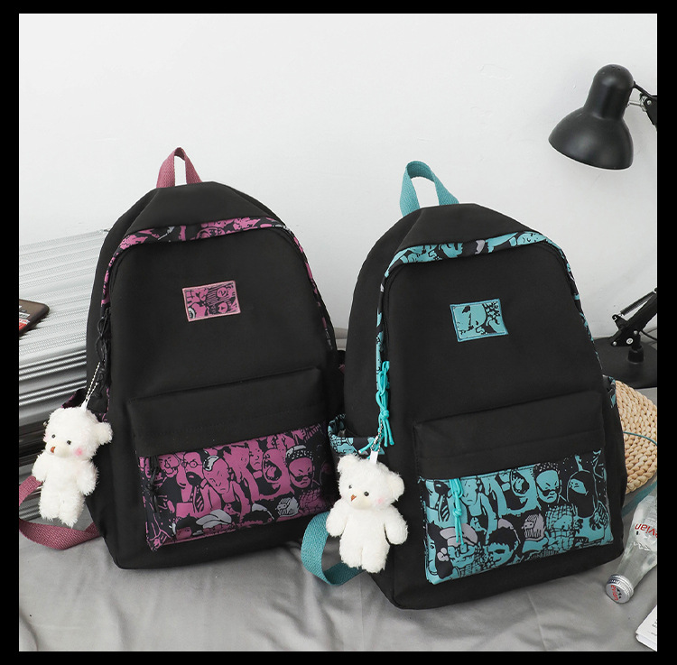 2023 새로운 학생 책가방 간단한 대용량 배낭 만화 낙서 컬러 매칭 패션 배낭 캠퍼스 스타일