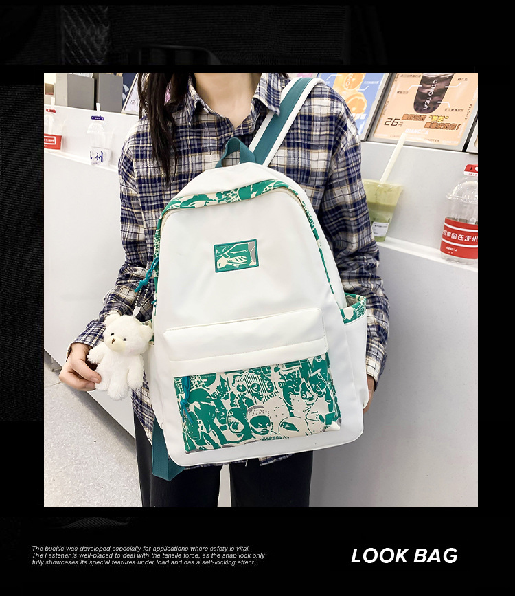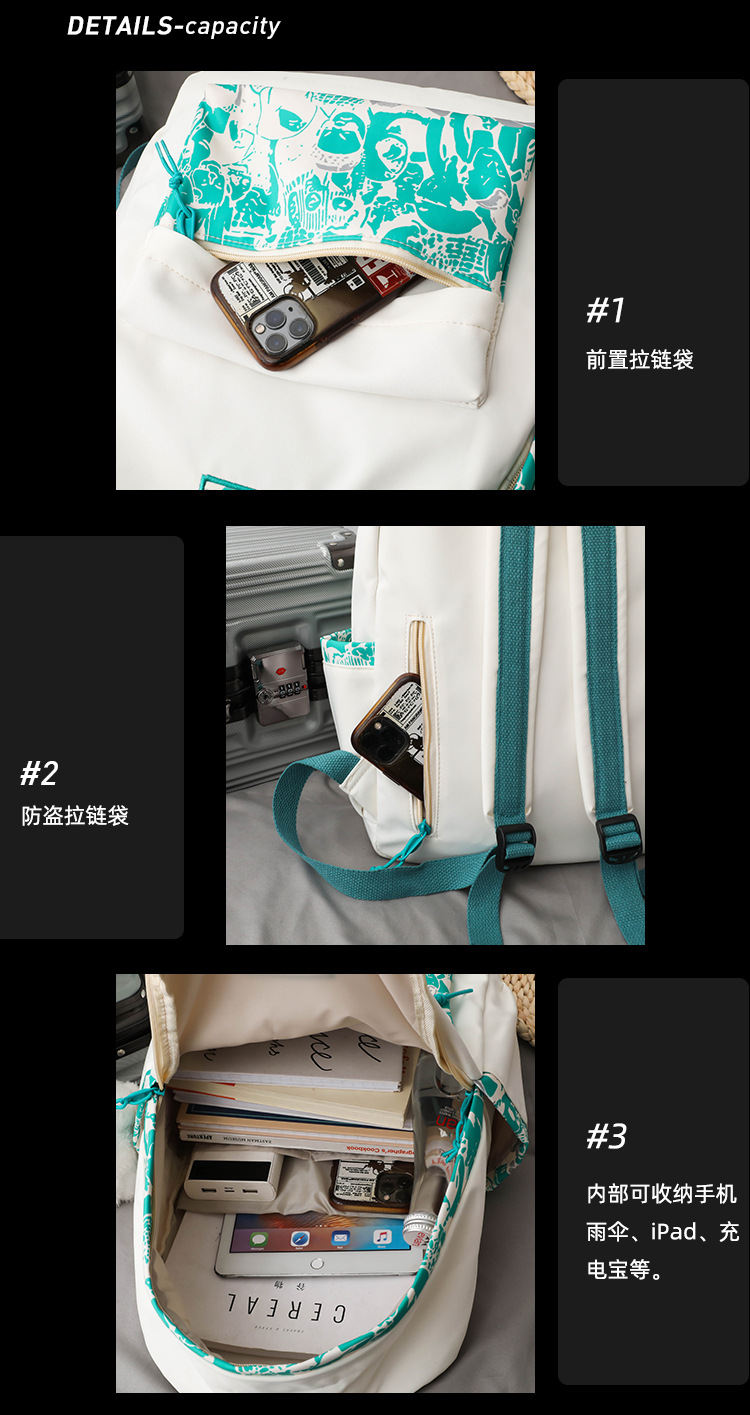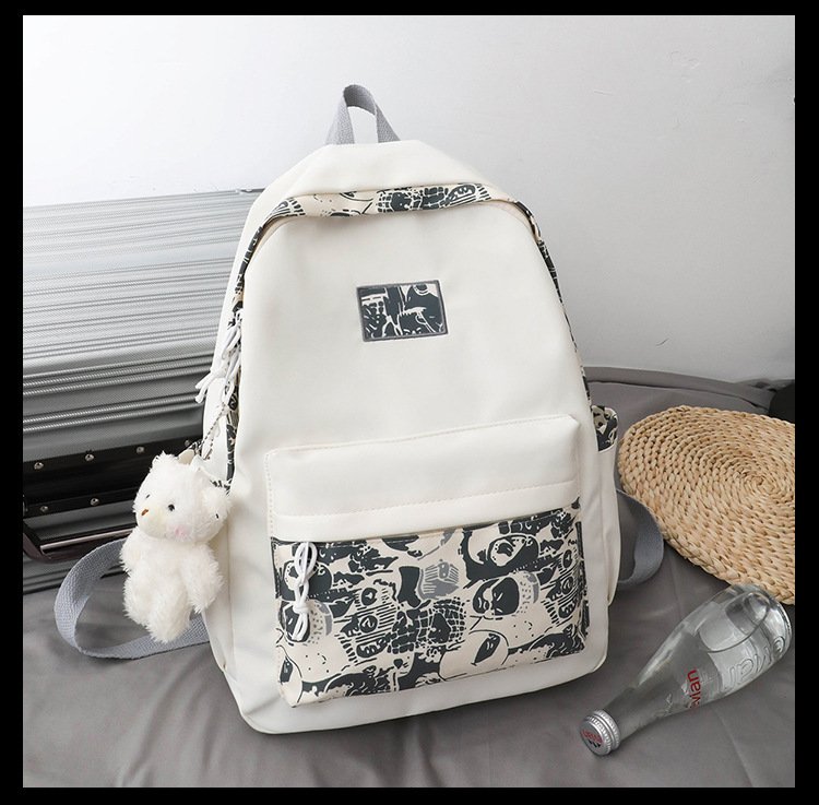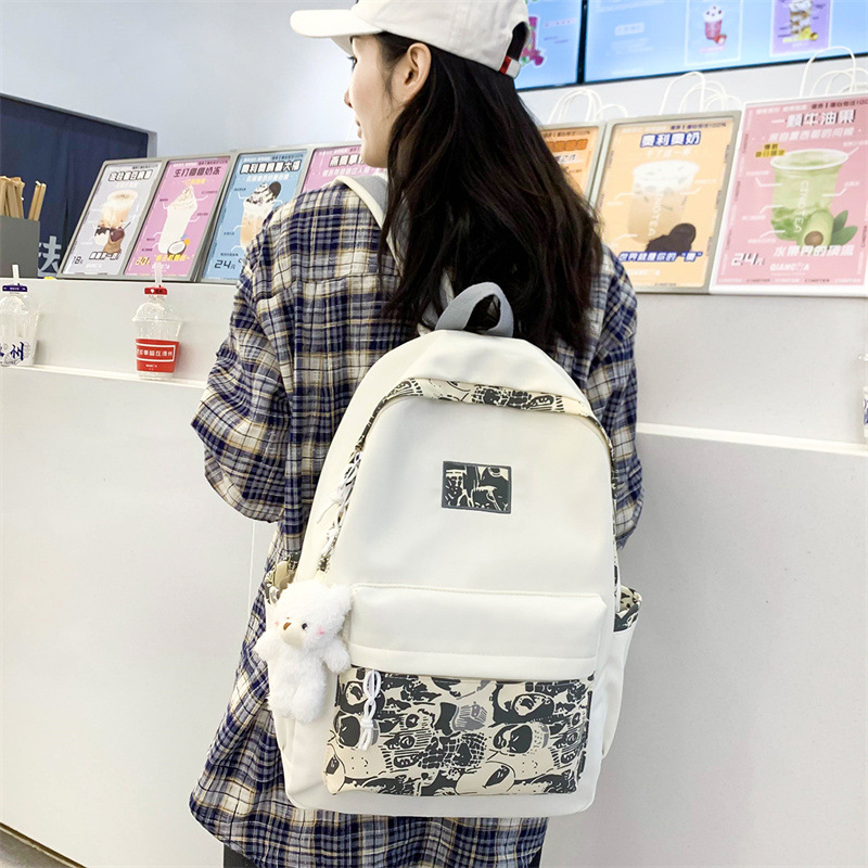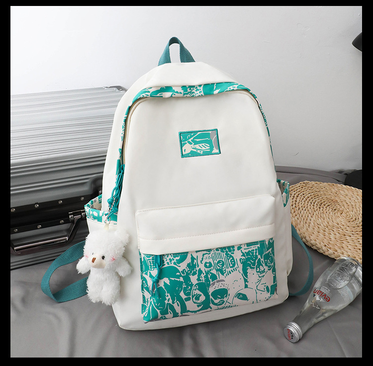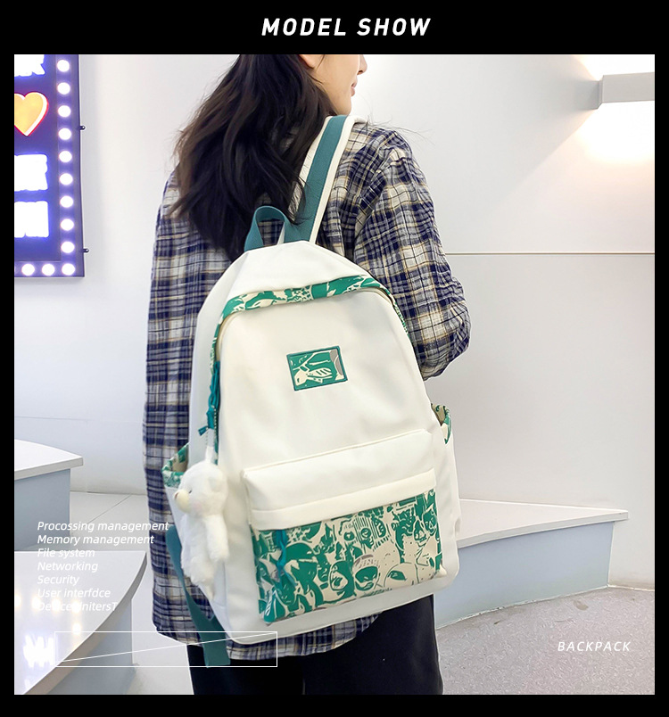 2023 새로운 학생 책가방 간단한 대용량 배낭 만화 낙서 컬러 매칭 패션 배낭 캠퍼스 스타일