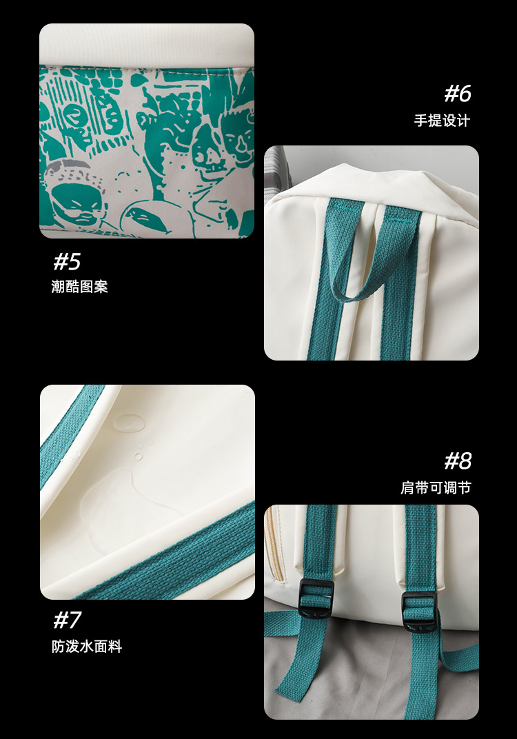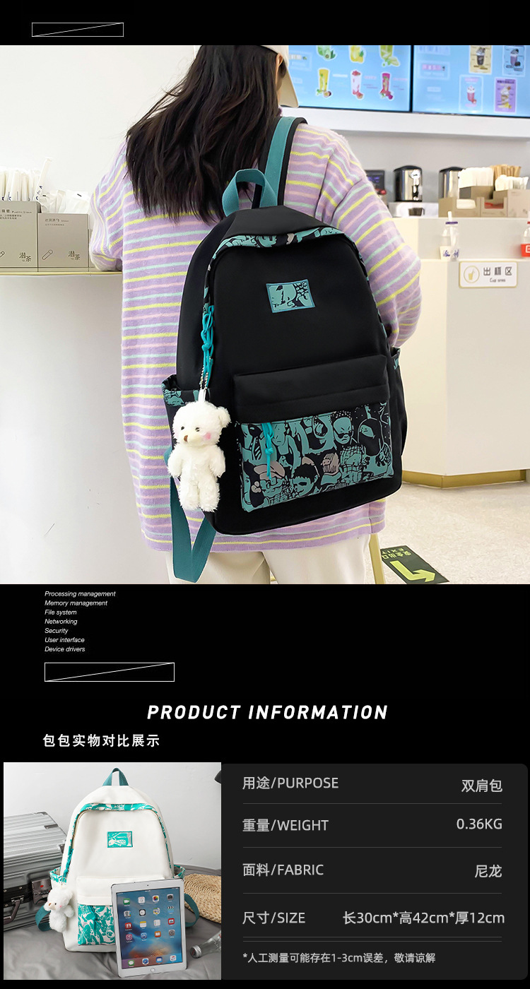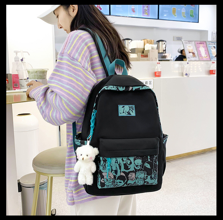 2023 새로운 학생 책가방 간단한 대용량 배낭 만화 낙서 컬러 매칭 패션 배낭 캠퍼스 스타일스토어 가기