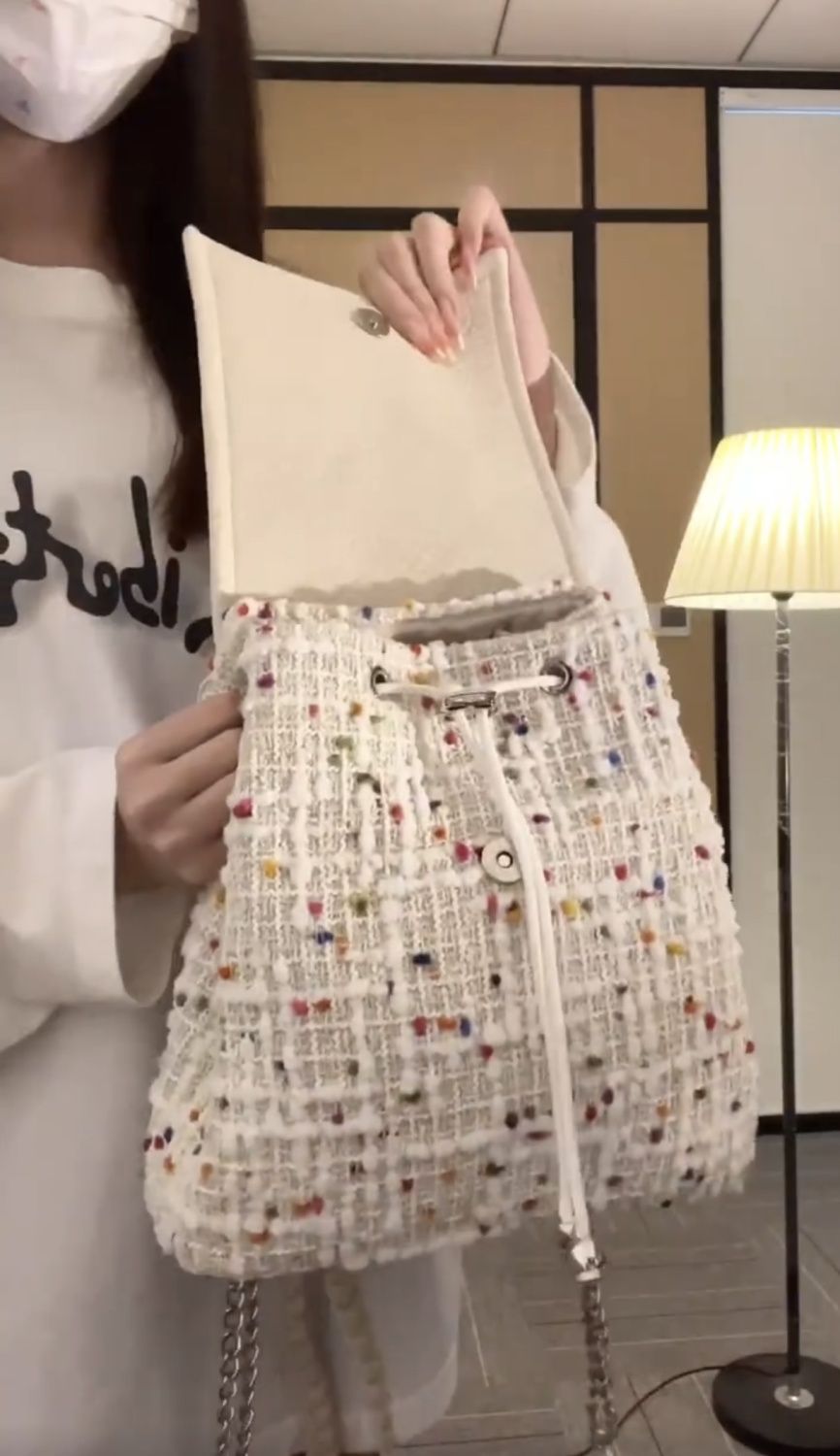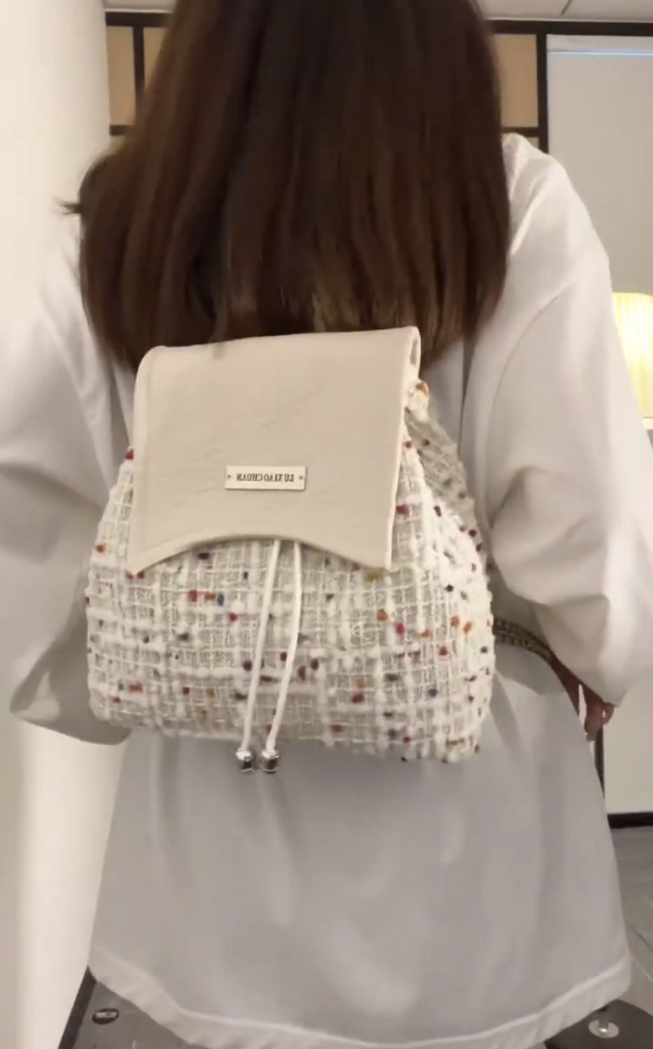 오리지널 인스 스타일 2025 신상 가방, 귀여운 책가방, 여대생 조임끈 가방, 조임끈 백팩, 체인백스토어 가기