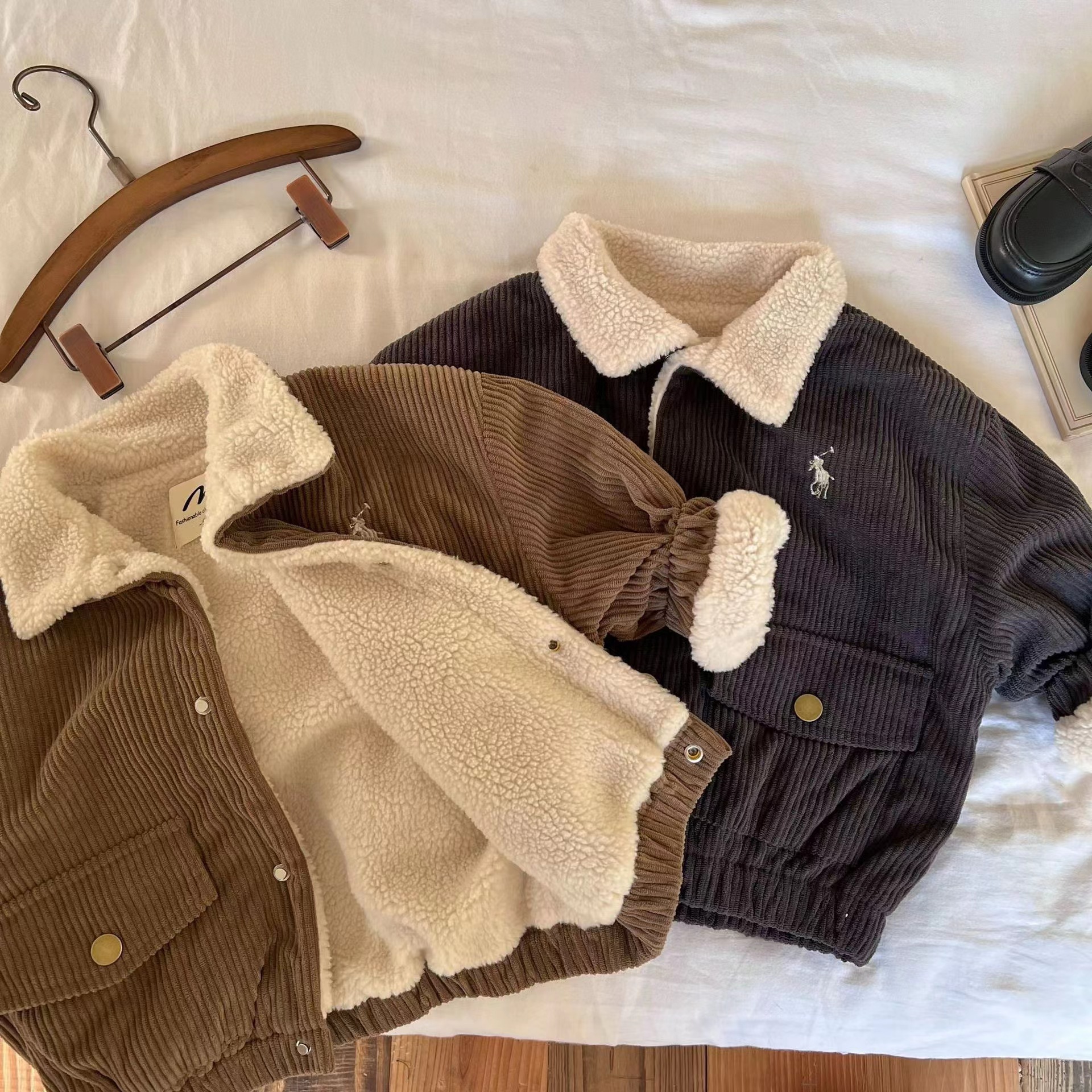 한국 스타일의 기모 옷깃 동물 새끼 사슴 면 패딩 코듀로이 재킷 아기 소년과 소녀를위한 새로운 스타일 따뜻한 재킷스토어 가기