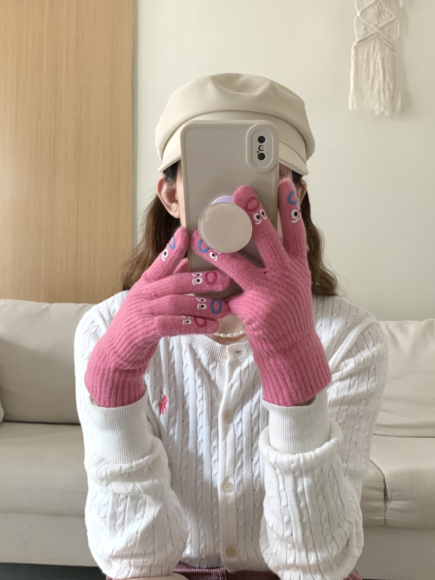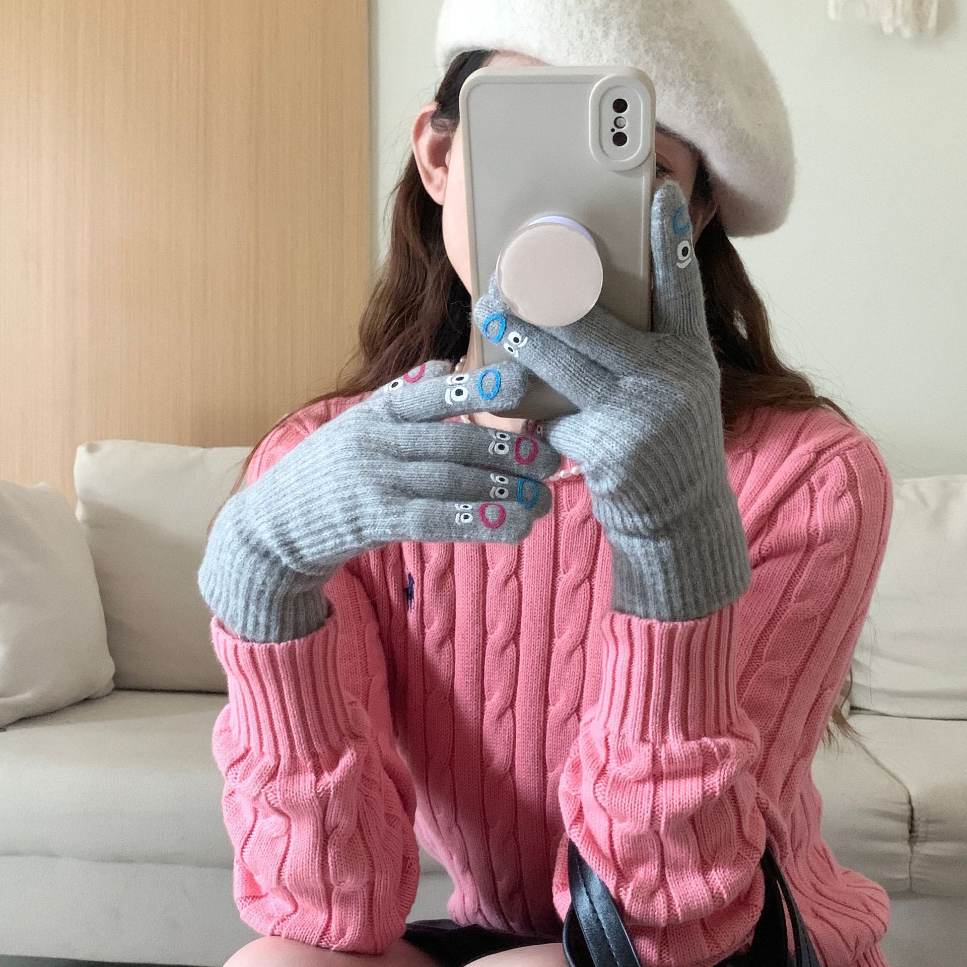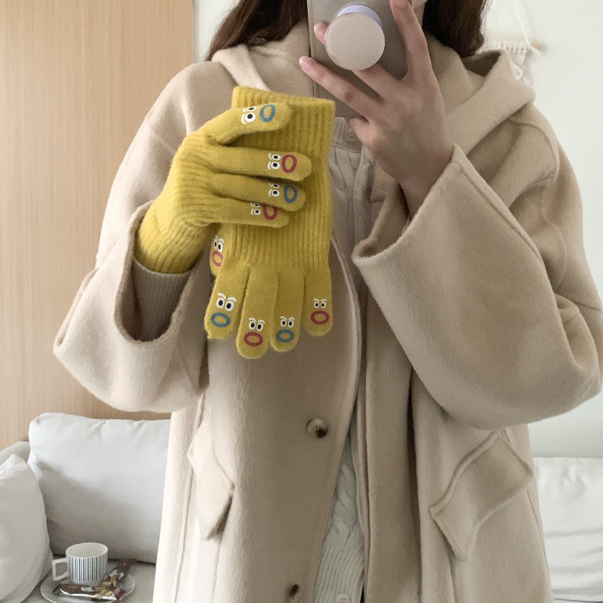 표현 어린이 장갑 다섯 손가락 귀여운 한국식 양모 두꺼운 따뜻한 니트 부모와 자식 장갑 가을과 겨울에 초등학생을위한스토어 가기