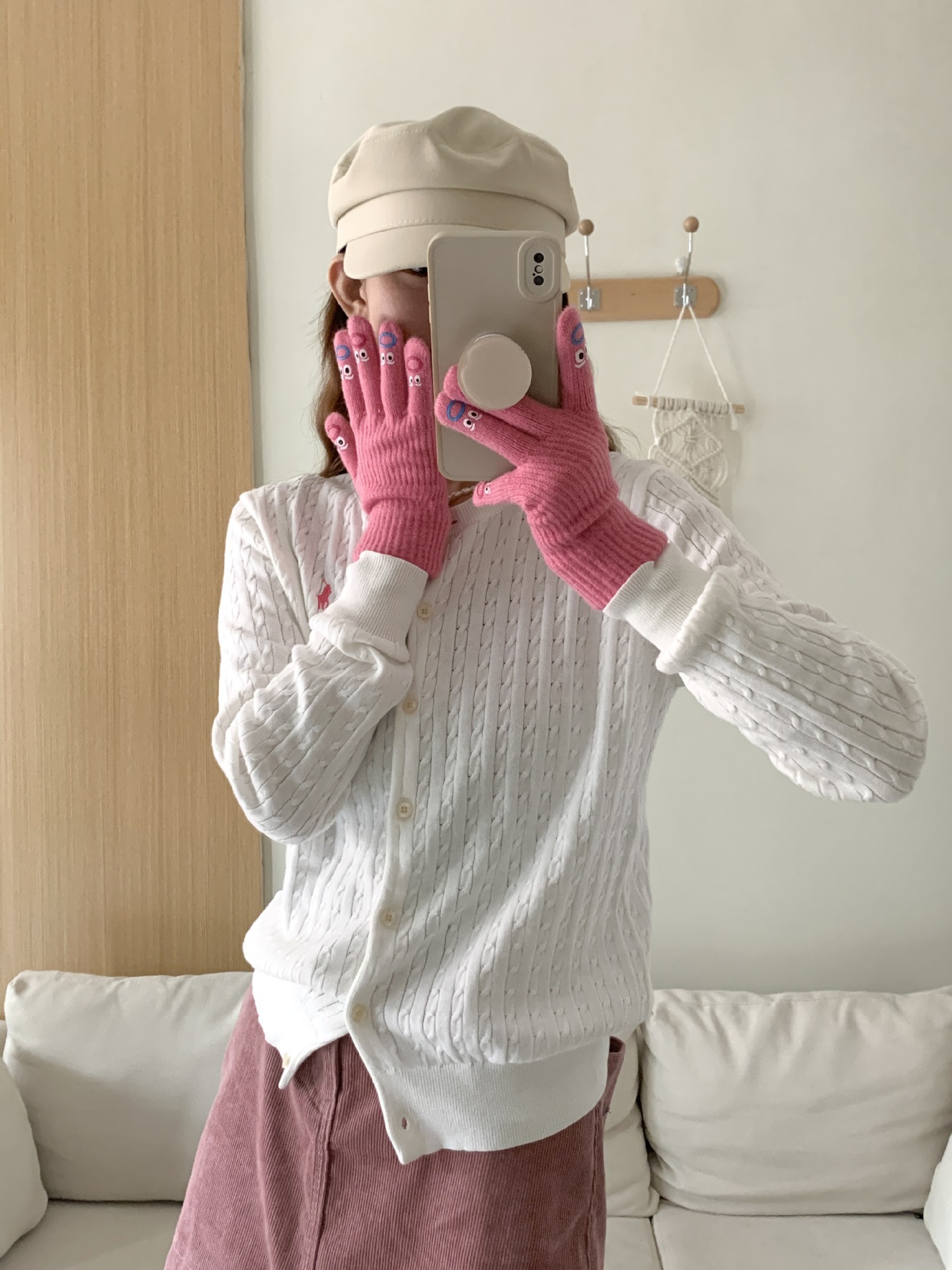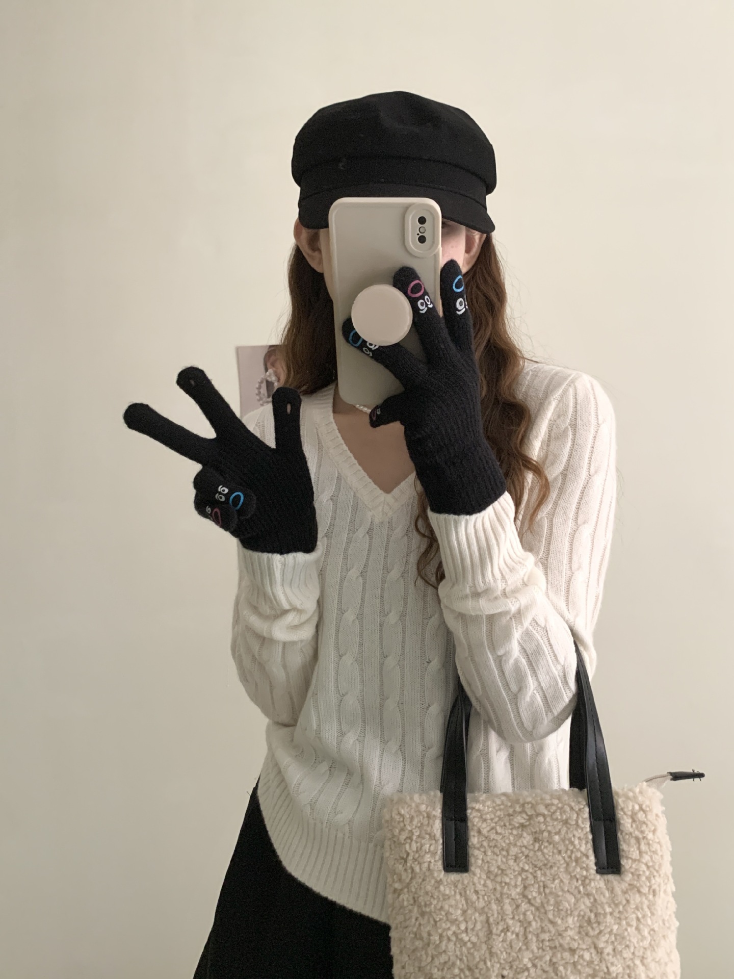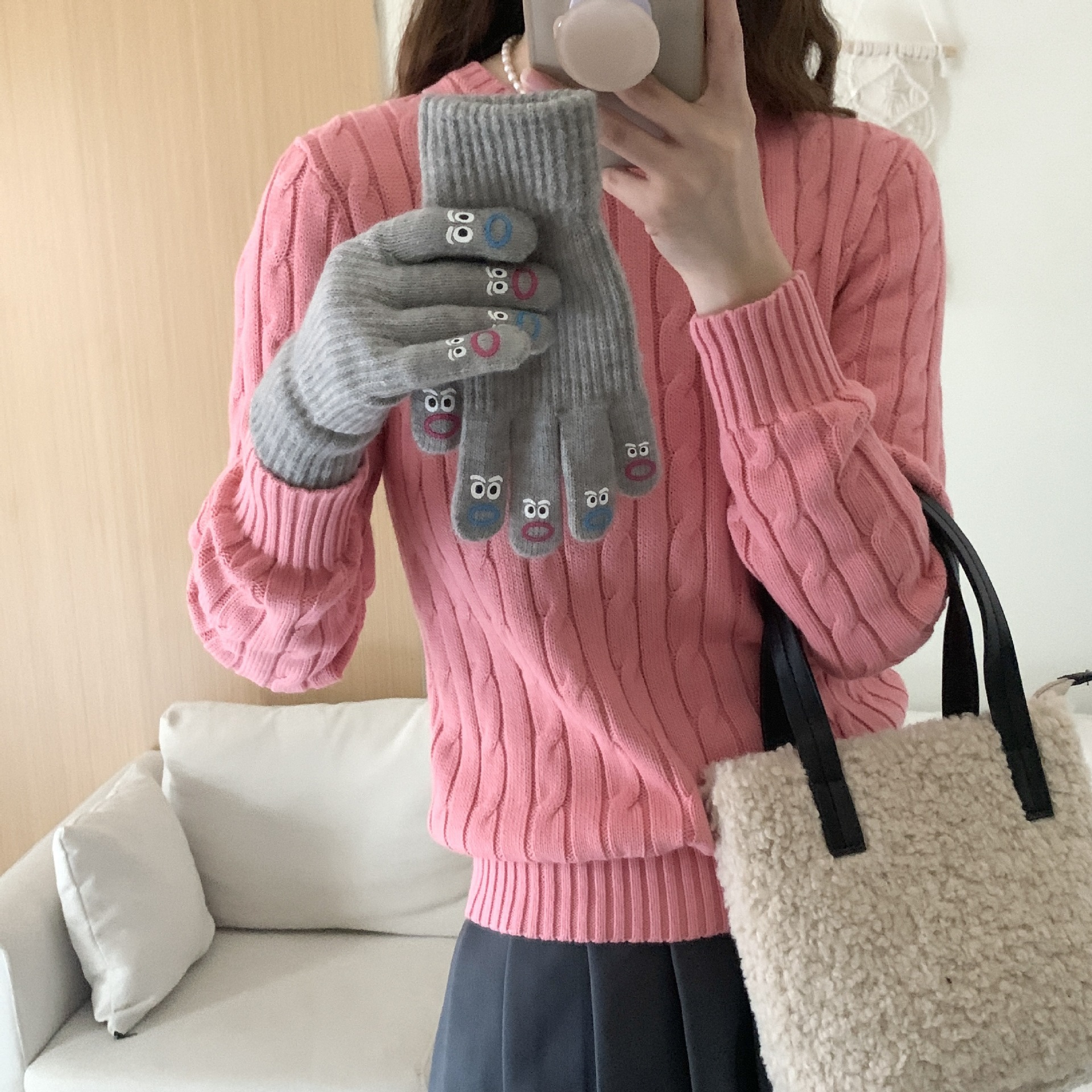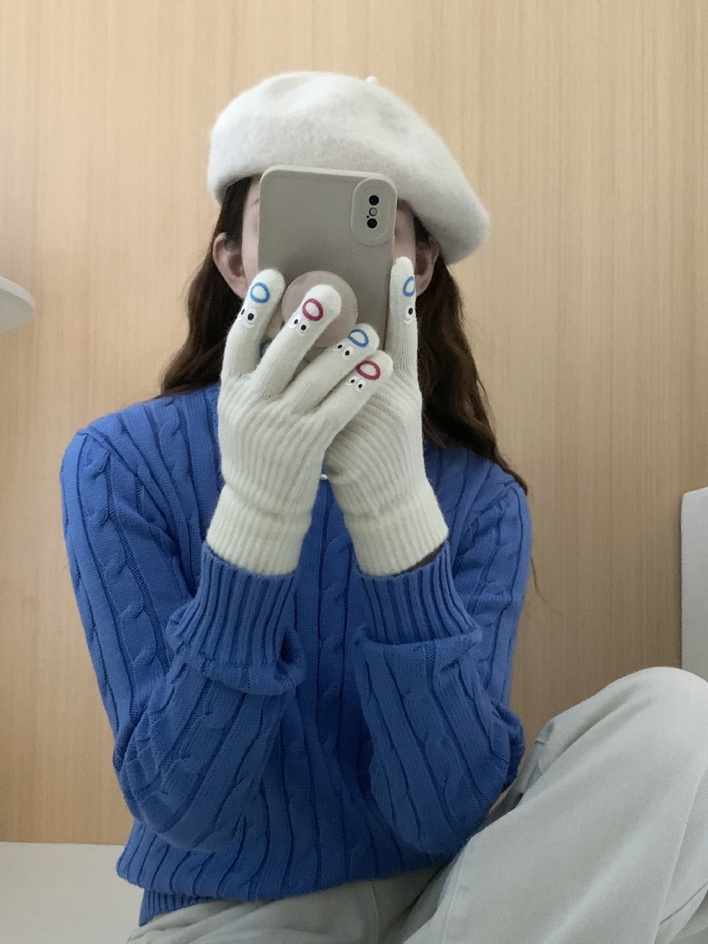 표현 어린이 장갑 다섯 손가락 귀여운 한국식 양모 두꺼운 따뜻한 니트 부모와 자식 장갑 가을과 겨울에 초등학생을위한스토어 가기