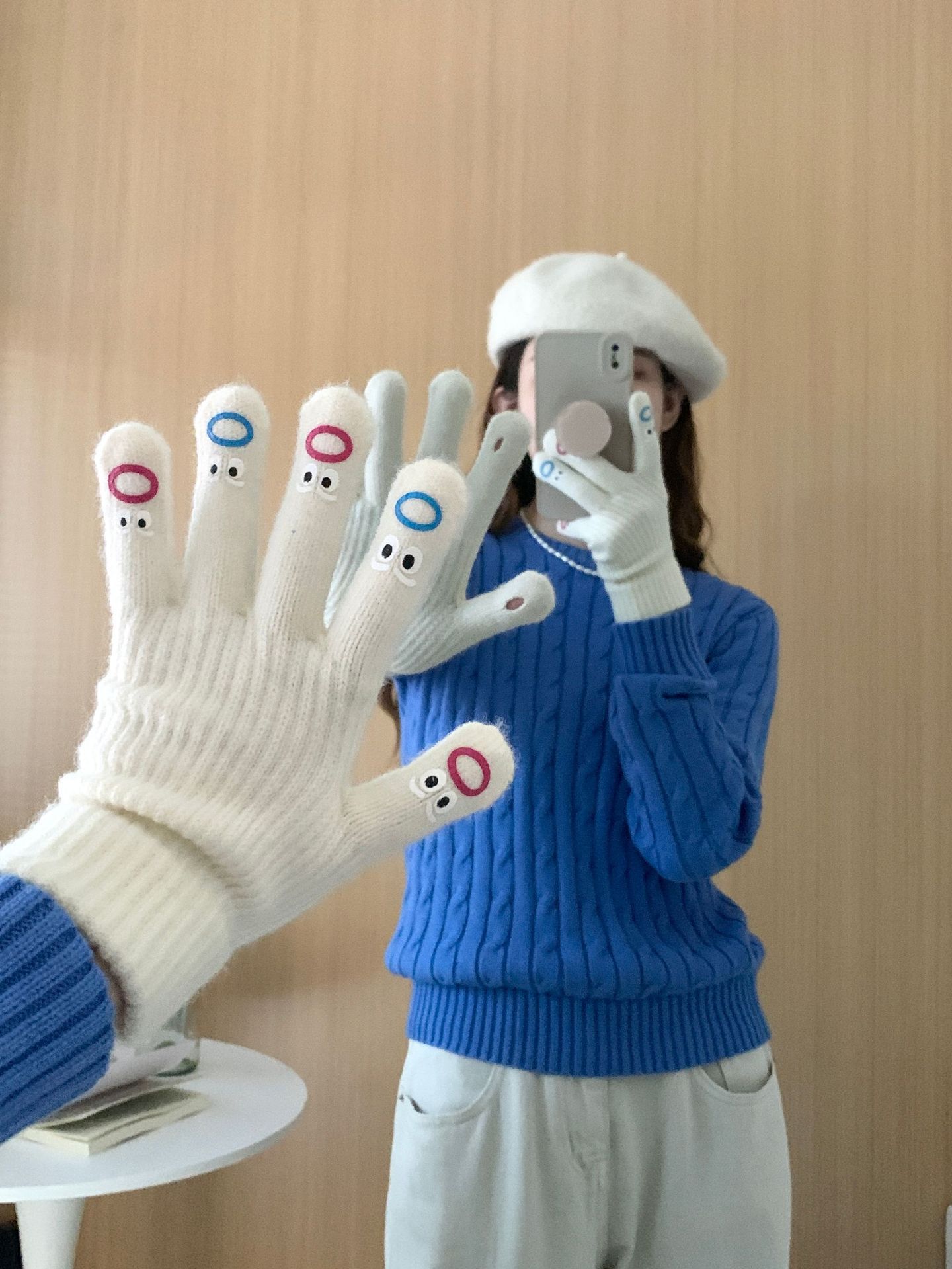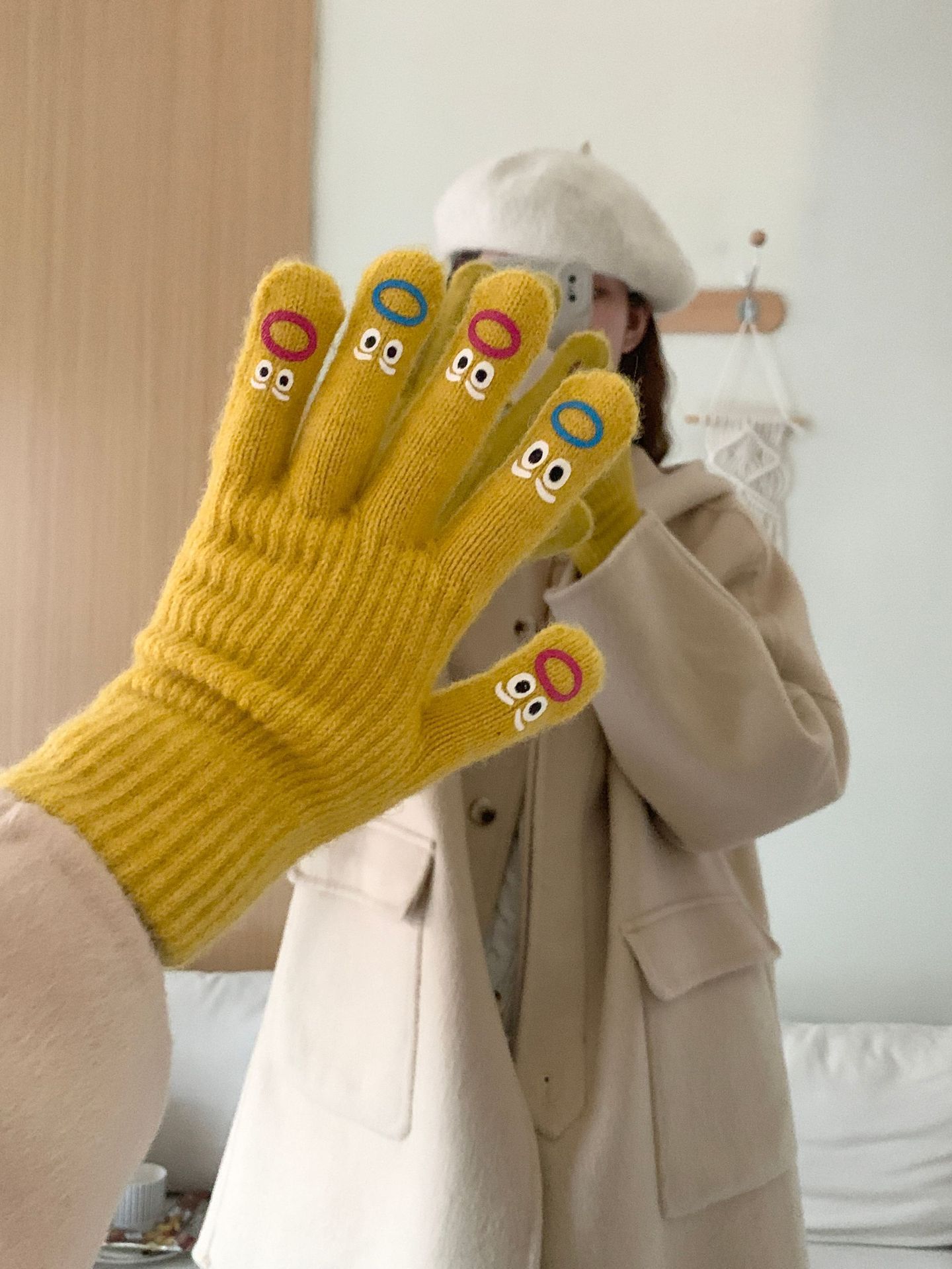 表情儿童手套五指可爱韩版毛线加厚保暖针织亲子手套秋冬季小学生