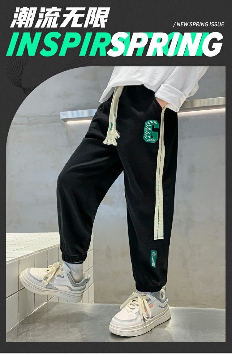 아동 스포츠 바지 소년 바지 봄, 가을 2023 새로운 스타일 소년 운동복 느슨한 소년 캐주얼 자수 트렌드스토어 가기