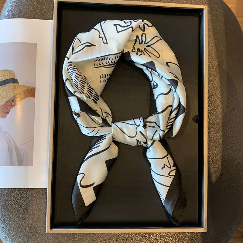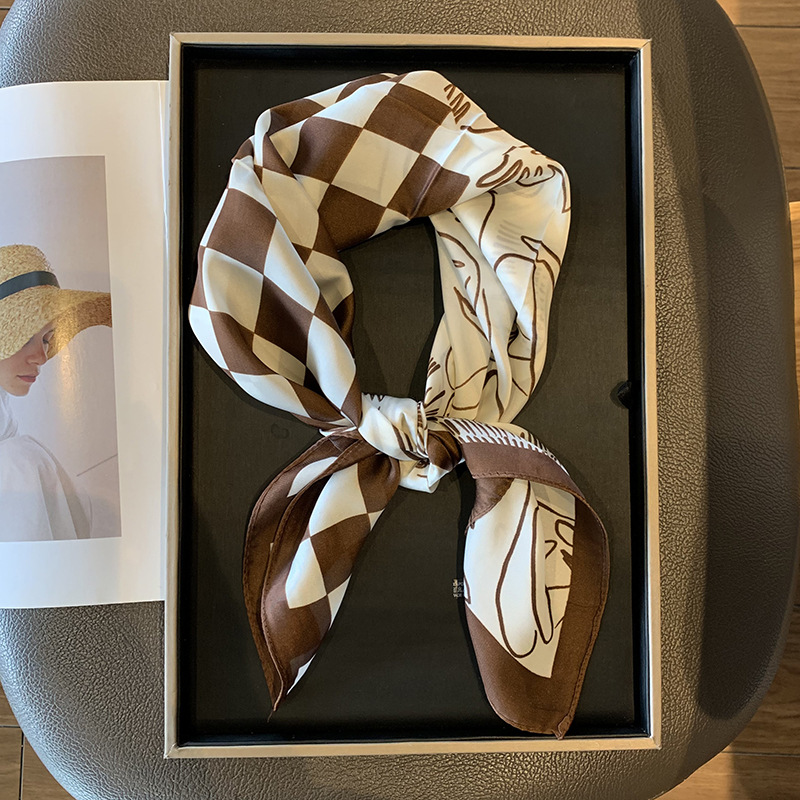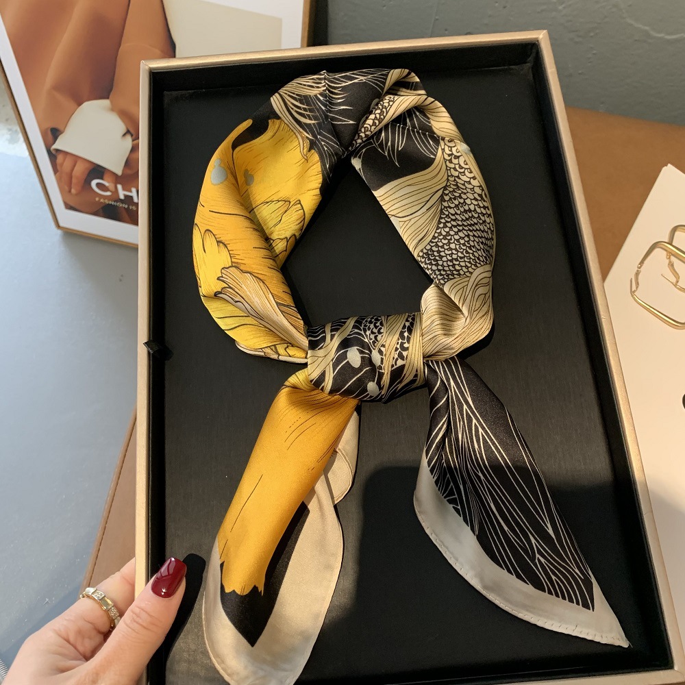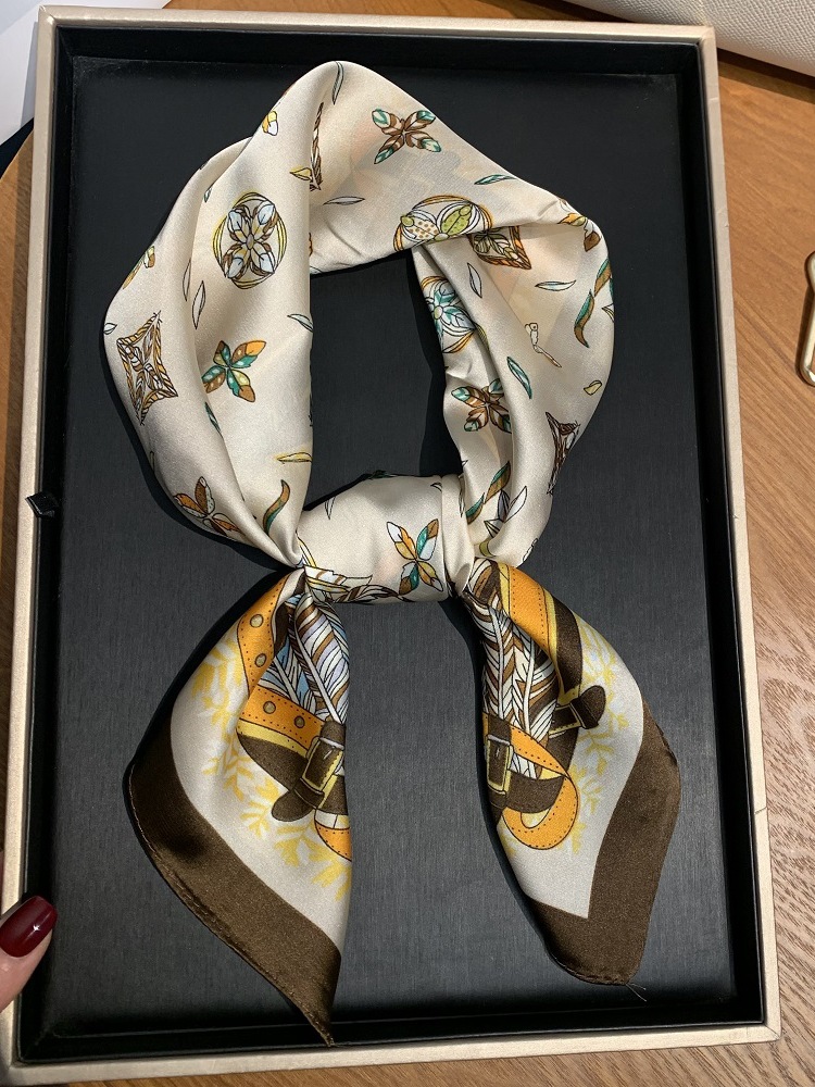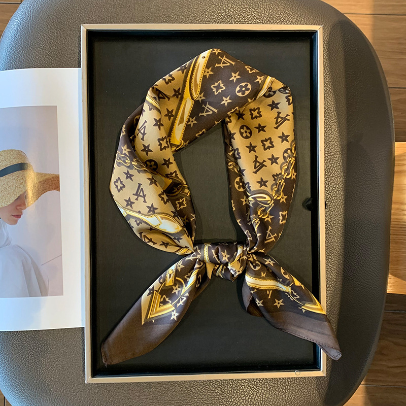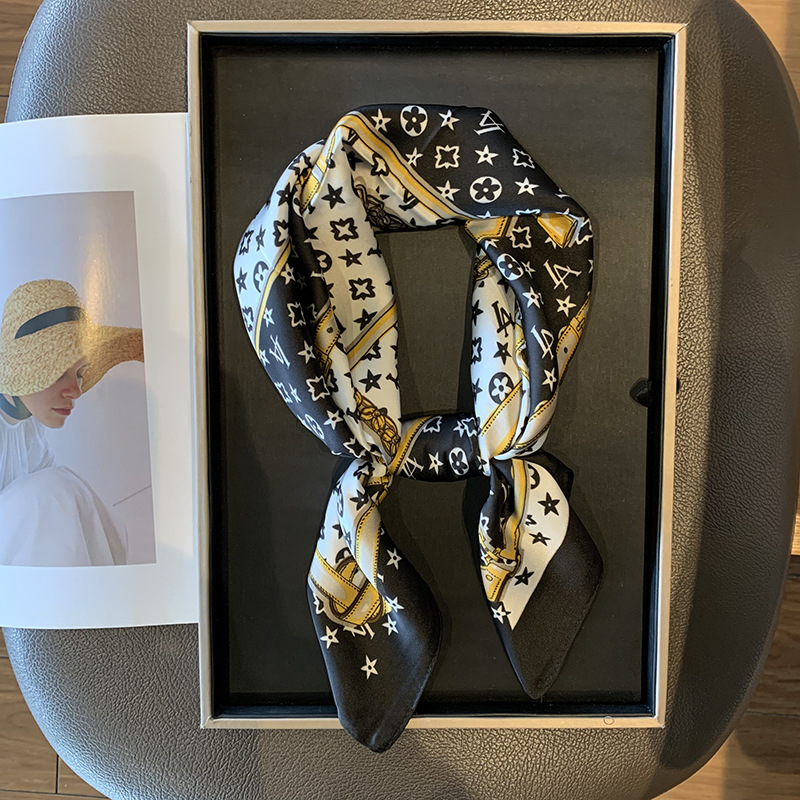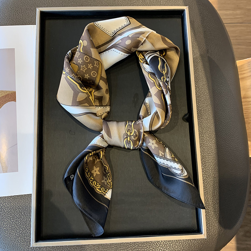 실크 스카프 여성용 2023 새로운 스타일 스몰 스퀘어 스카프 하이 엔드 센스 빅 브랜드 스타일 목 보호 스카프 선물 매칭 셔츠 패션 스카프스토어 가기