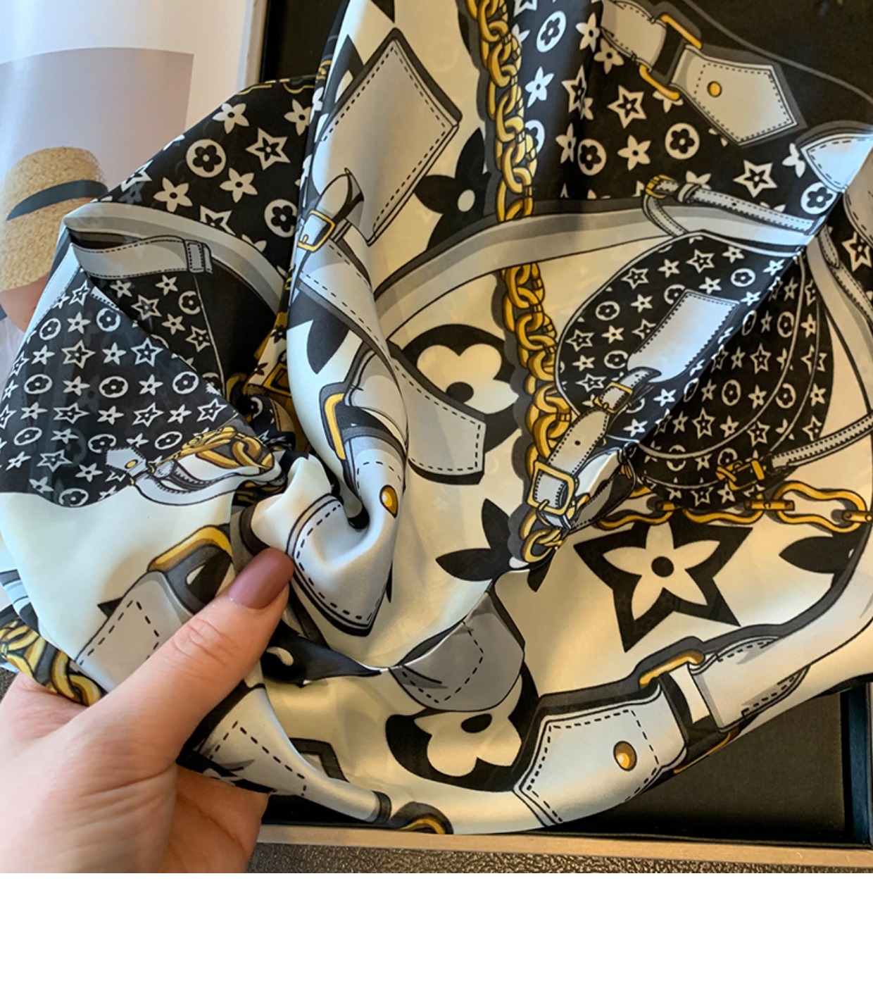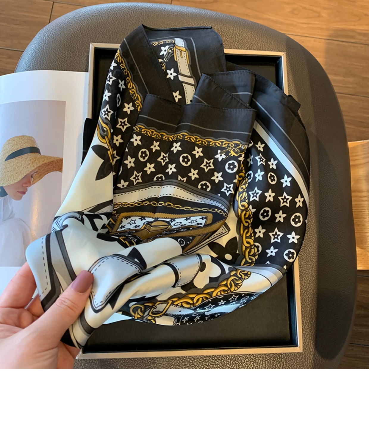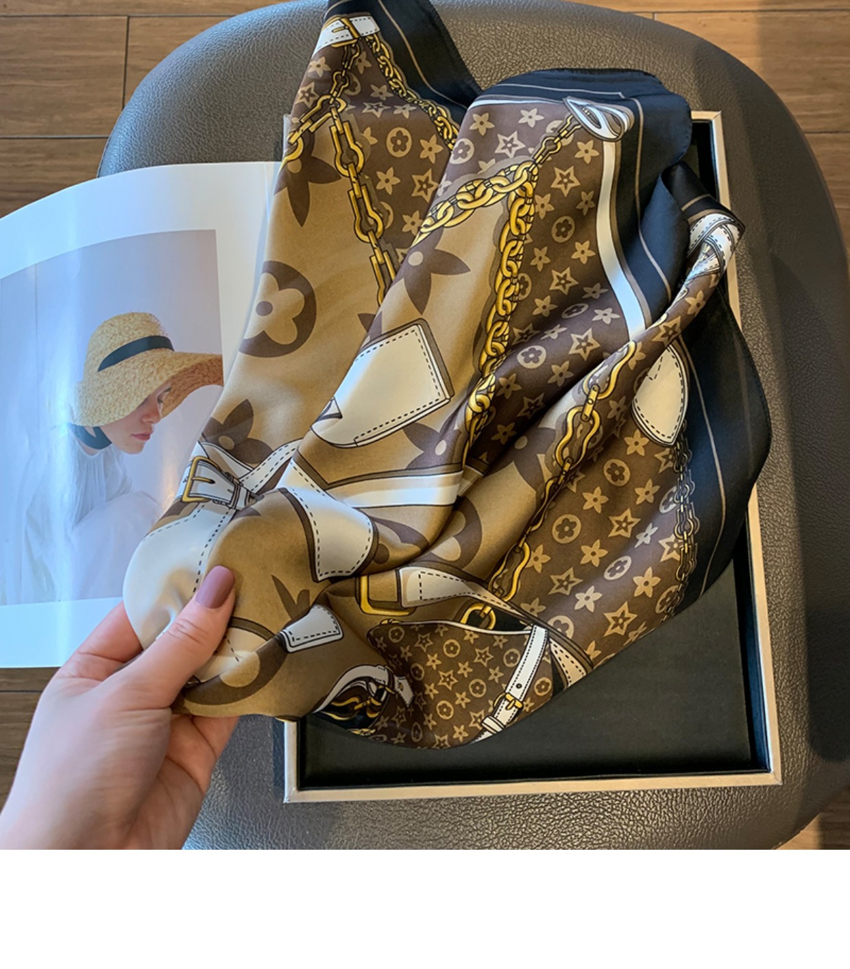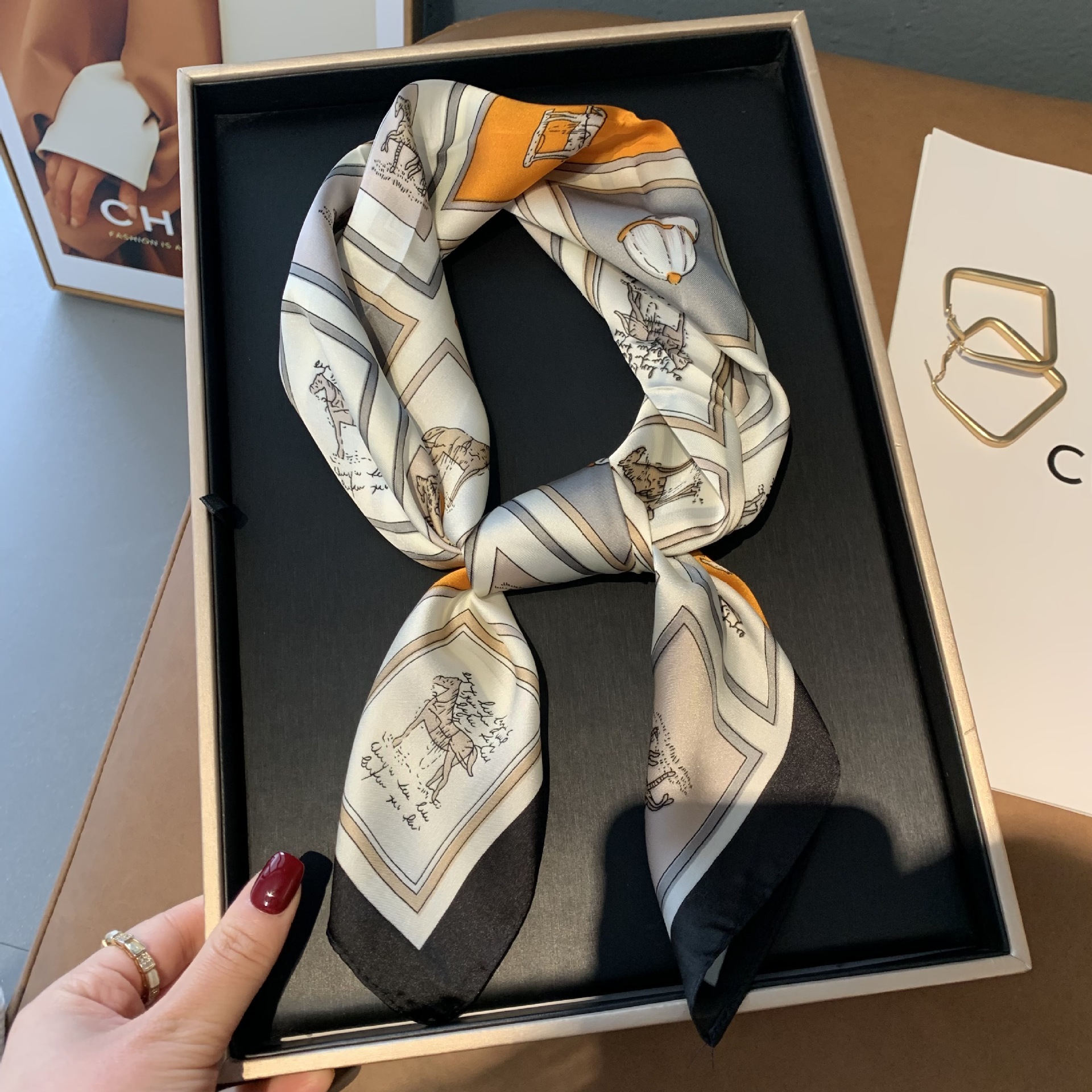실크 스카프 여성용 2023 새로운 스타일 스몰 스퀘어 스카프 하이 엔드 센스 빅 브랜드 스타일 목 보호 스카프 선물 매칭 셔츠 패션 스카프스토어 가기