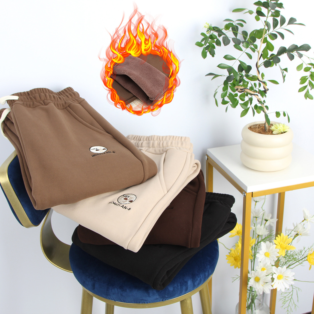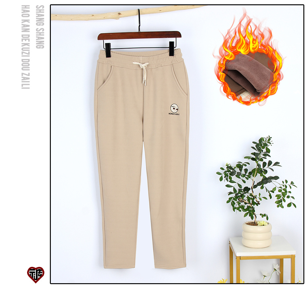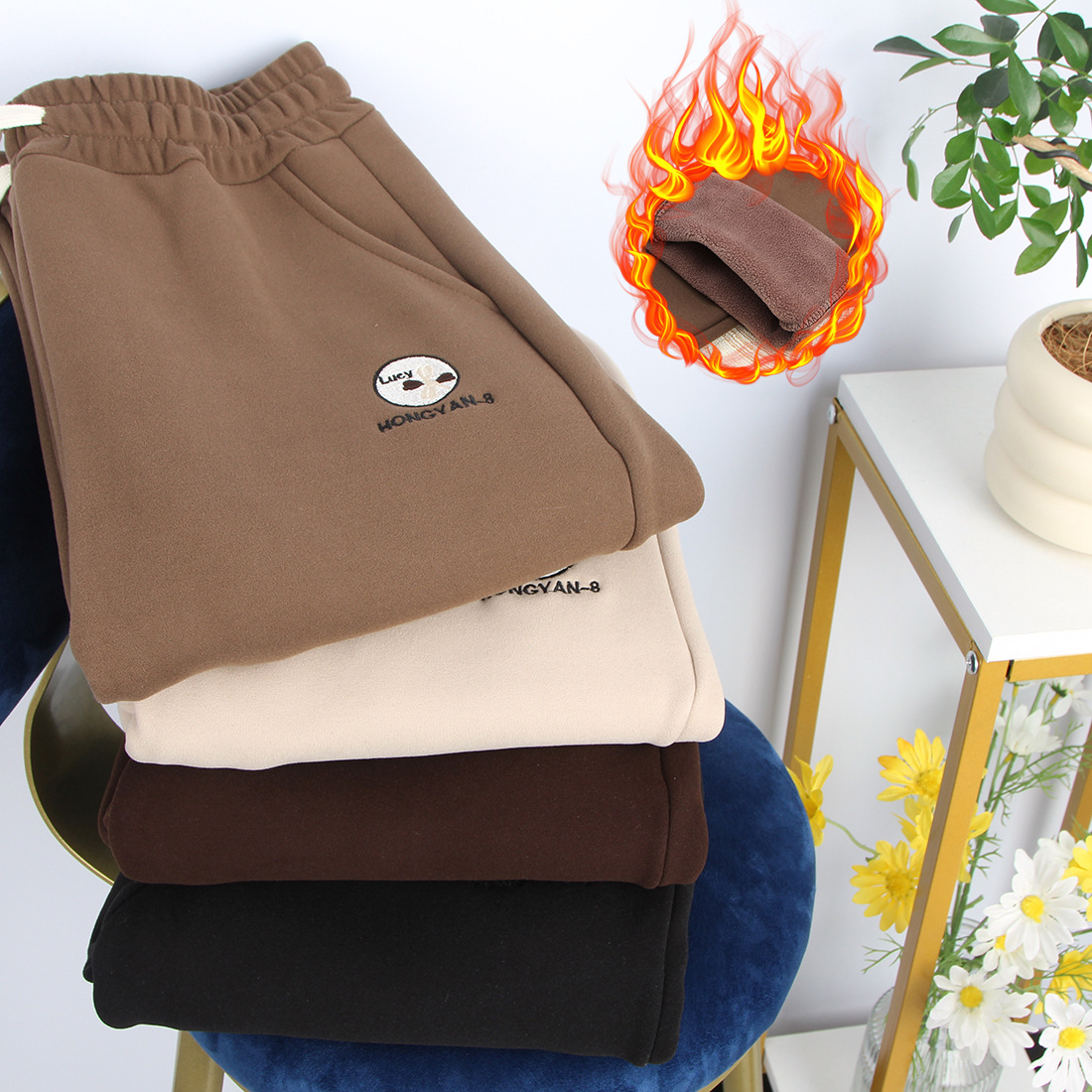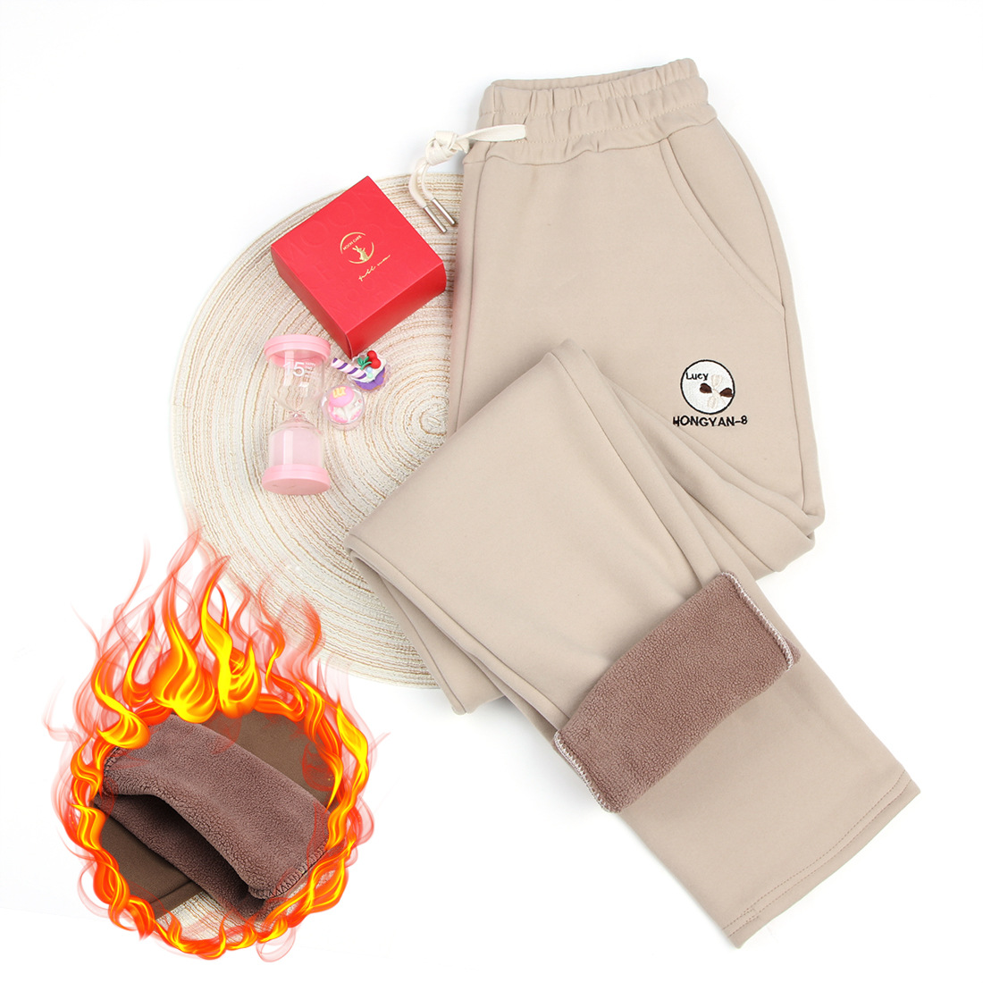 플리스 안감 바지 캐주얼 외출용 여성 바지 2023년 유행 가을 겨울 여성 스웨트팬츠 방풍 바지 여성 모직 바지 뉴미스토어 가기