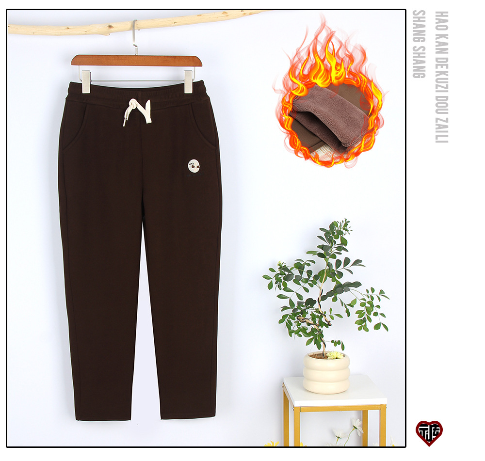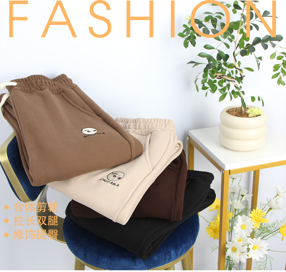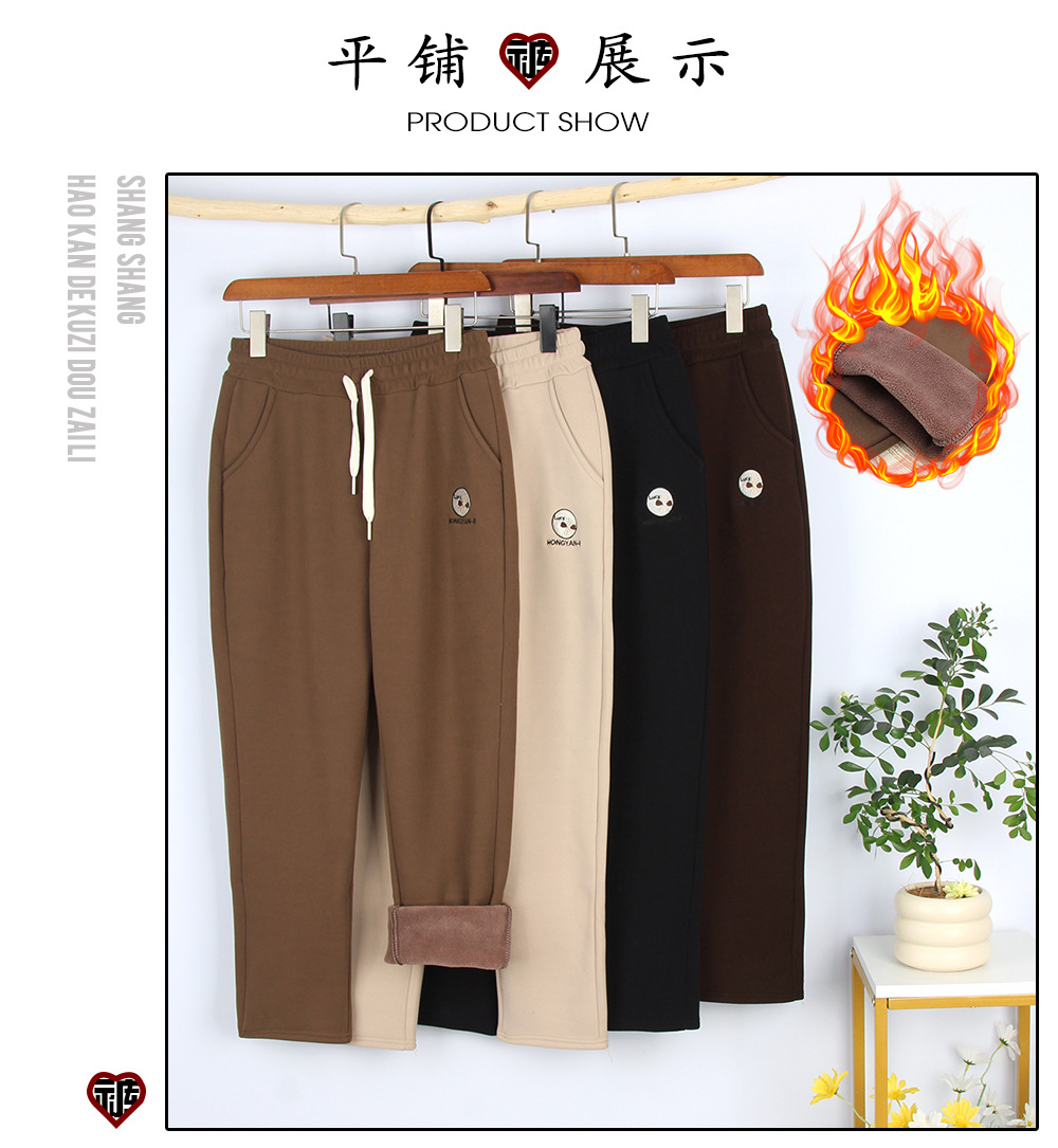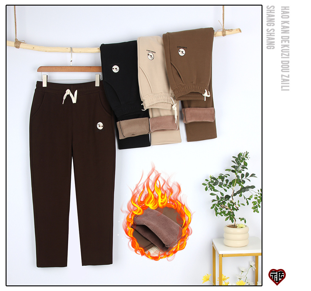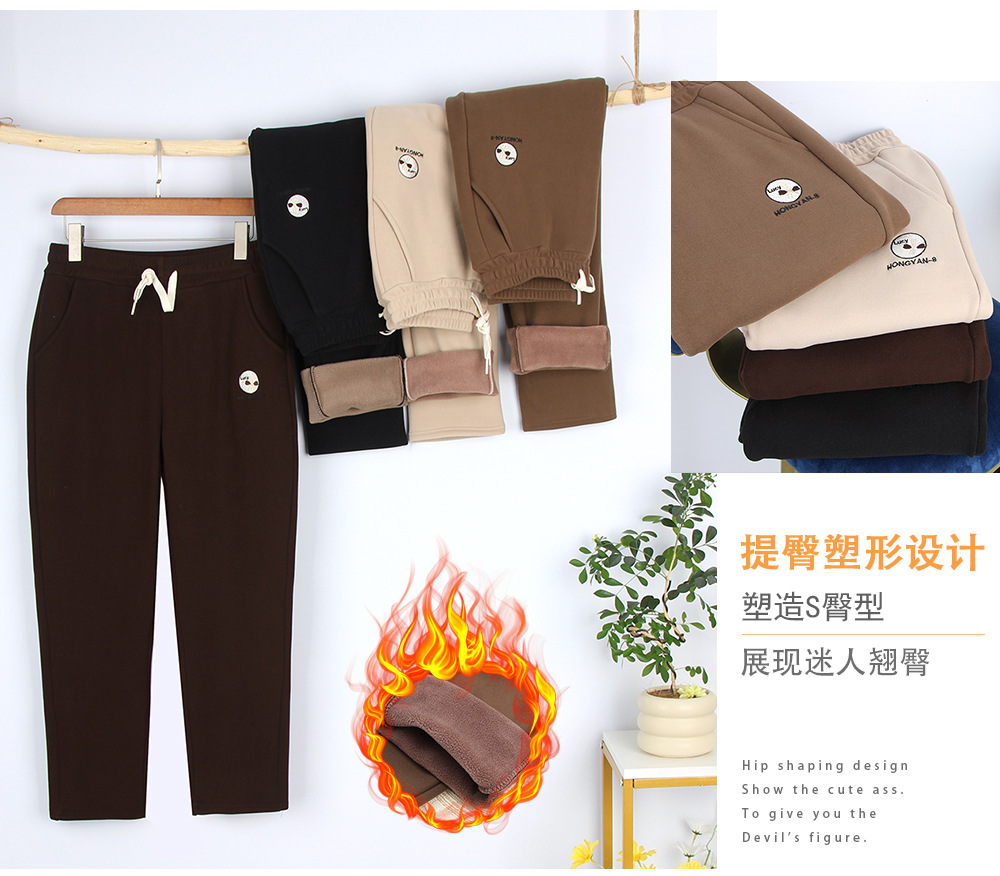 플리스 안감 바지 캐주얼 외출용 여성 바지 2023년 유행 가을 겨울 여성 스웨트팬츠 방풍 바지 여성 모직 바지 뉴미스토어 가기
