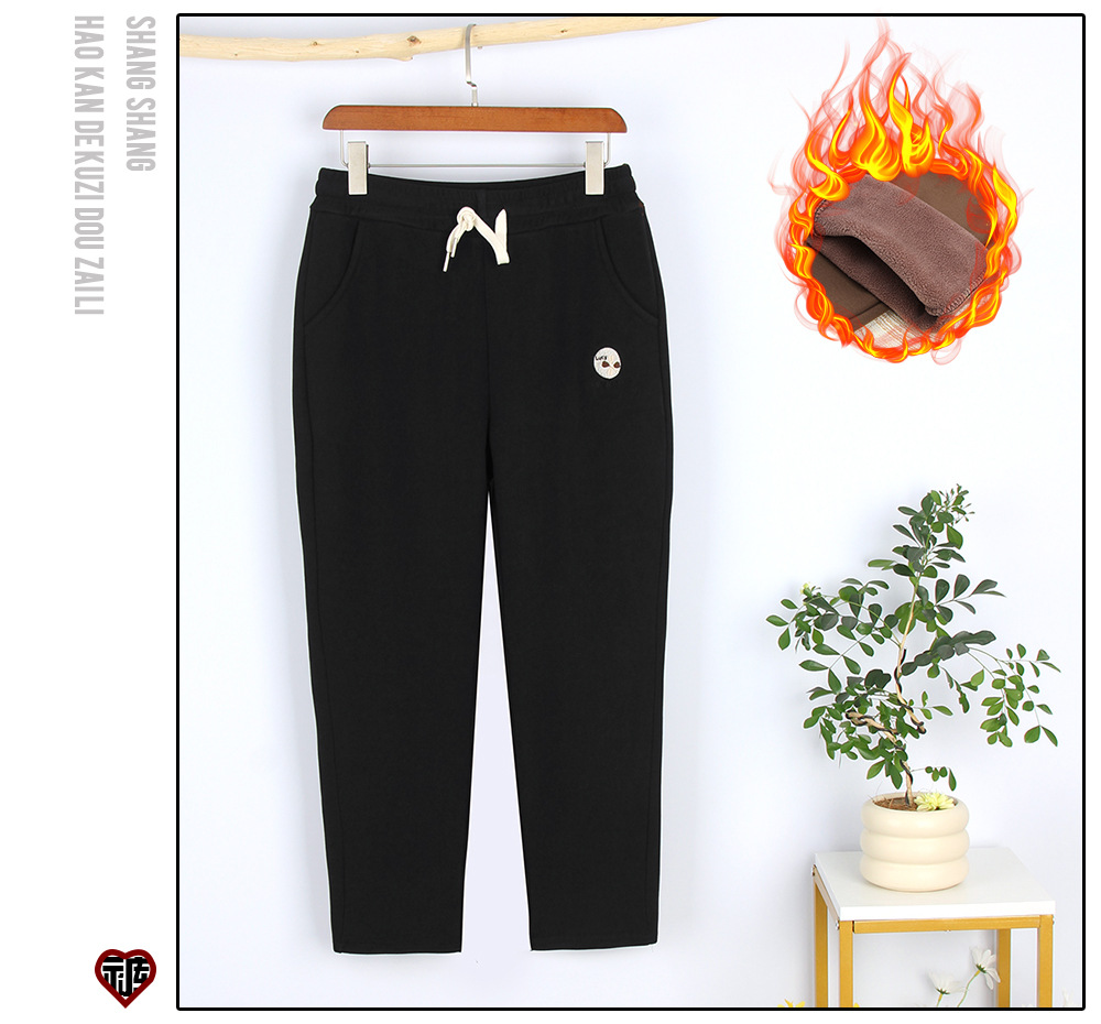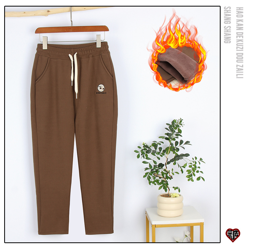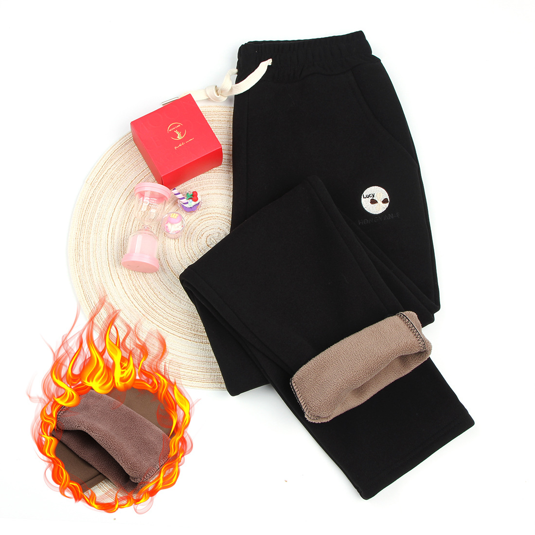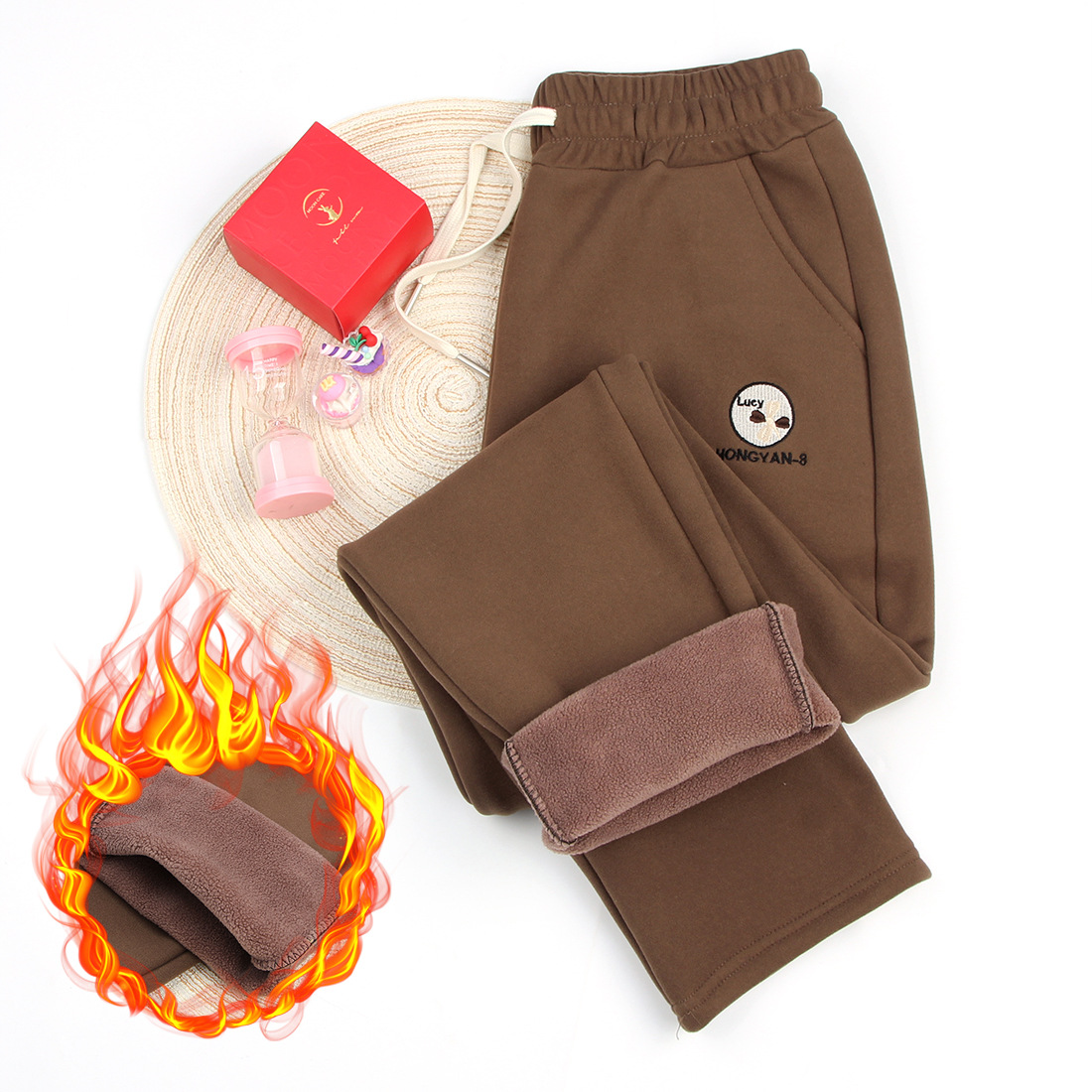 플리스 안감 바지 캐주얼 외출용 여성 바지 2023년 유행 가을 겨울 여성 스웨트팬츠 방풍 바지 여성 모직 바지 뉴미스토어 가기