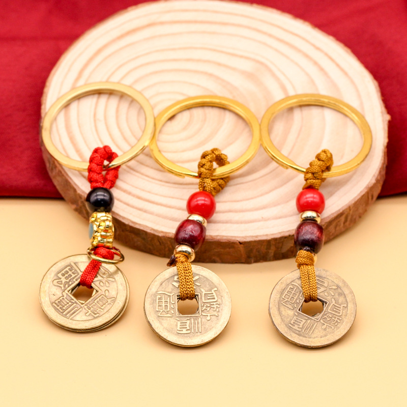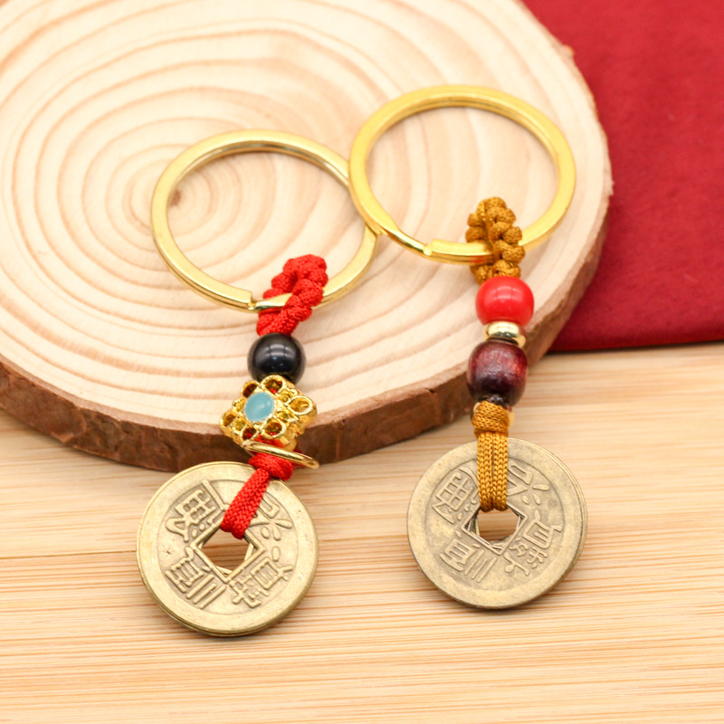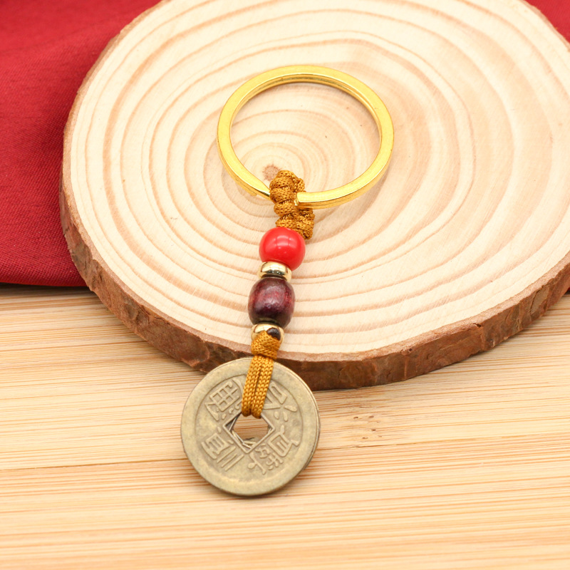 황동 다섯 황제 노란색 로프 구리 합금 키 체인 액세서리 홈 가방 액세서리 수제 꼰 로프 합금 다섯 황제스토어 가기