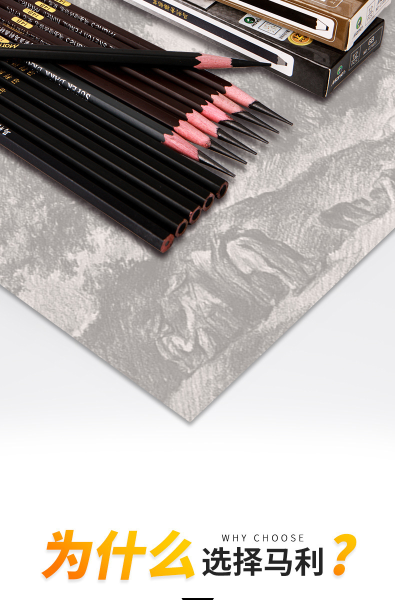 马利素描铅笔炭笔批发2B全套整盒跨境软炭软中硬匠心艺术家绘图