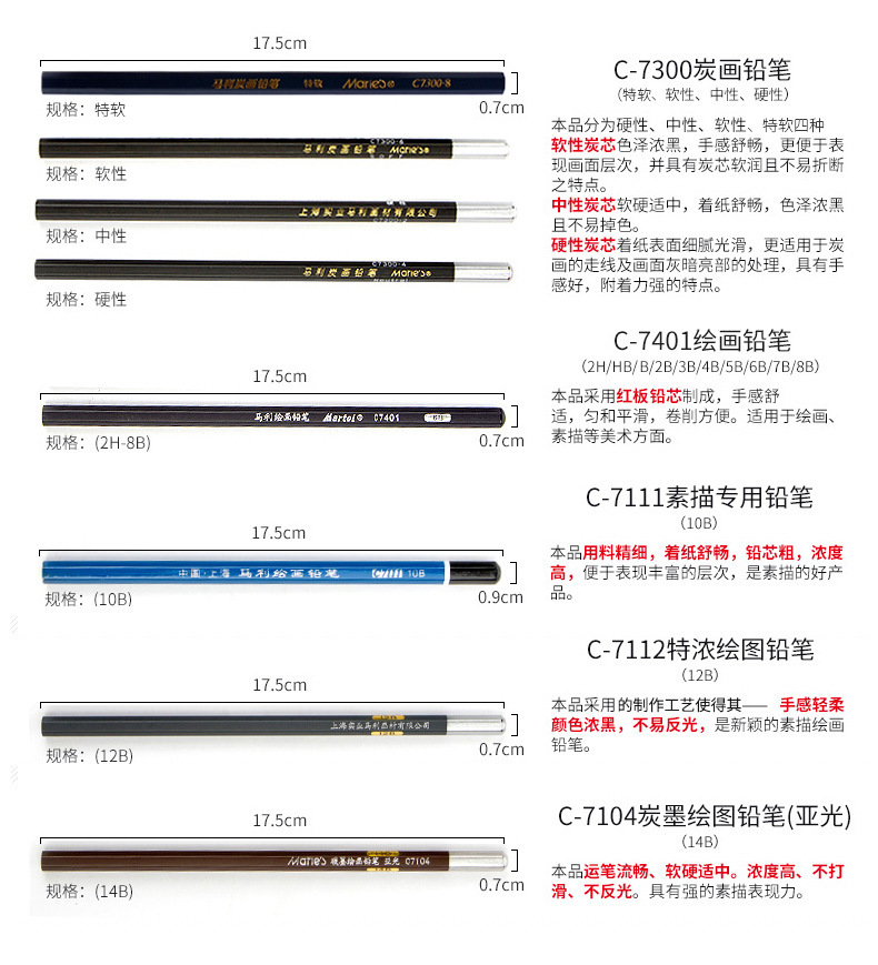 말리 스케치 연필 숯 펜 싱글 도매 7401 세대 2B 크로스 보더 소프트 카본 소프트 미디엄 하드 7300 스케치 카본 펜스토어 가기