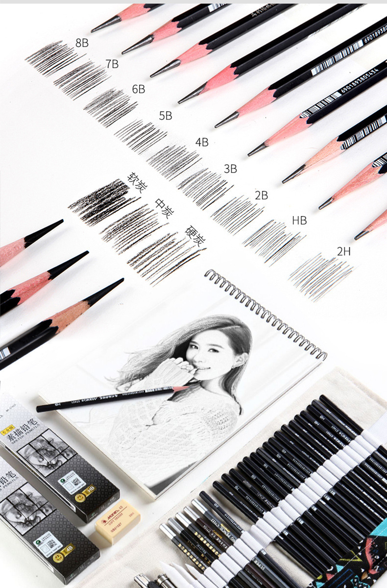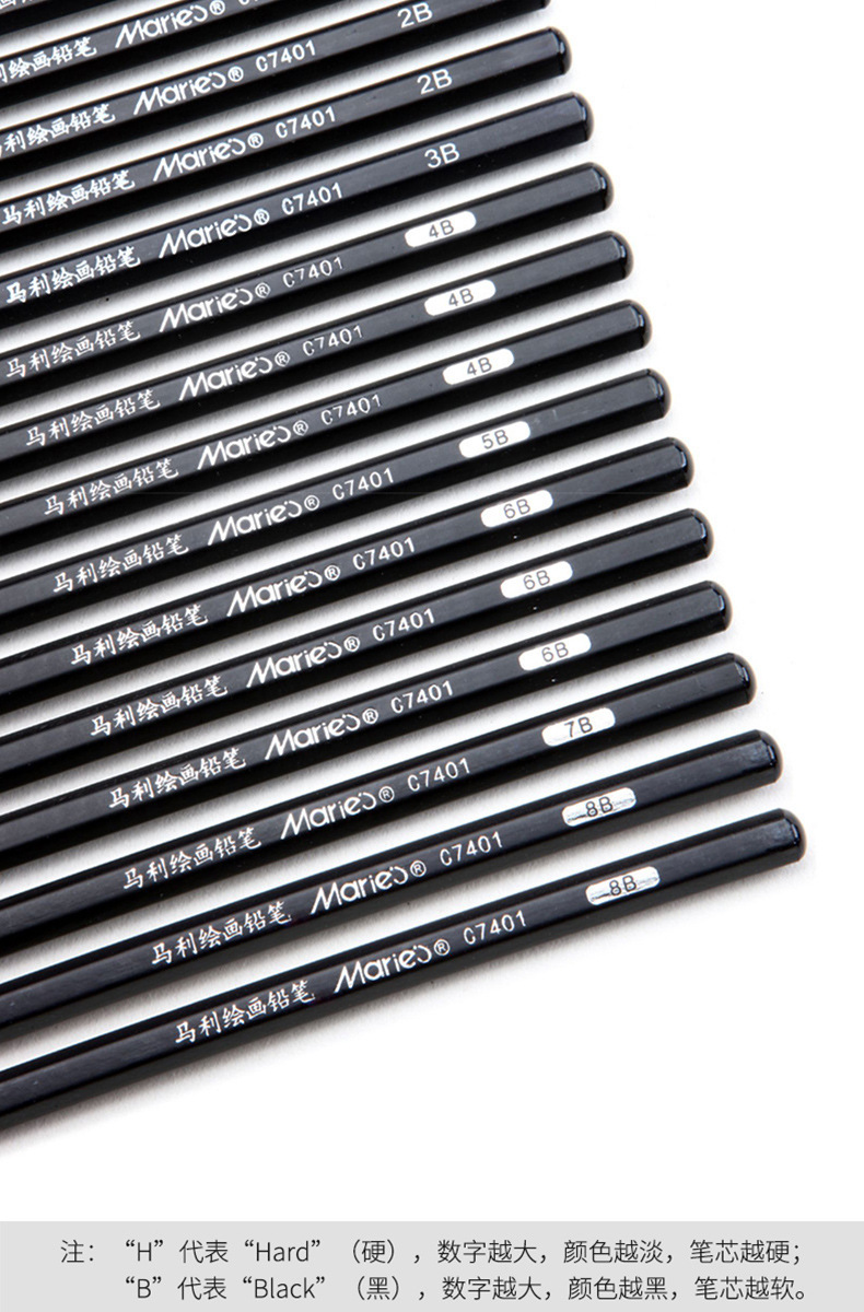 말리 스케치 연필 숯 펜 싱글 도매 7401 세대 2B 크로스 보더 소프트 카본 소프트 미디엄 하드 7300 스케치 카본 펜