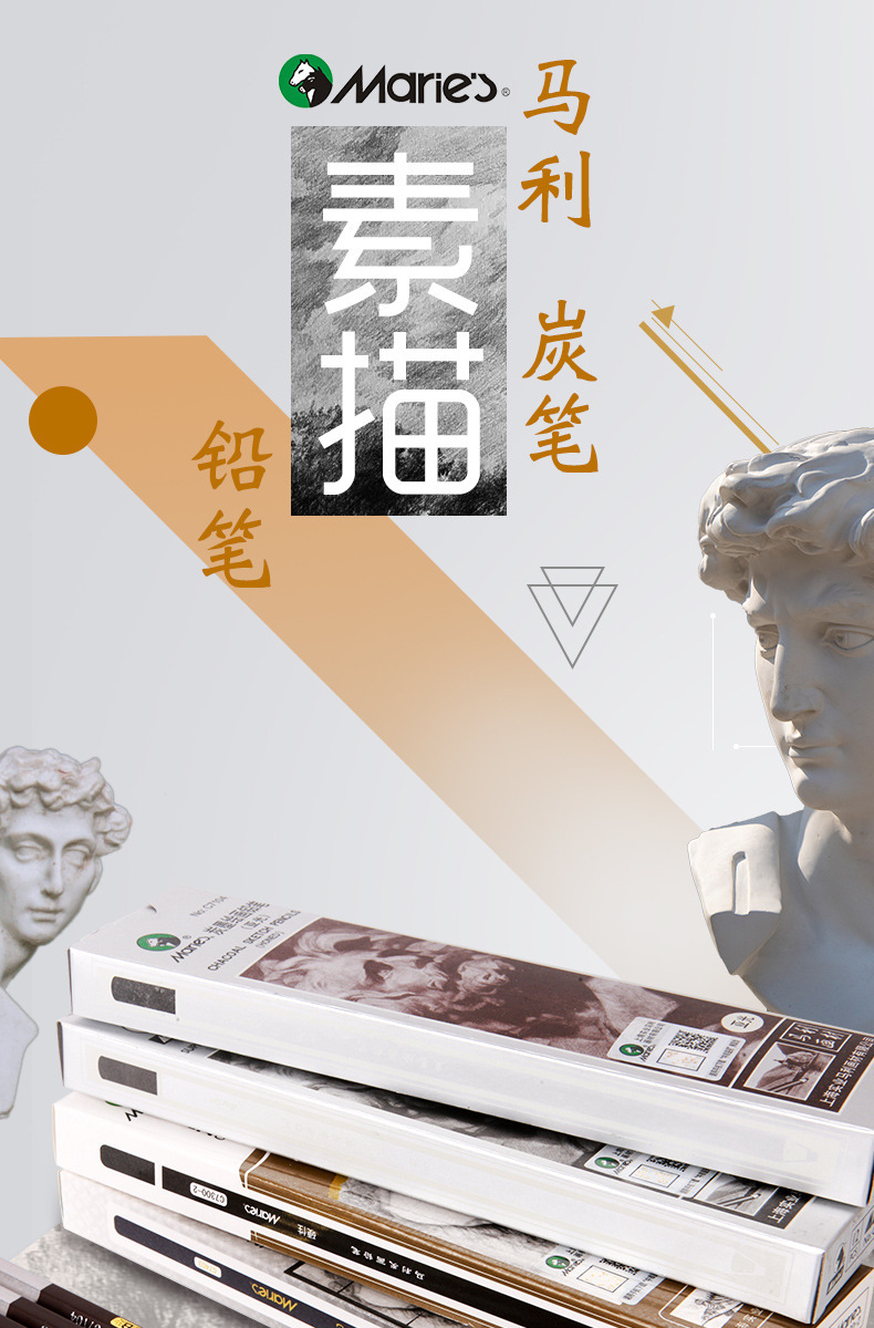 马利白炭笔美术生白色高光素描铅笔套装学生绘画软炭笔速写