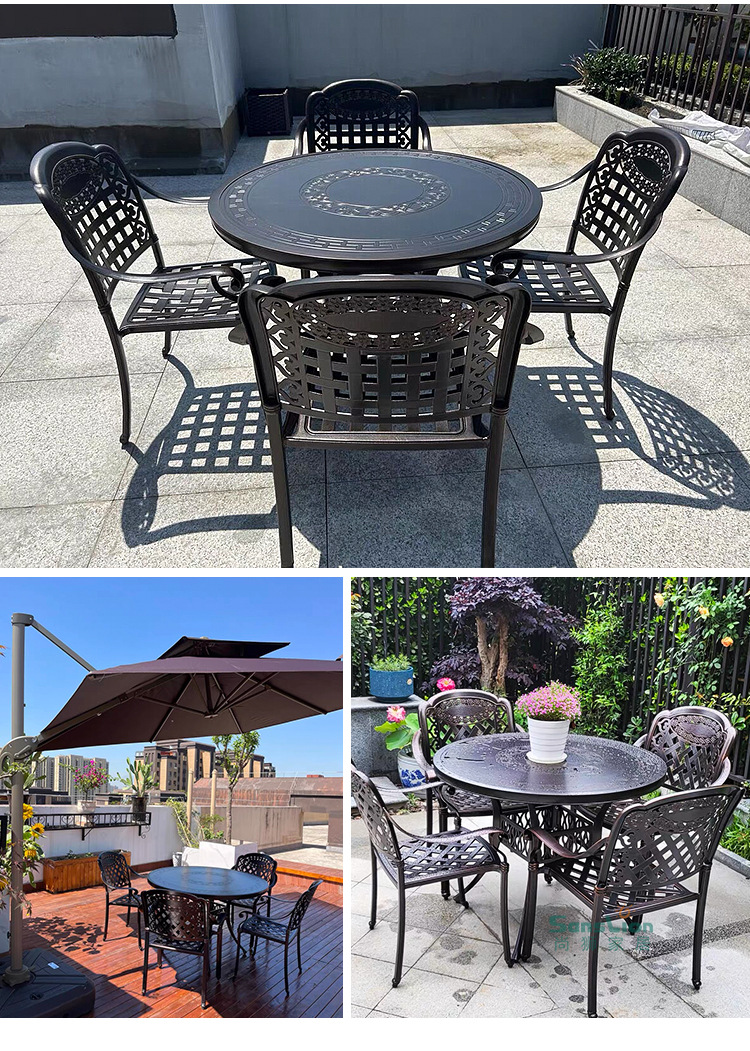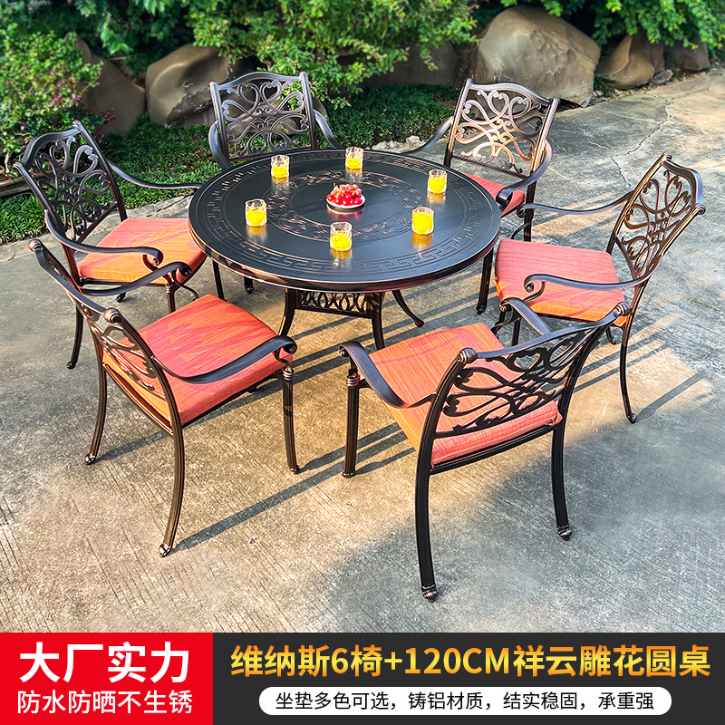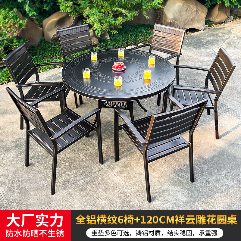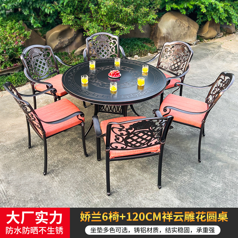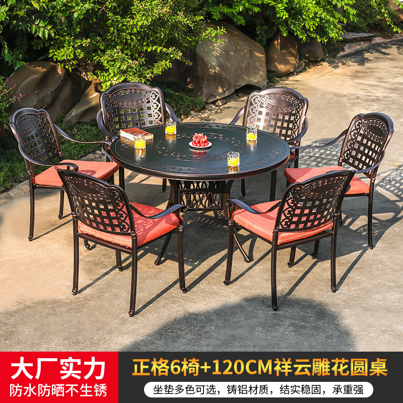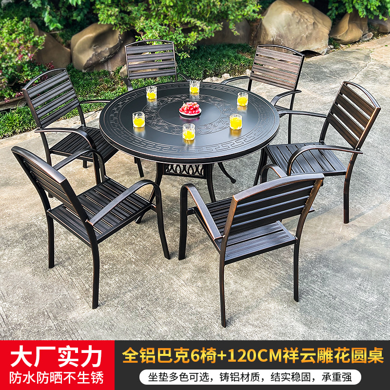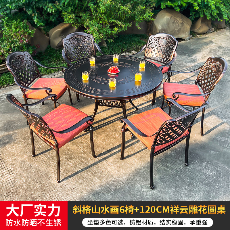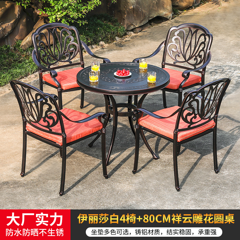 야외 캐스트 알루미늄 식탁 및 의자 안뜰 빌라 정원 발코니 테이블 및 의자 가정용 야외 야외 야외 조각 테이블 야외 테이블 및 의자