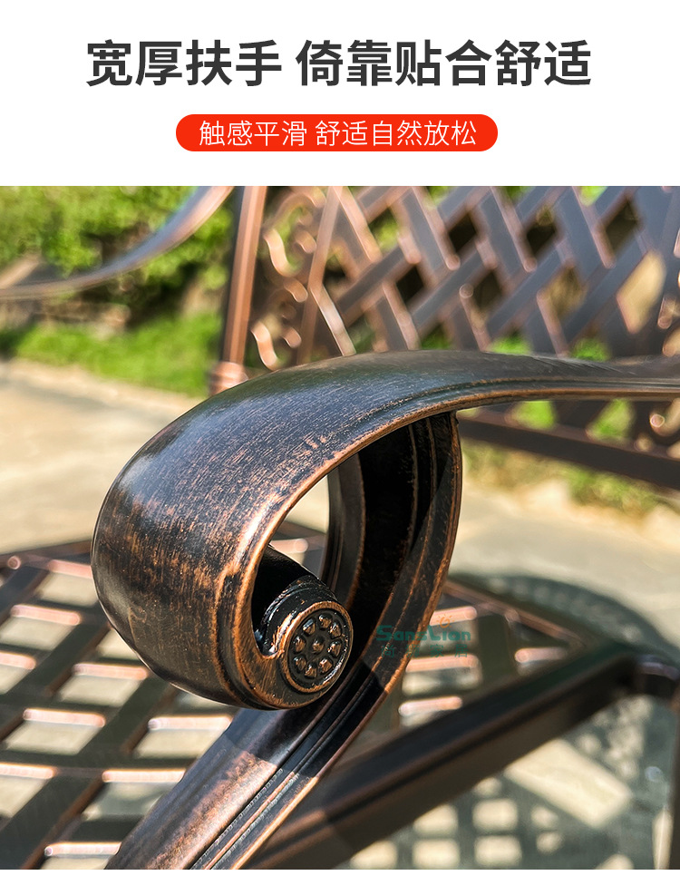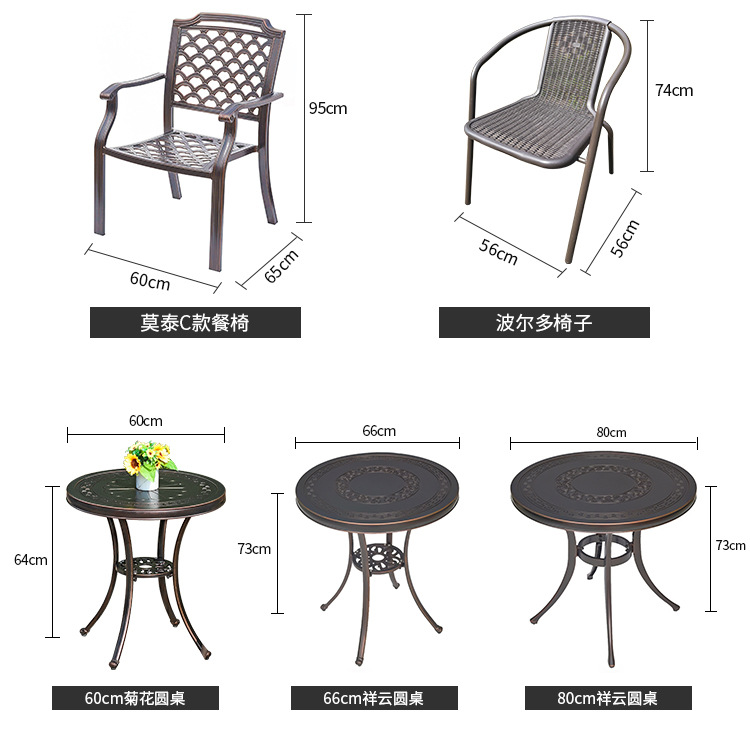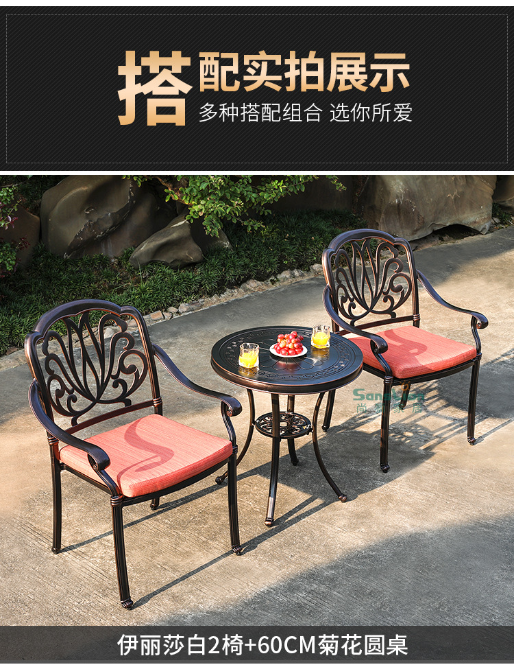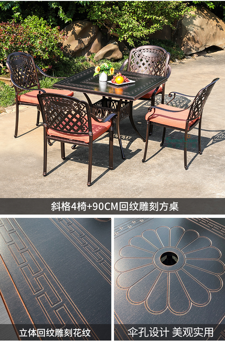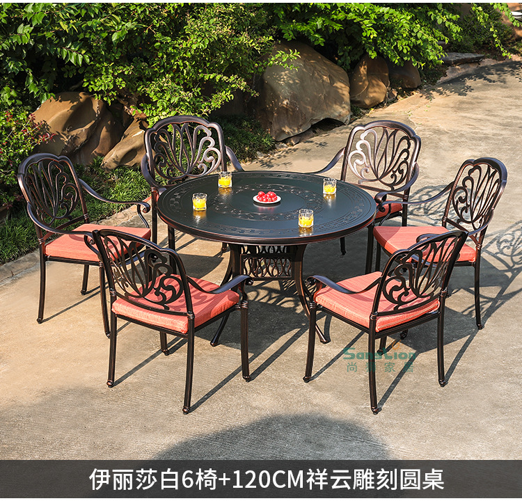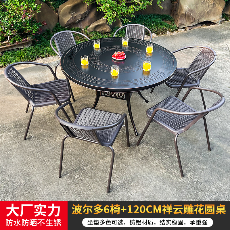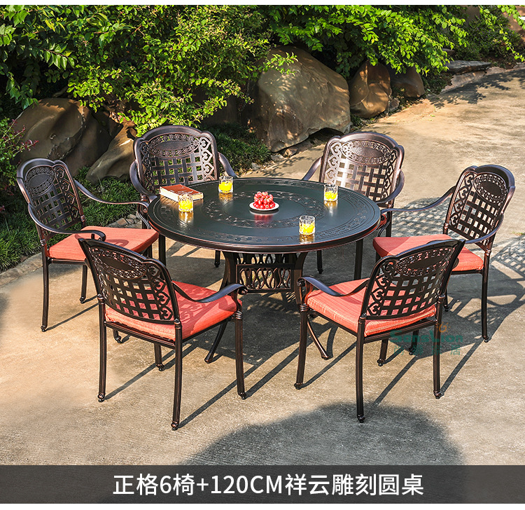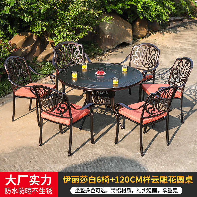 야외 캐스트 알루미늄 식탁 및 의자 안뜰 빌라 정원 발코니 테이블 및 의자 가정용 야외 야외 야외 조각 테이블 야외 테이블 및 의자