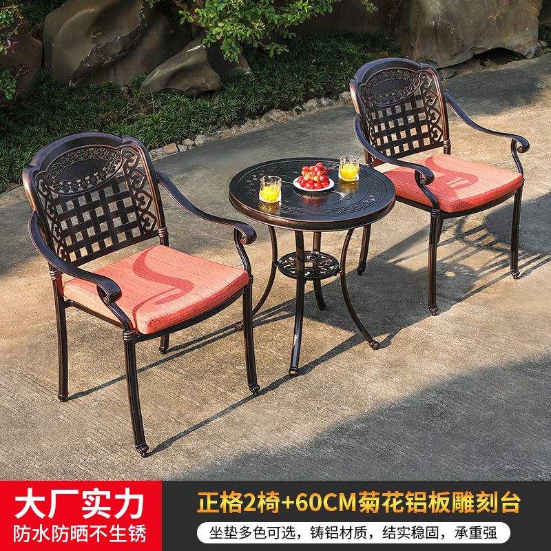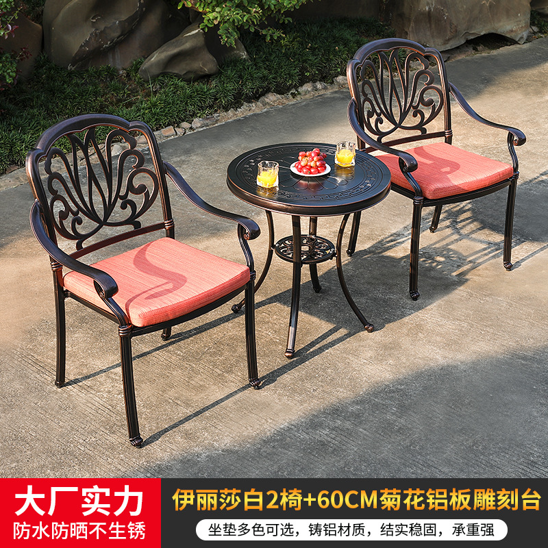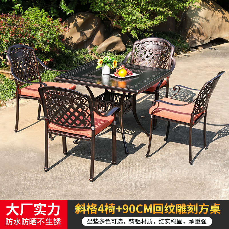 야외 캐스트 알루미늄 식탁 및 의자 안뜰 빌라 정원 발코니 테이블 및 의자 가정용 야외 야외 야외 조각 테이블 야외 테이블 및 의자스토어 가기