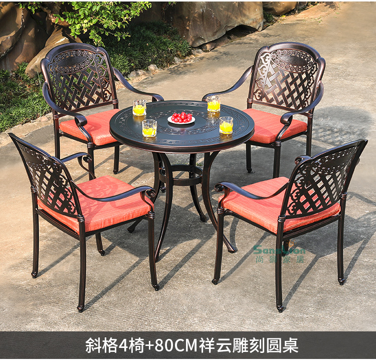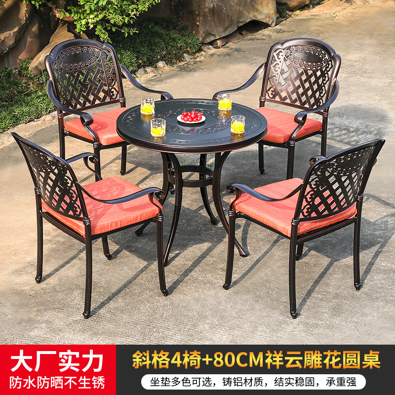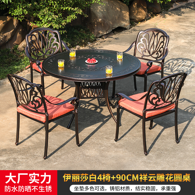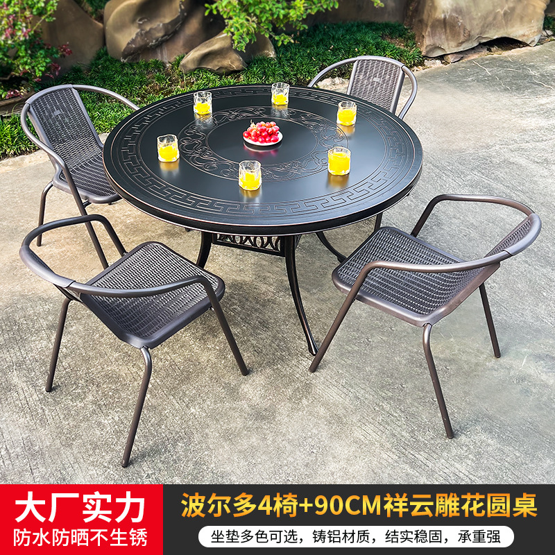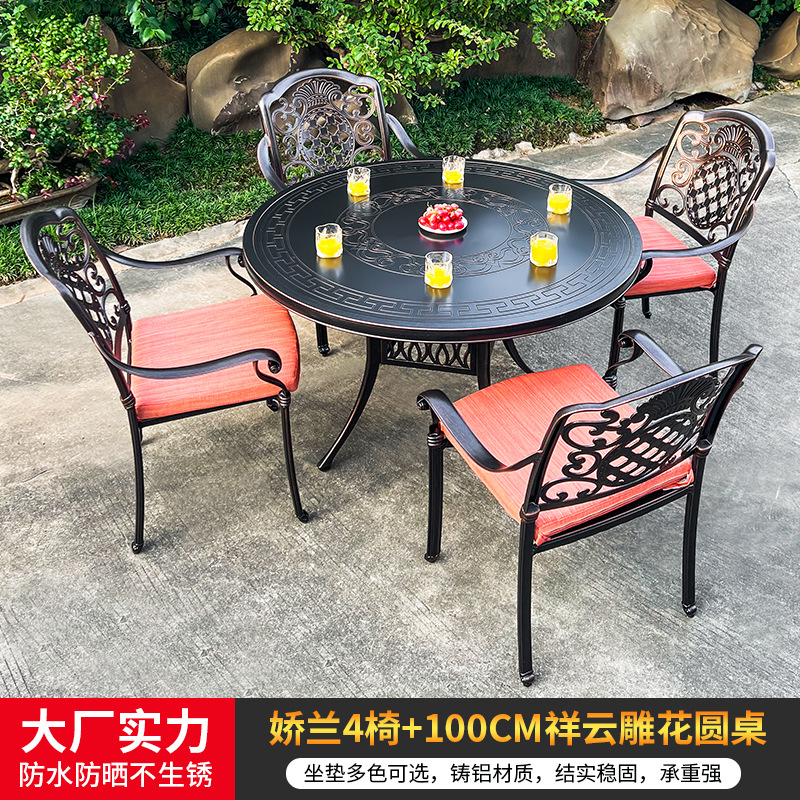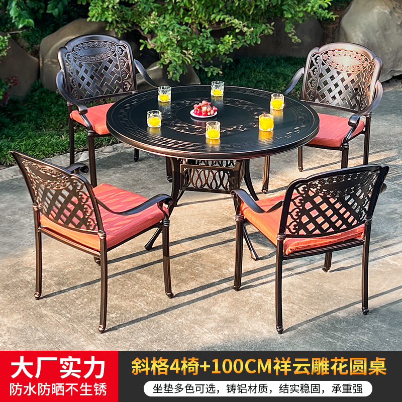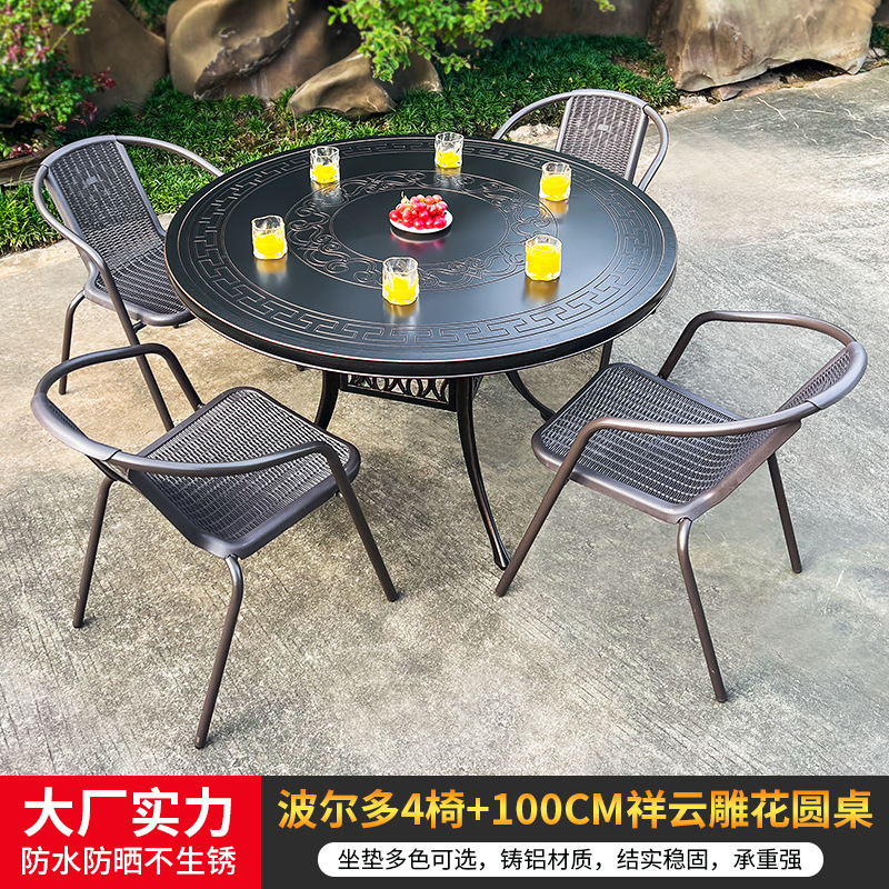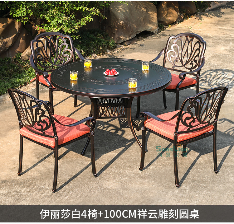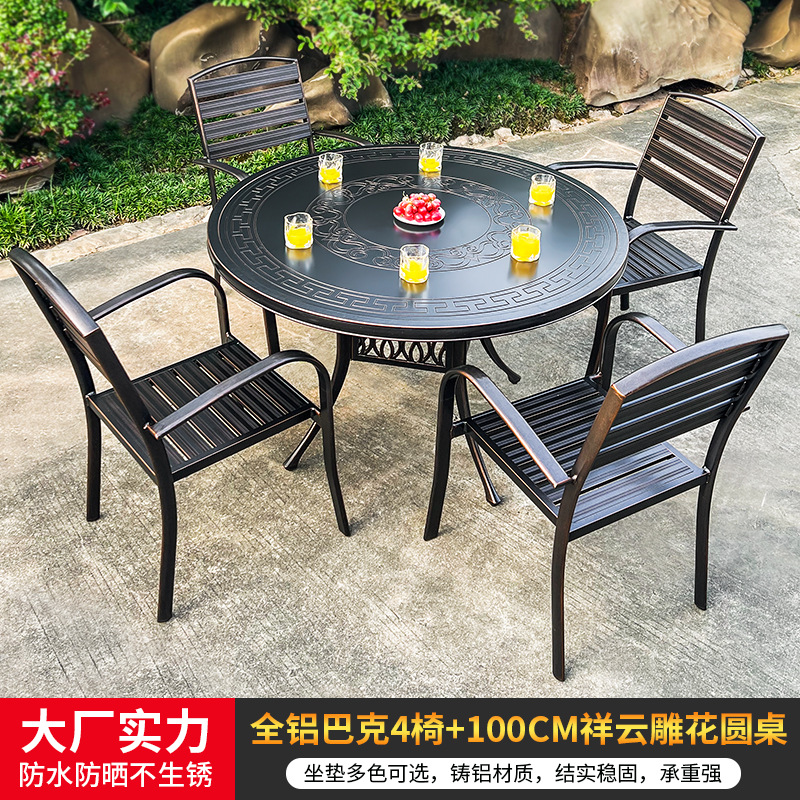 • 모든 알루미늄 벅 4 의자 + 100cm Xiangyun 조각 원형 테이블