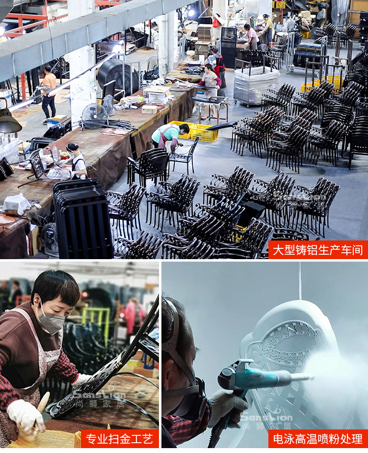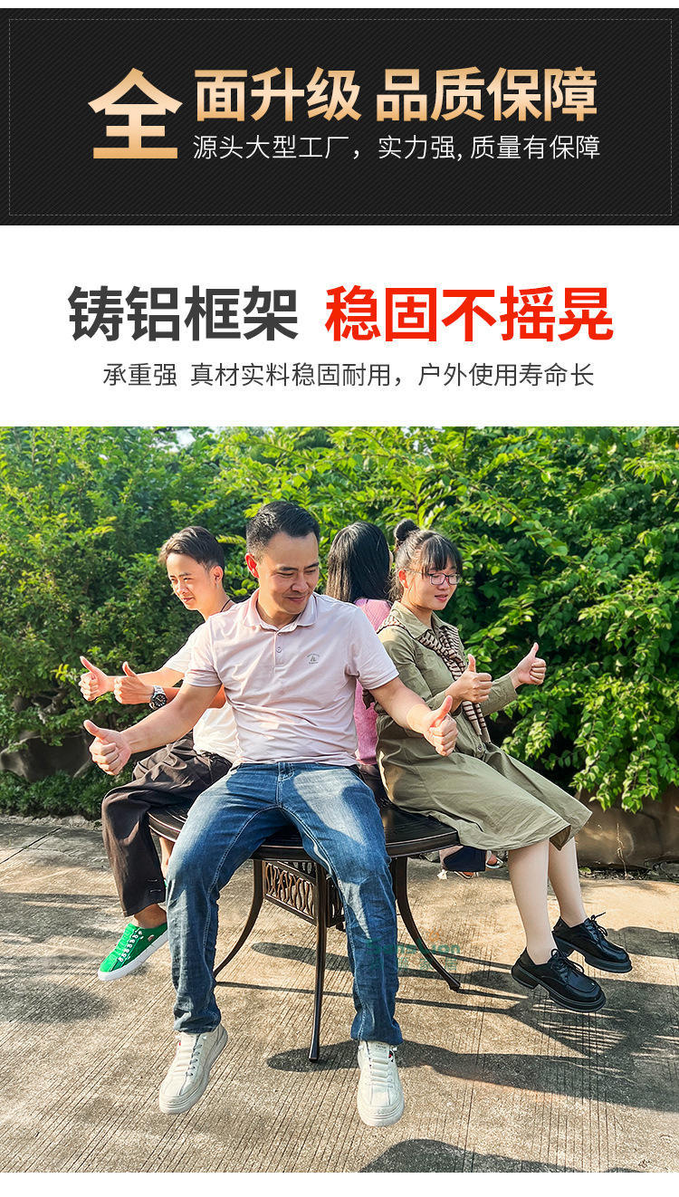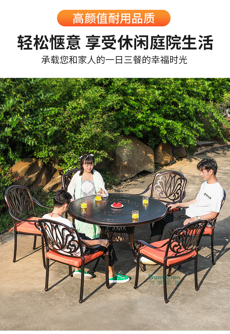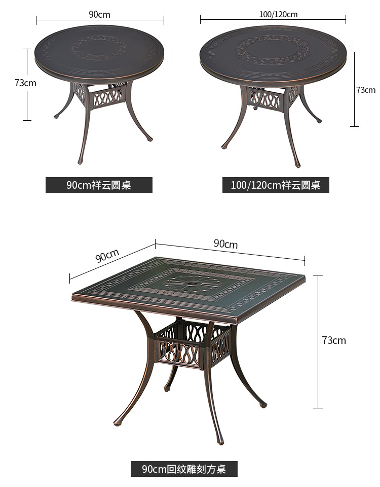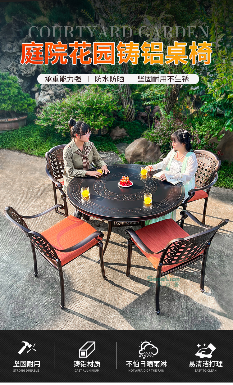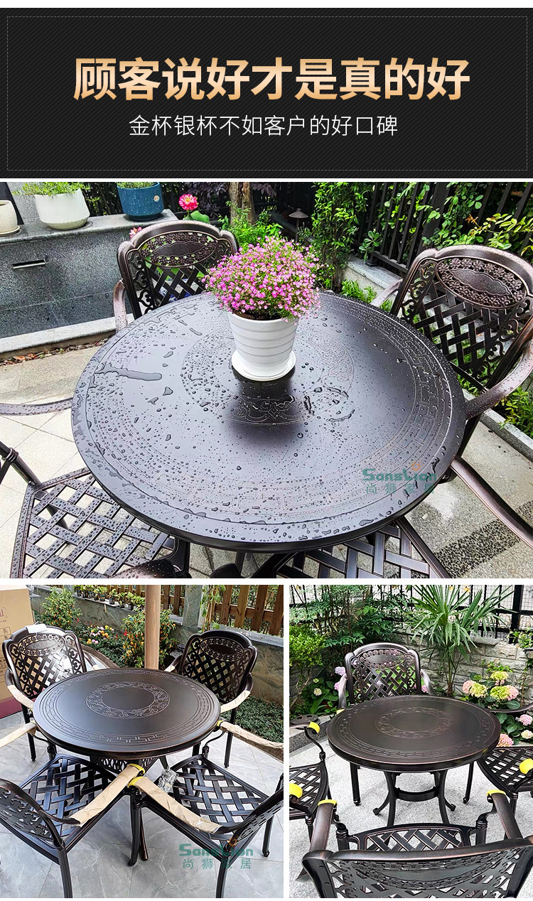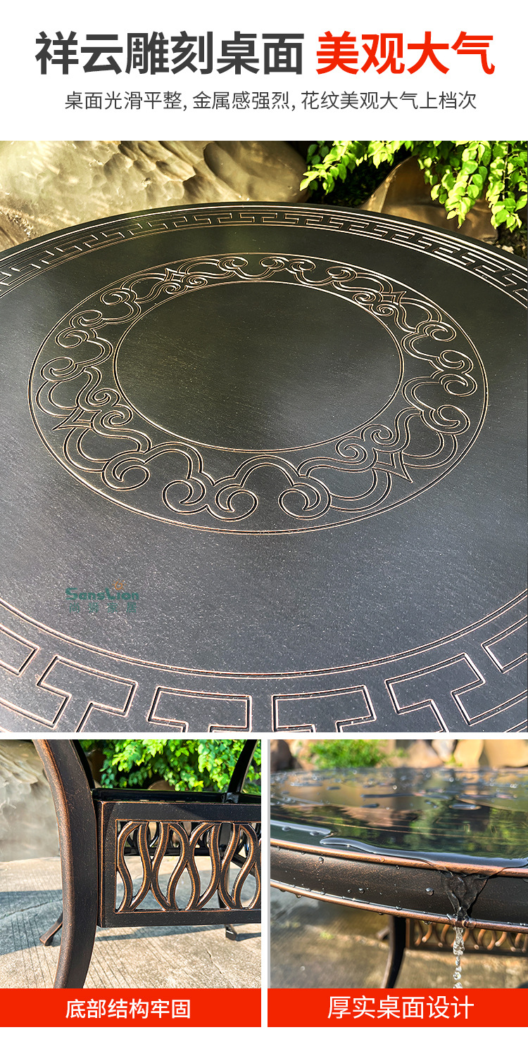 • 모든 알루미늄 벅 4 의자 + 100cm Xiangyun 조각 원형 테이블