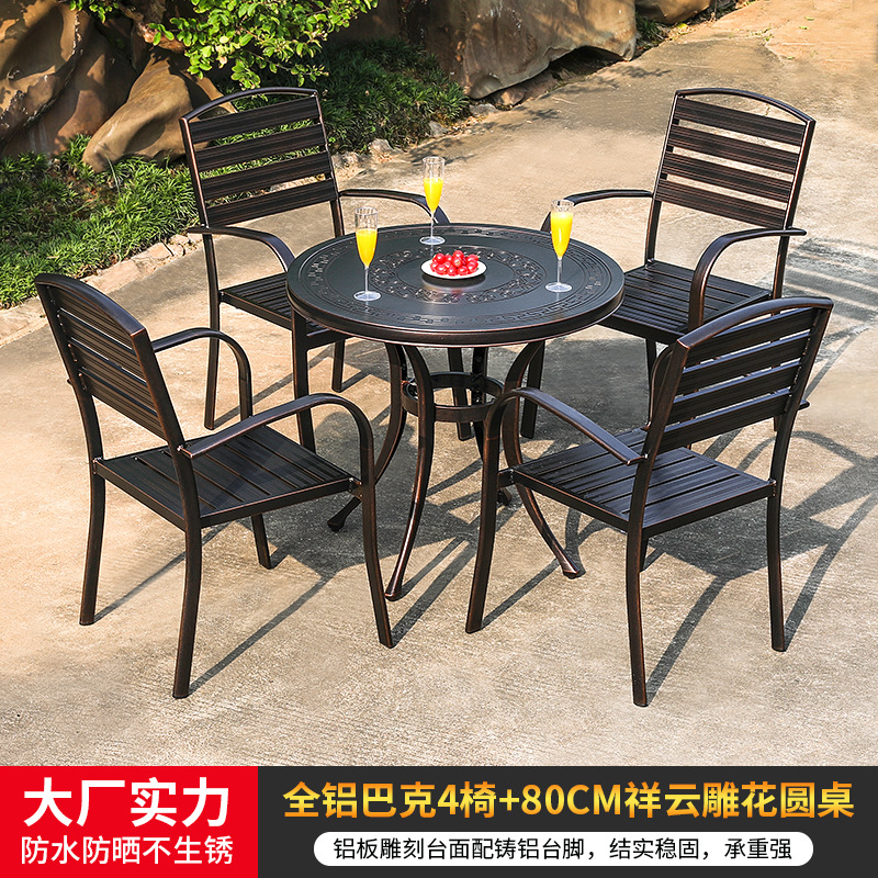 • 모든 알루미늄 벅 4 의자 + 80cm Xiangyun 조각 원형 테이블