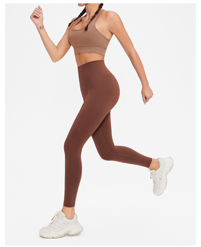 여성용 가을 겨울 누드 느낌 요가 팬츠, 하이웨이스트 피치 힙업 스포츠 피트니스 팬츠, 당김선 없음, 속건성 타이트 팬츠