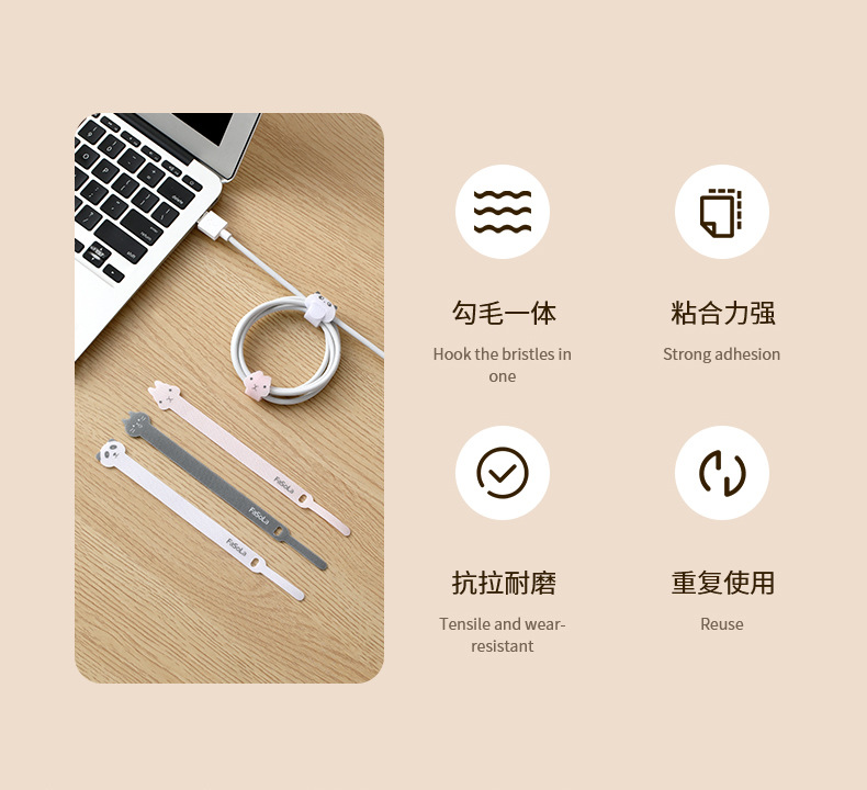 FaSoLa 홈 카툰 케이블 주최자 백투백 매직 케이블 타이 와이어 및 데이터 케이블 저장 자체 접착 케이블 주최자