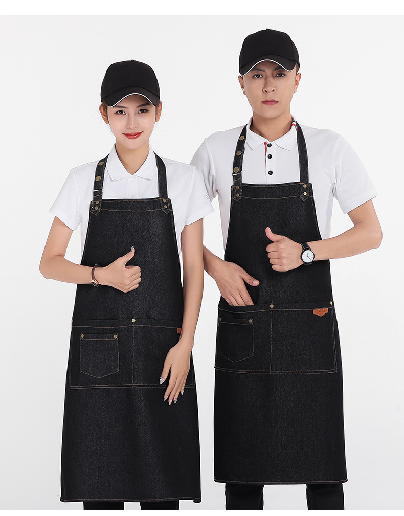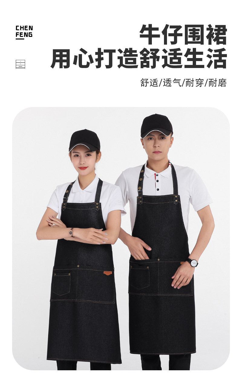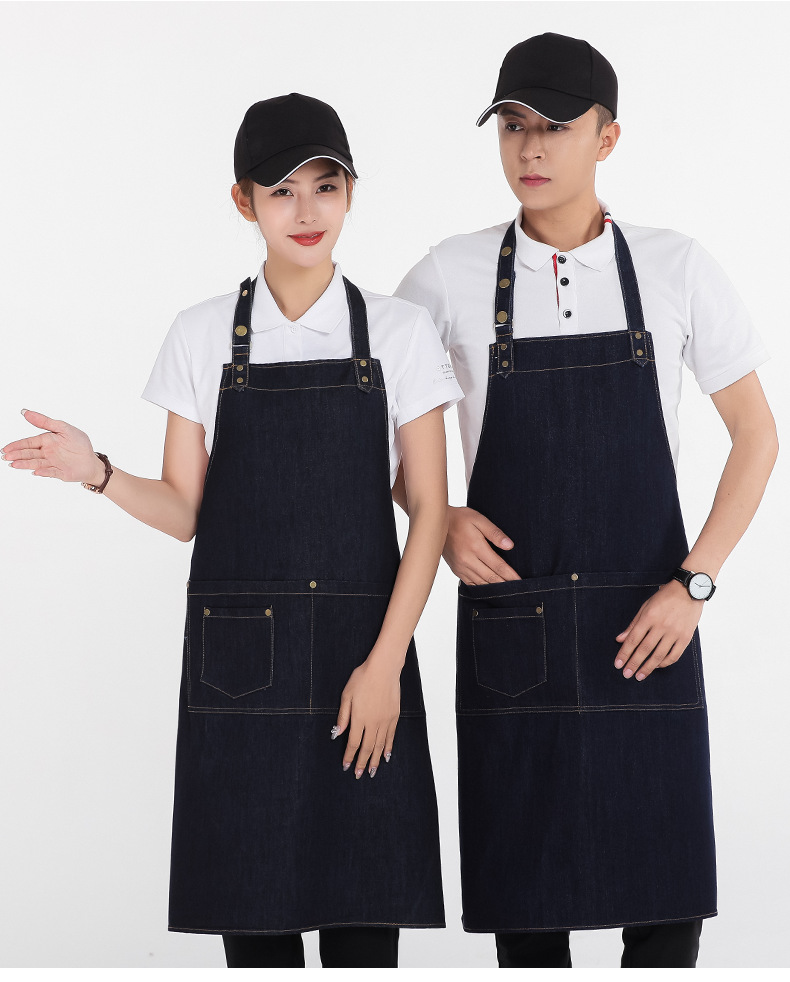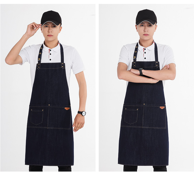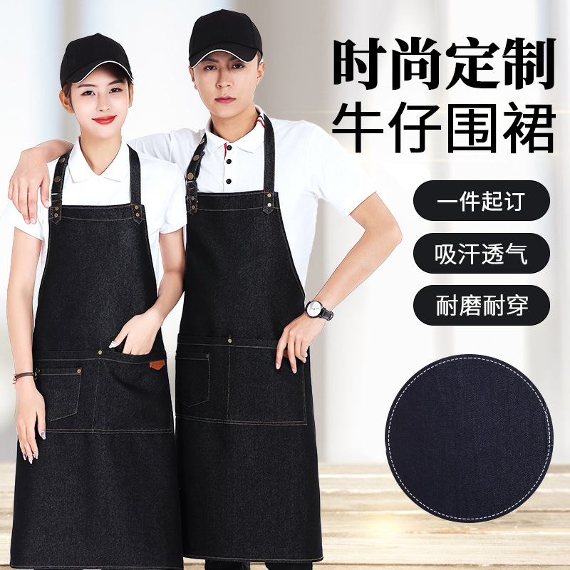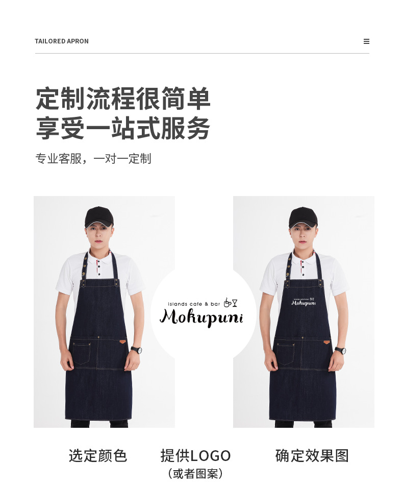 인터넷 연예인 데님 앞치마 사용자 정의 로고 인쇄 자수 취사 특별 베이킹 커피 숍 뜨거운 염료 작업복 남자스토어 가기