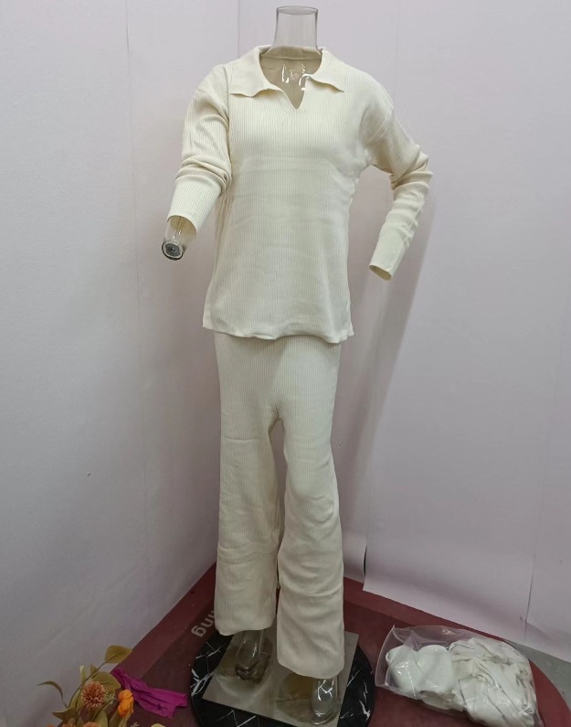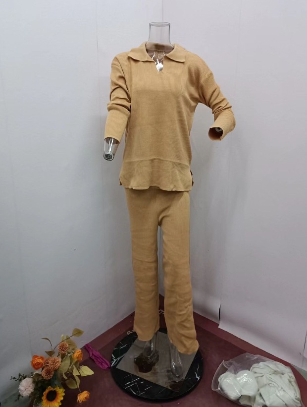 가을 2023 새로운 유럽과 미국의 아마존 국경 패션 단색 느슨한 밑단 분할 스웨터 투피스 세트스토어 가기
