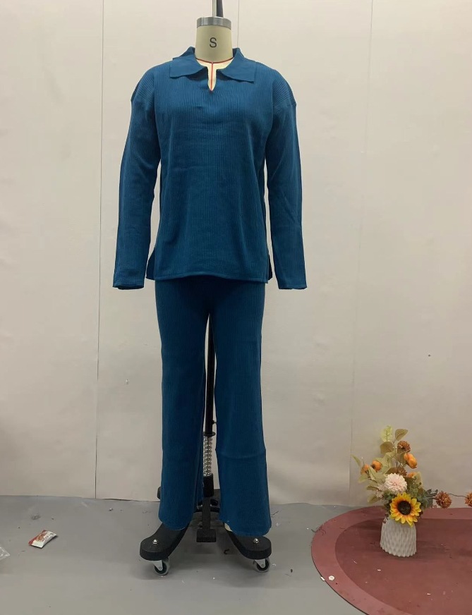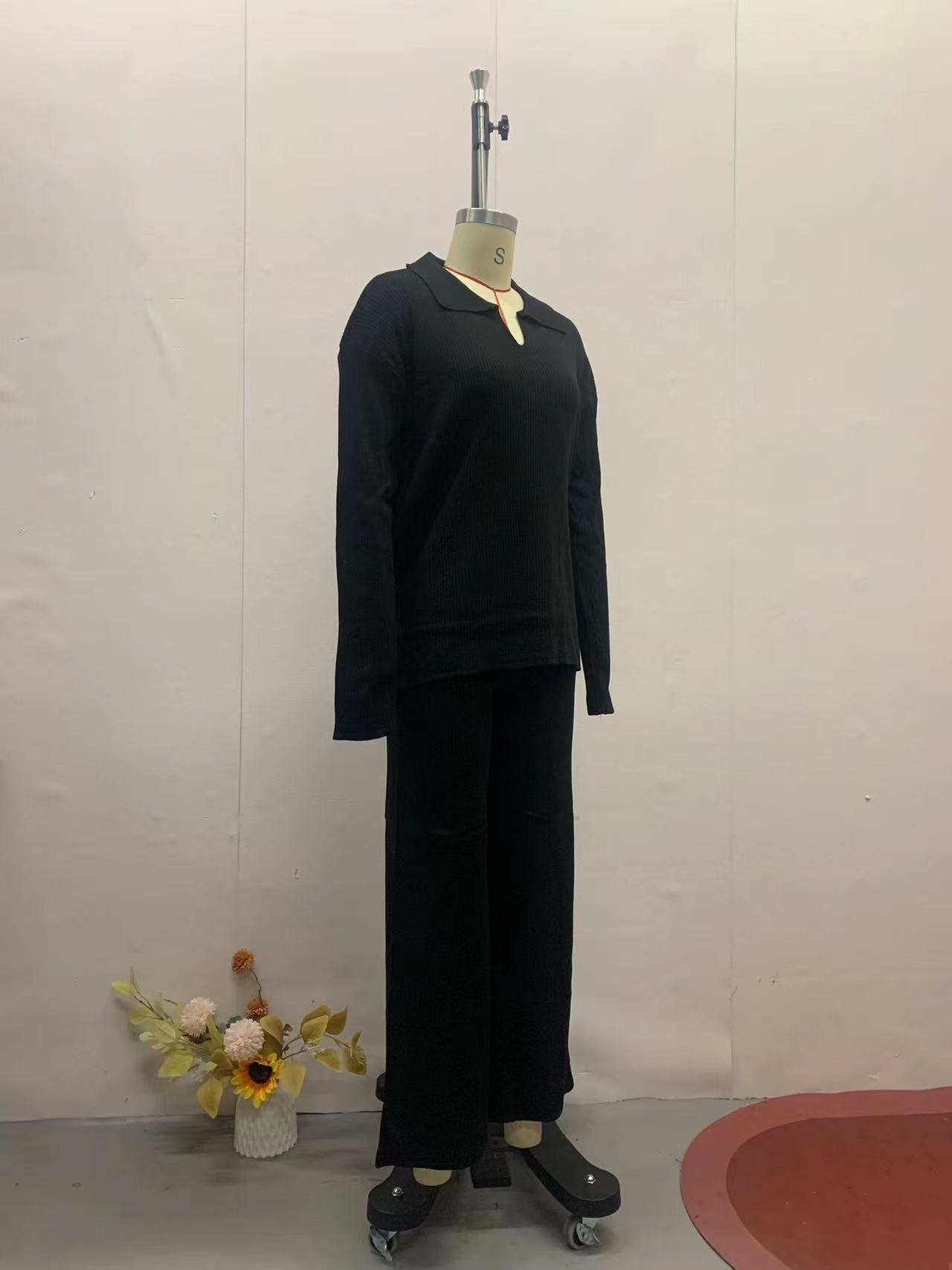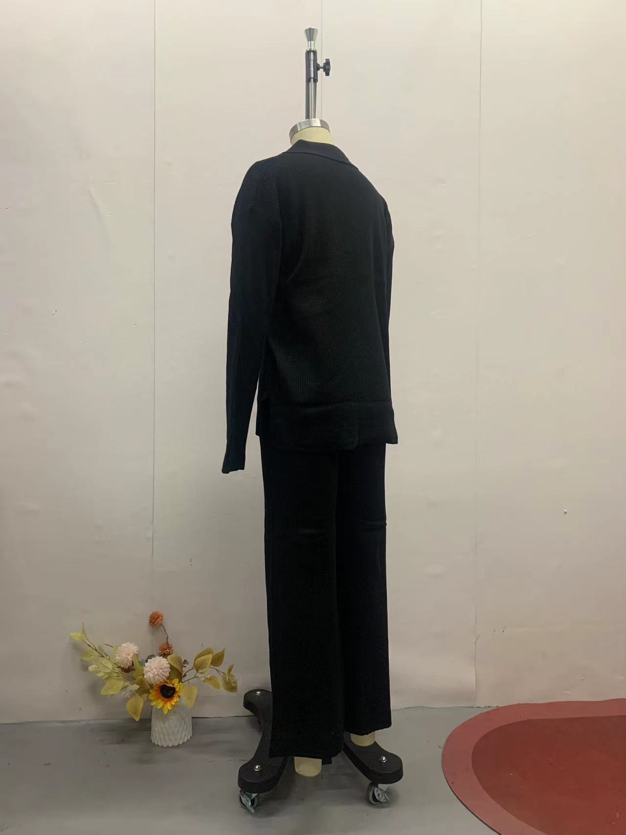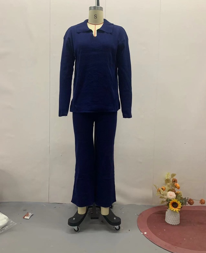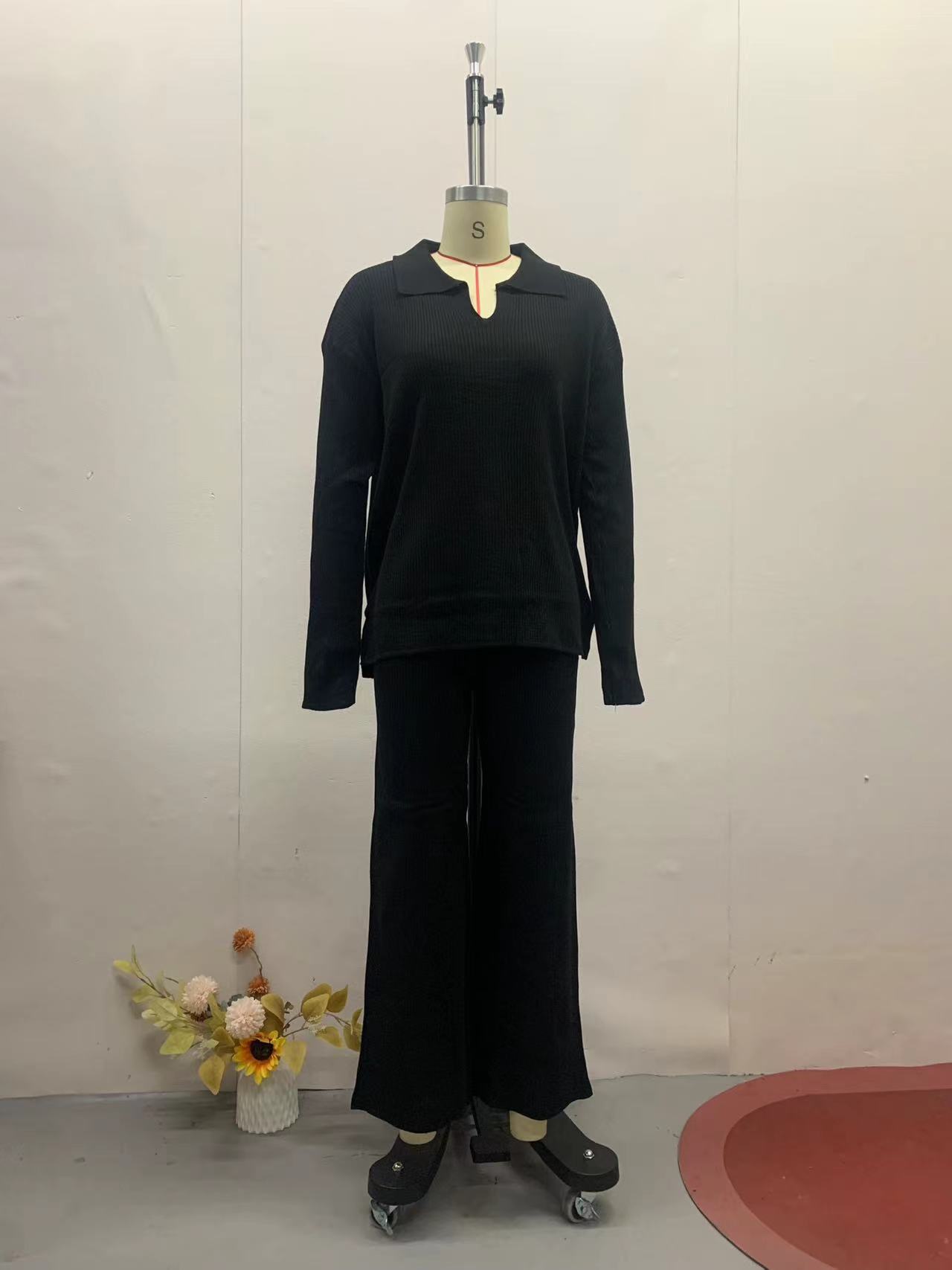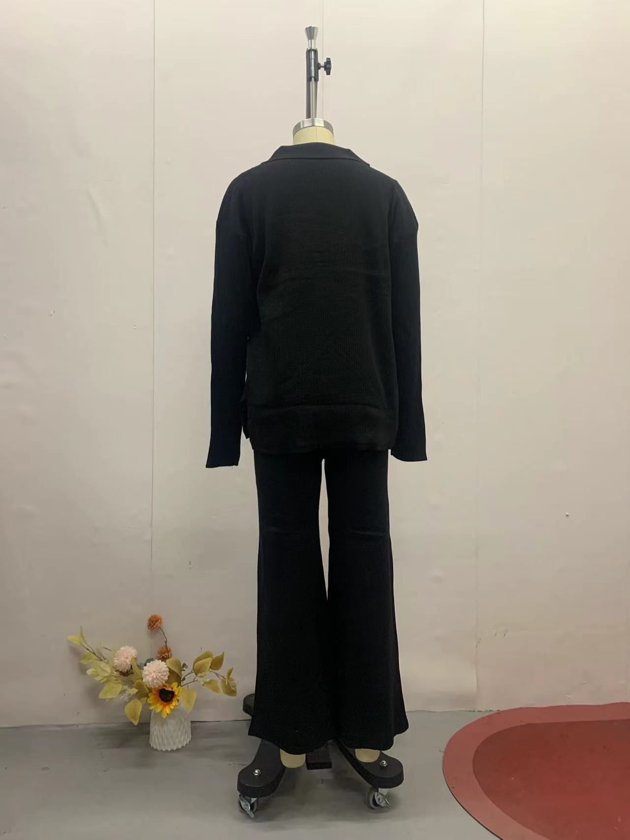 가을 2023 새로운 유럽과 미국의 아마존 국경 패션 단색 느슨한 밑단 분할 스웨터 투피스 세트