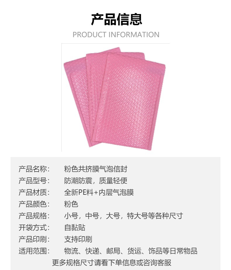 도매 두꺼운 분홍색 버블백 의류 포장 배송 가방 폼 소재 포장 가방 인쇄 로고스토어 가기
