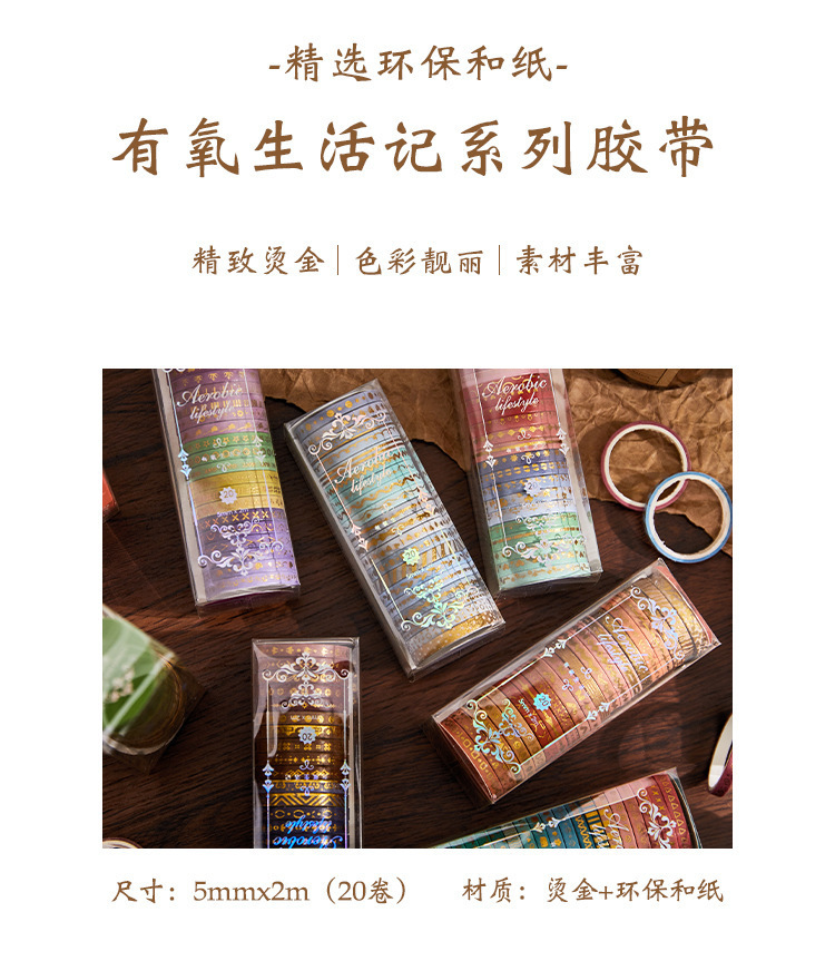 브론징 레트로 및 종이 테이프 콜라주 장식 아주 좋은 테이프 에어로빅 생활 시리즈 손 계정 스티커 장식 재료스토어 가기