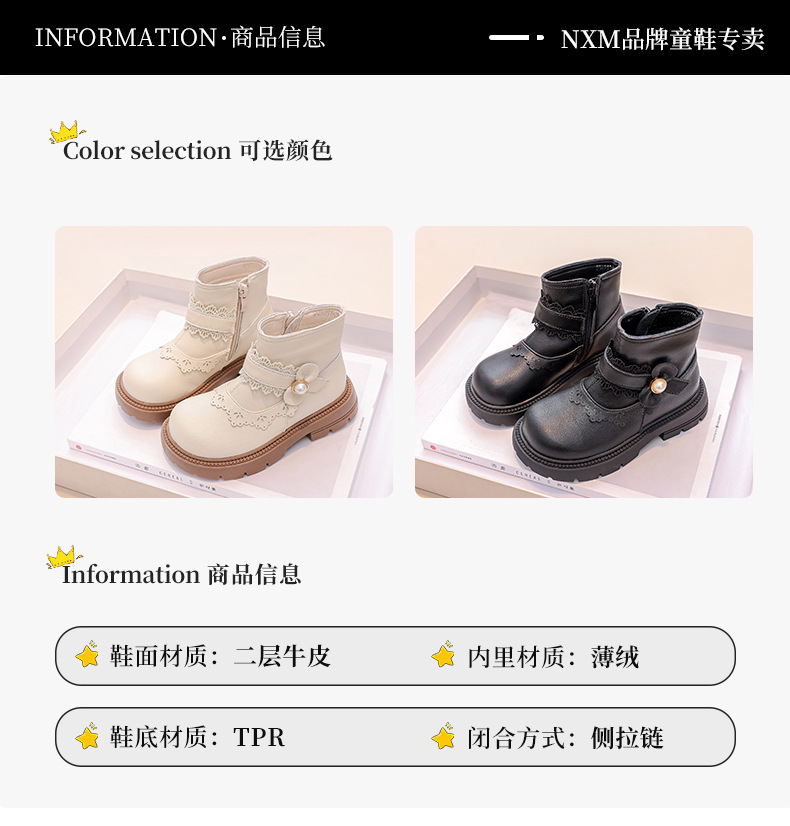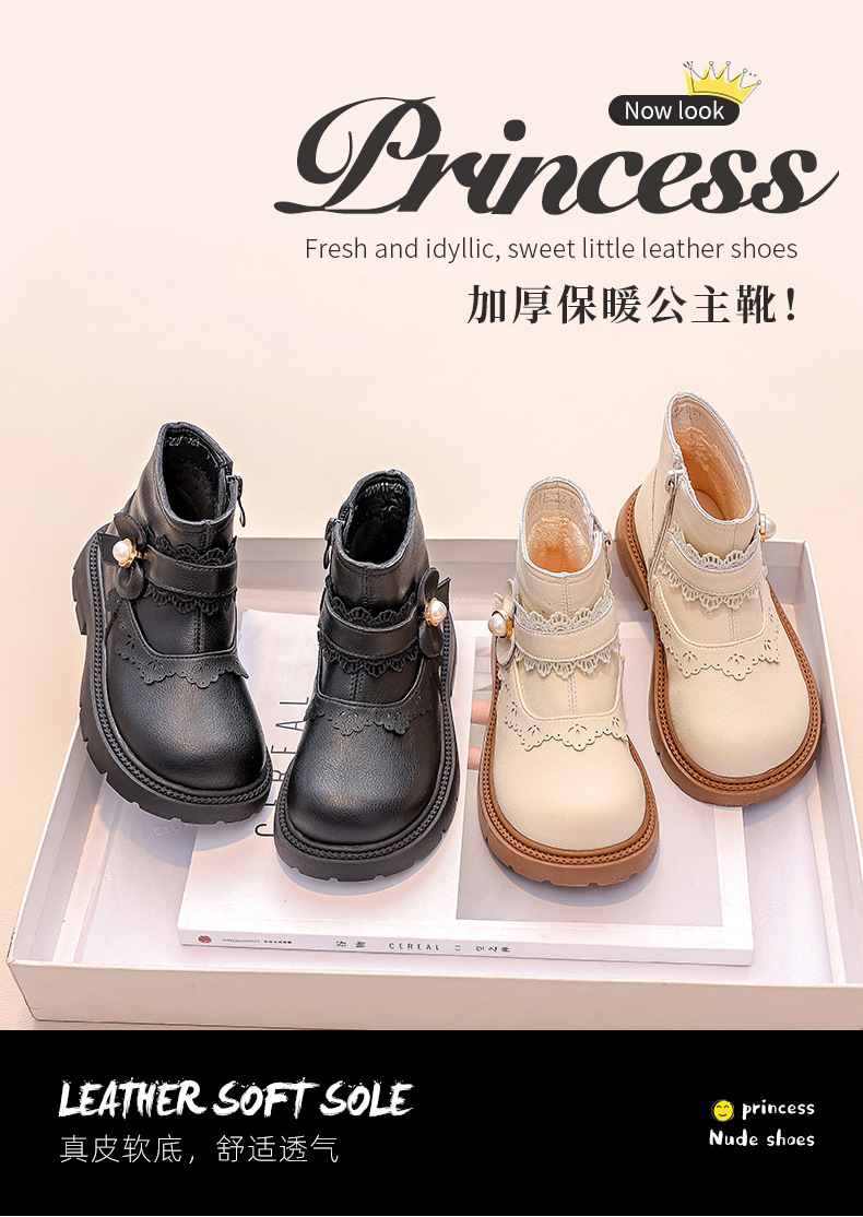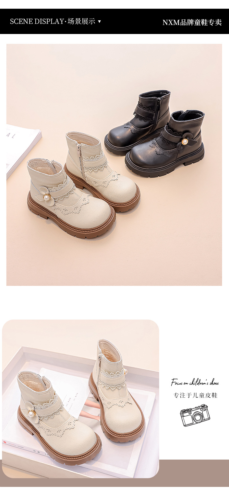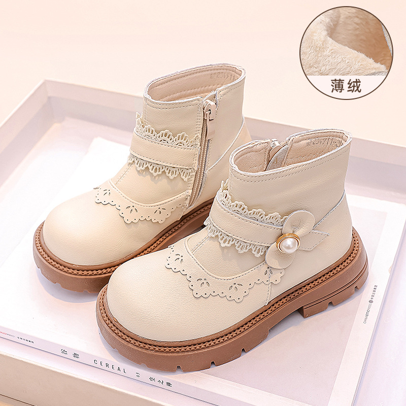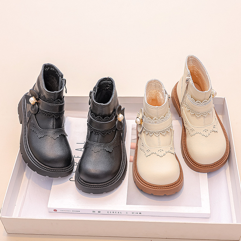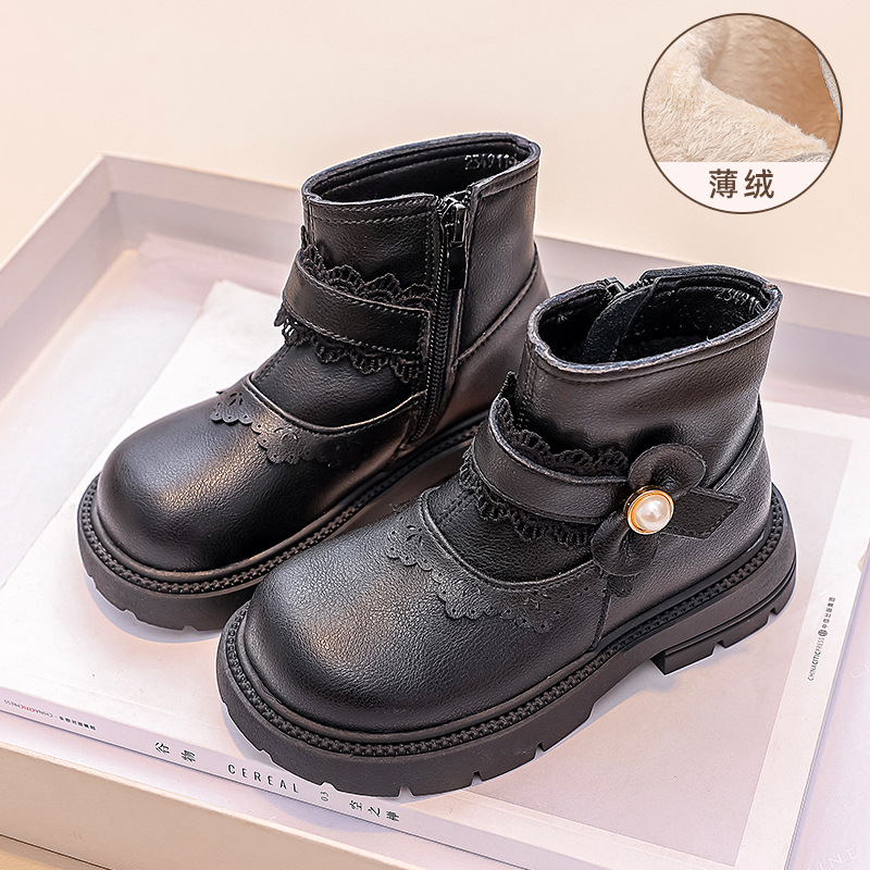 대신 머리 소녀 신발 어린이 가죽 부츠 2023 새로운 아기 가을과 겨울 기모 아기 마틴 부츠 가죽 부츠