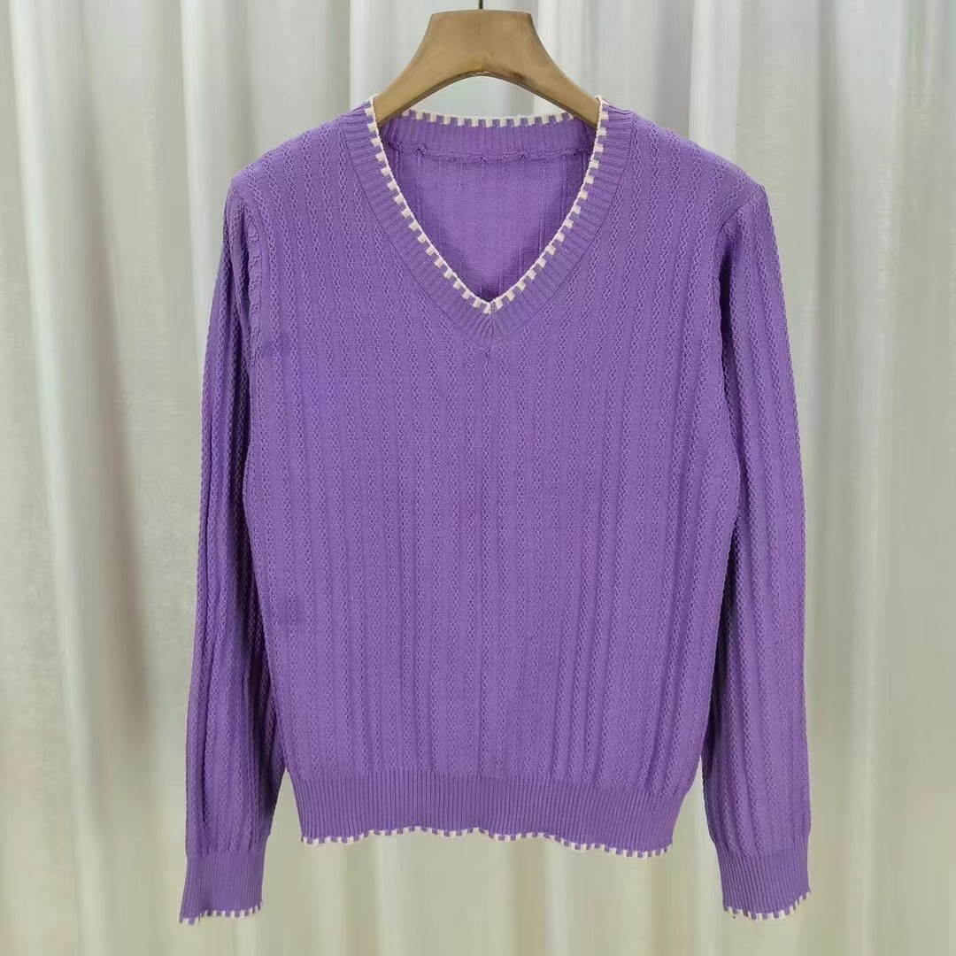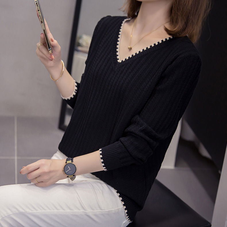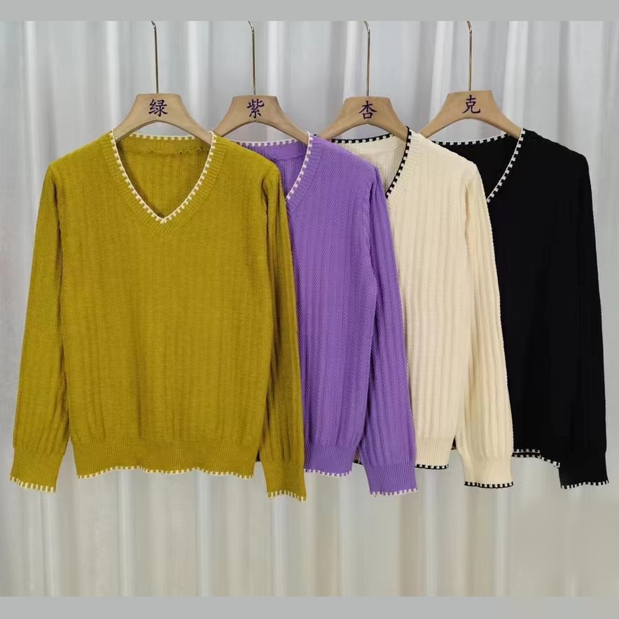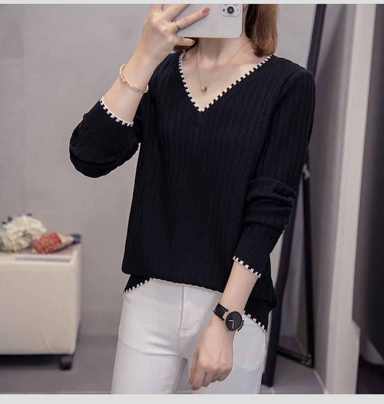 2025 가을 겨울 여성용 브이넥 니트 스웨터 탑, 다용도 스레드 디자인의 베이스 레이어, 루즈한 대형 사이즈 배 커버 탑스토어 가기