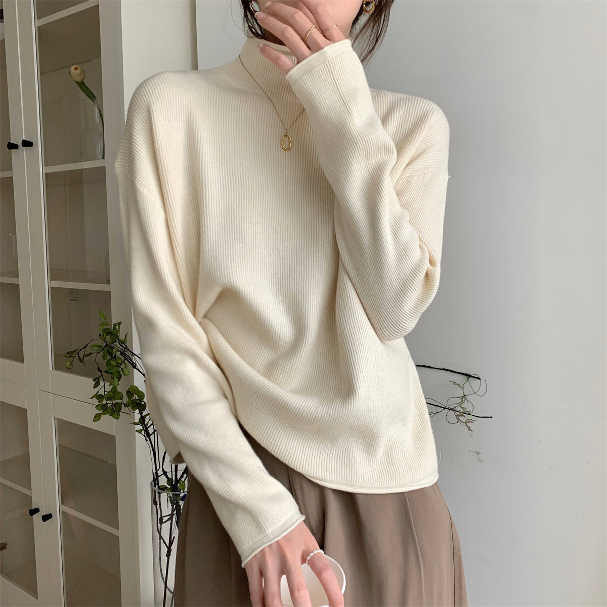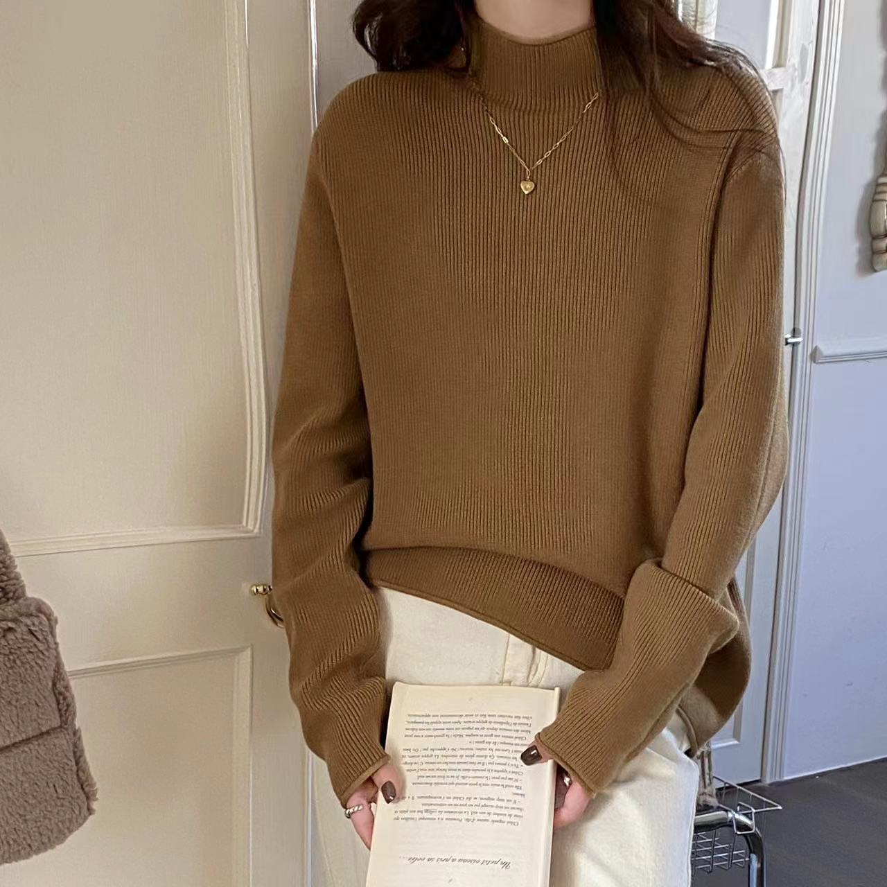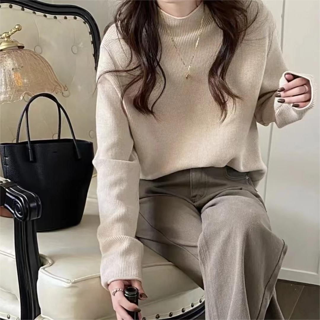 디자인 느낌 컬 하프 하이 넥 니트 베이스 셔츠 탑 여성의 가을과 겨울 새로운 간단한 내부 느슨한 풀오버 스웨터