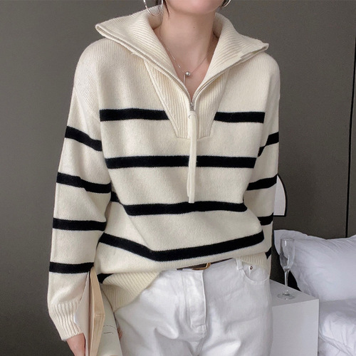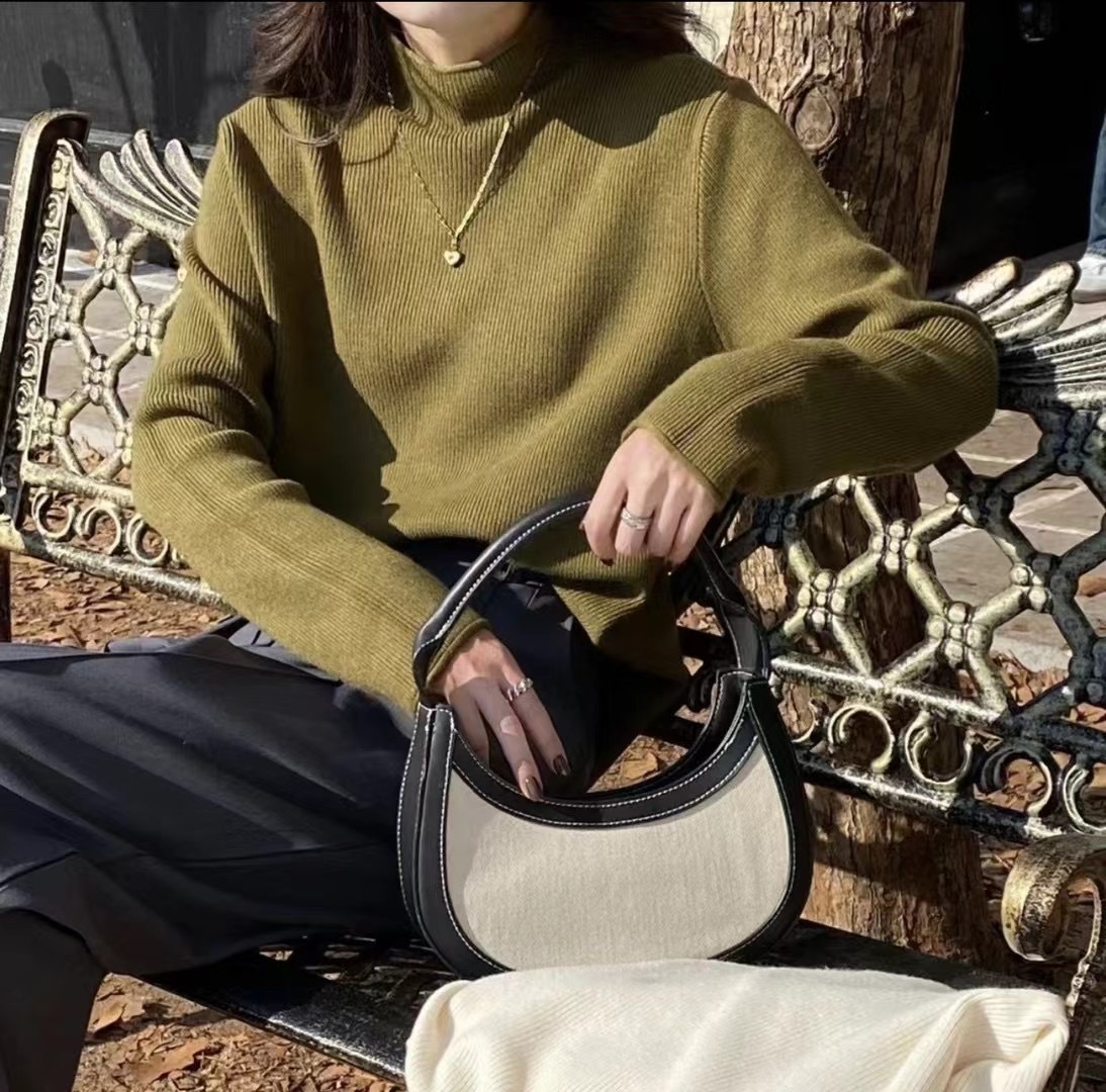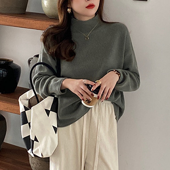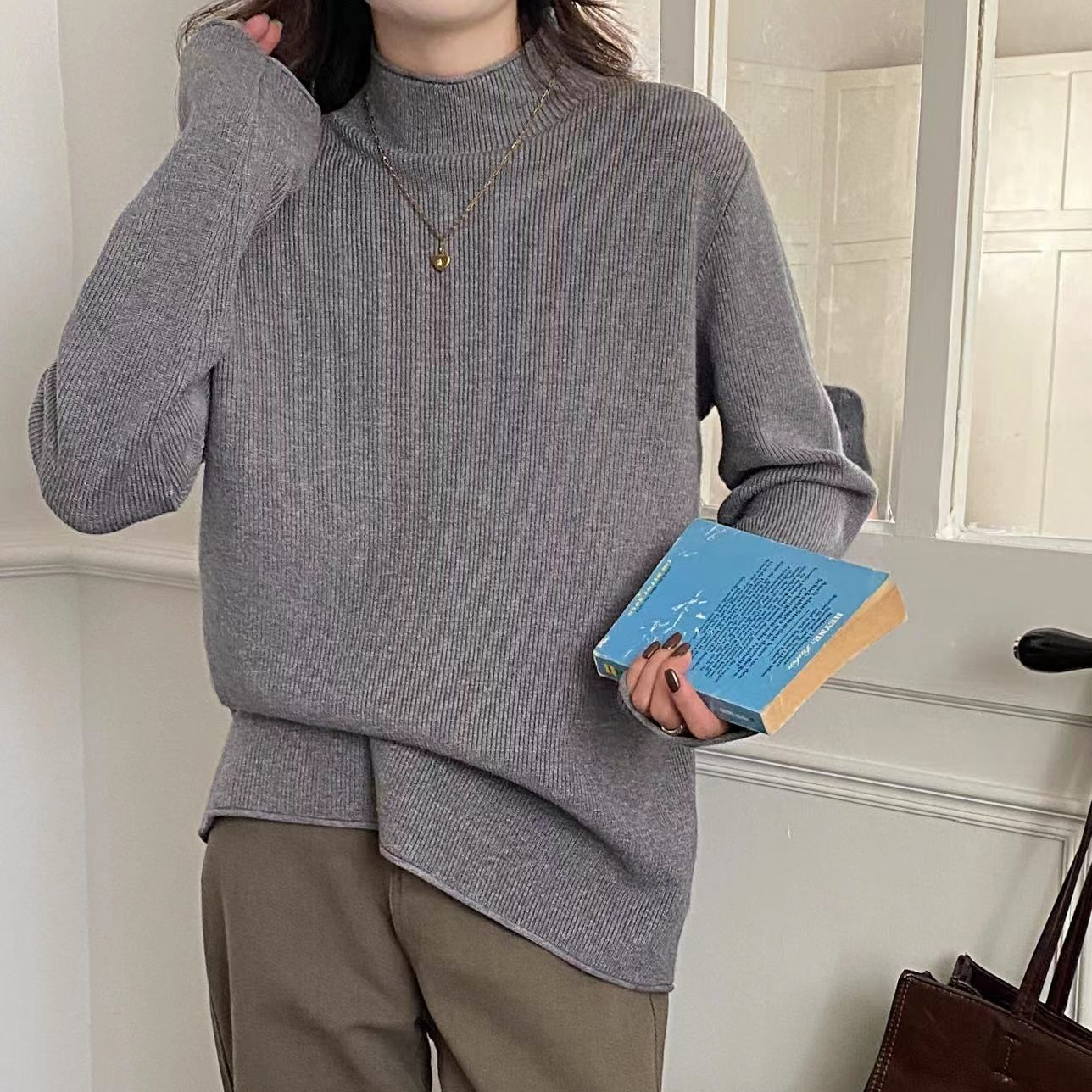디자인 느낌 컬 하프 하이 넥 니트 베이스 셔츠 탑 여성의 가을과 겨울 새로운 간단한 내부 느슨한 풀오버 스웨터