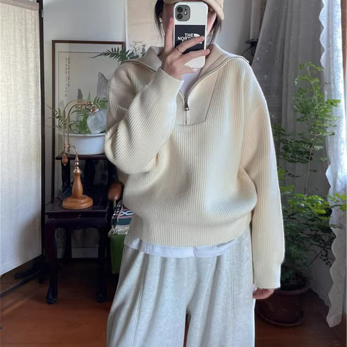 디자인 느낌 컬 하프 하이 넥 니트 베이스 셔츠 탑 여성의 가을과 겨울 새로운 간단한 내부 느슨한 풀오버 스웨터스토어 가기