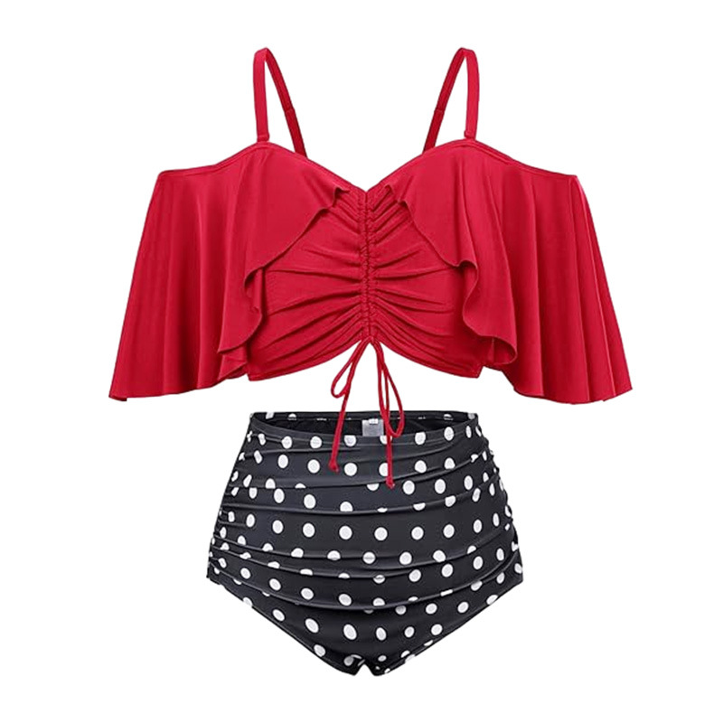 유럽과 미국 대외 무역 하이 웨이스트 슬리밍 푸시 업 플러스 사이즈 분할 수영복 연잎 소매 인쇄 비키니 비키니 수영복