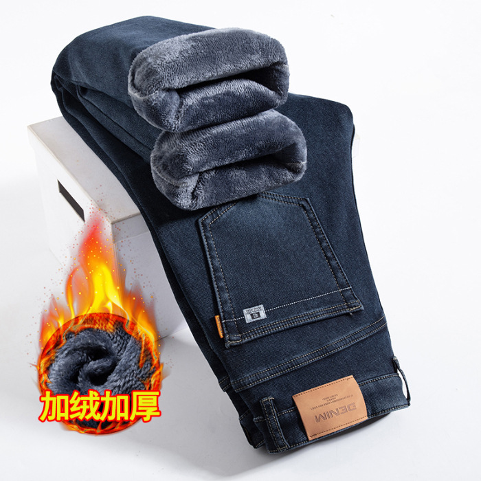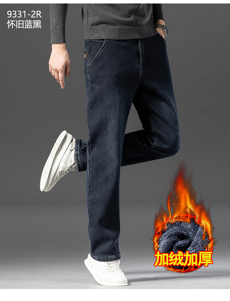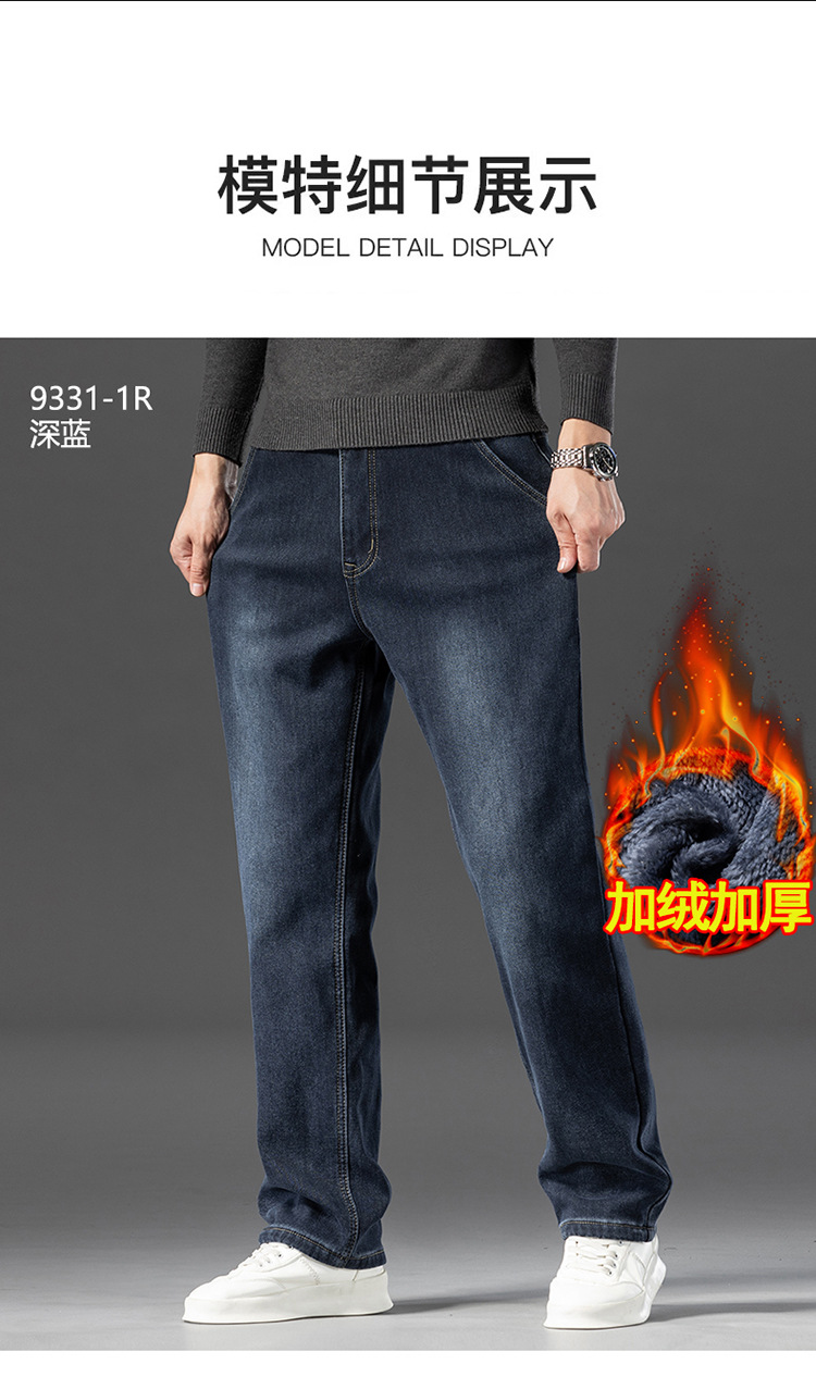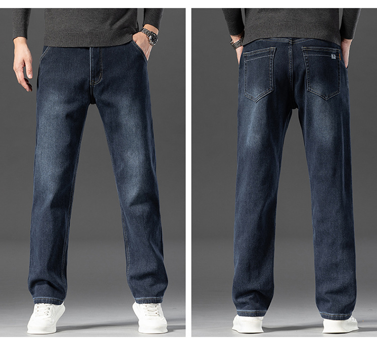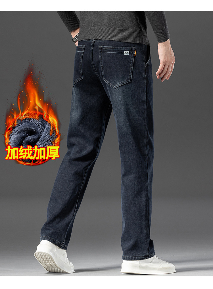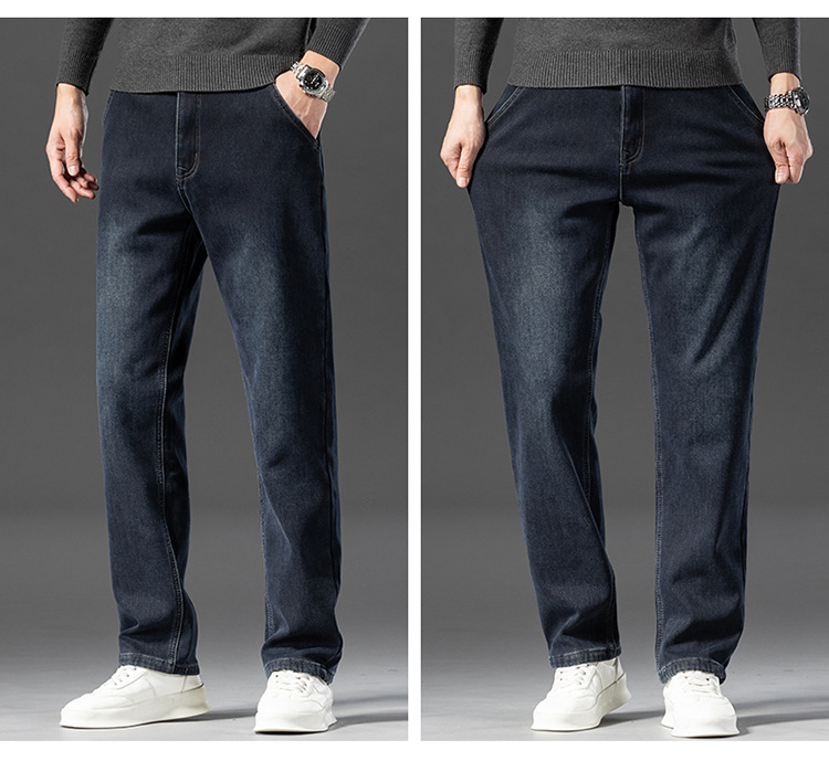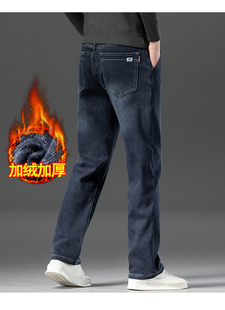 부드러운 겨울 기모 청바지 남자의 스트레이트 다리 느슨한 두꺼운 남성 바지 젊은 및 중년 하이 웨이스트 따뜻한 양털 긴 바지스토어 가기