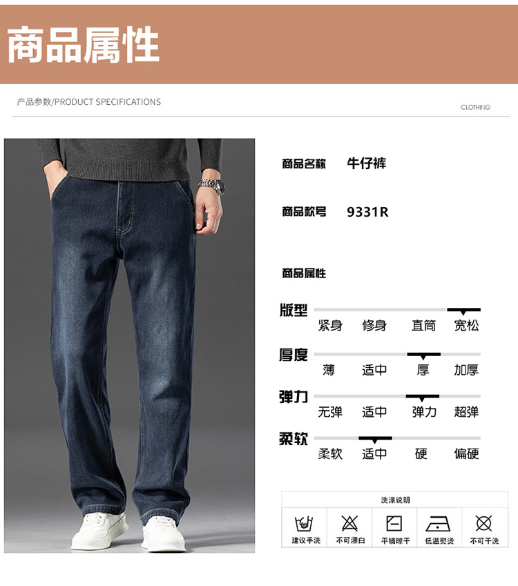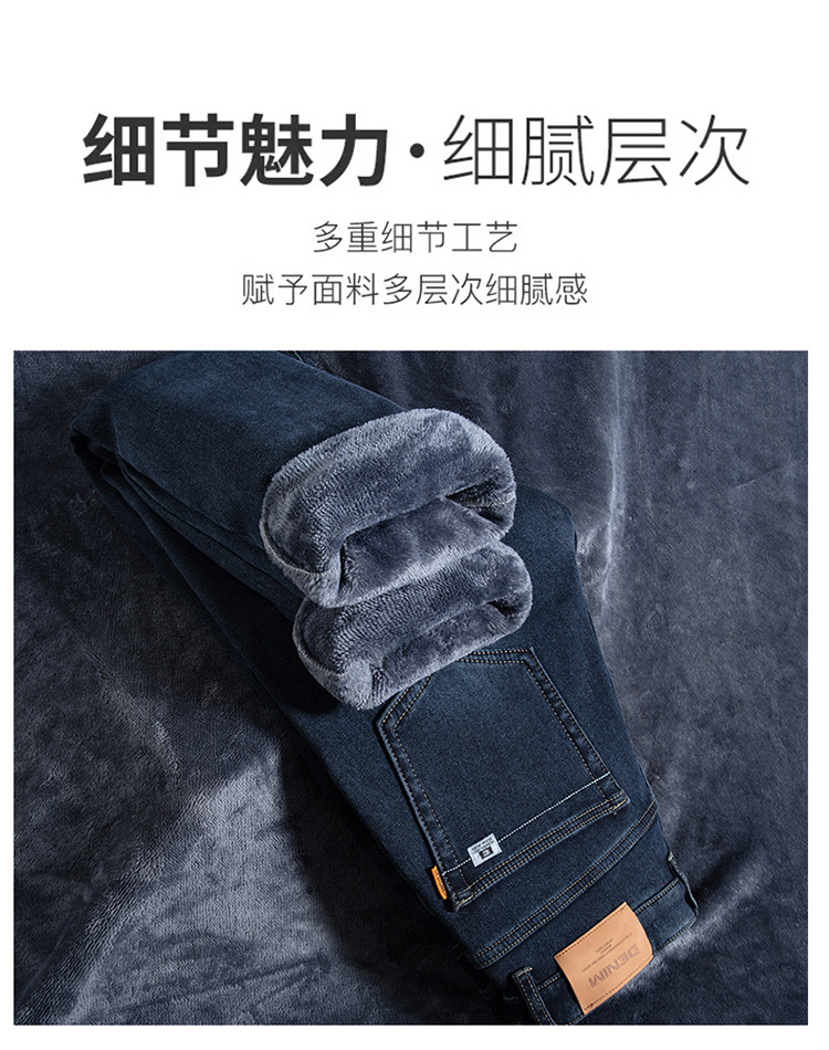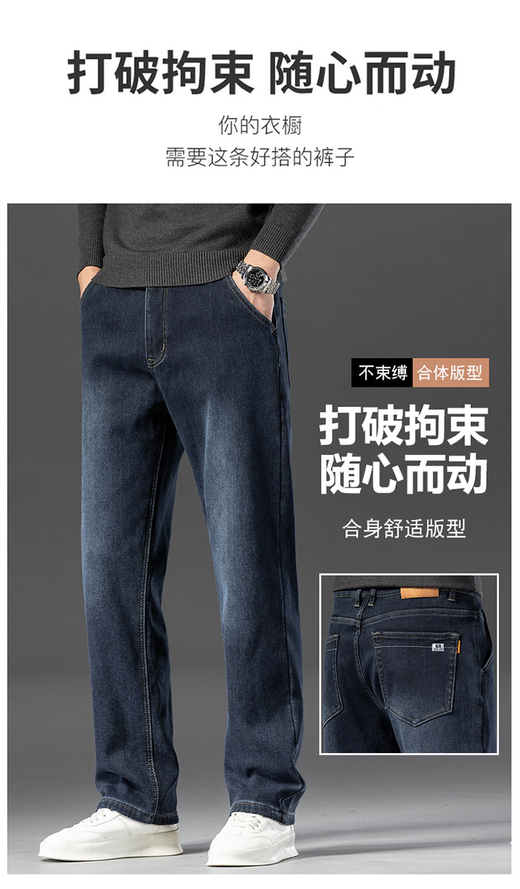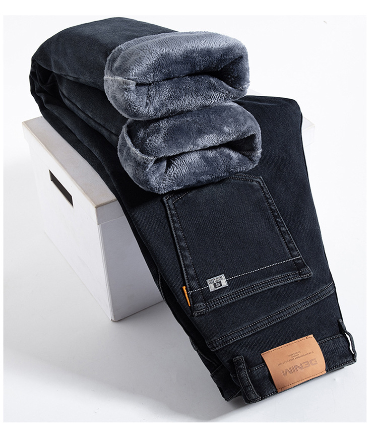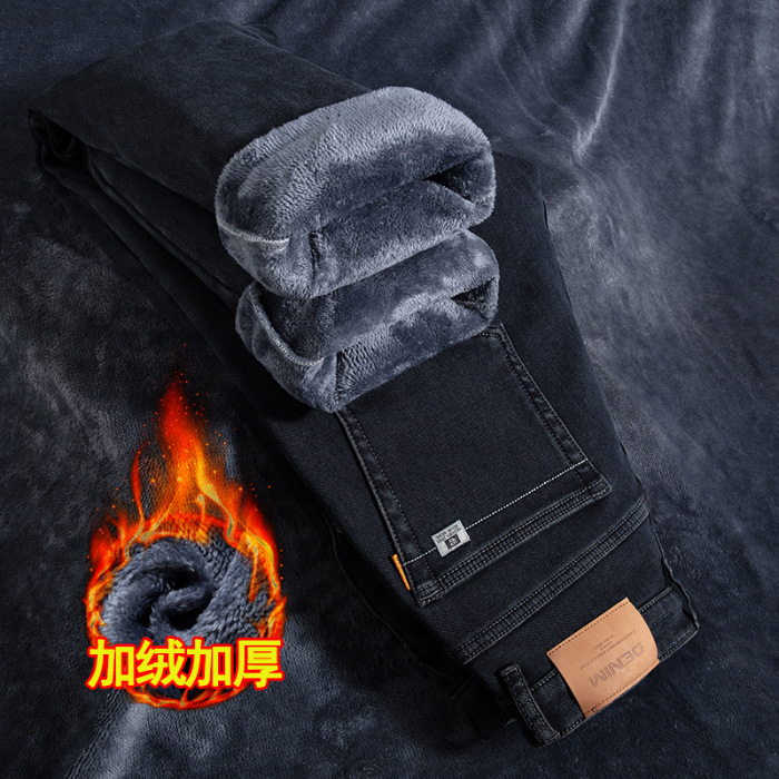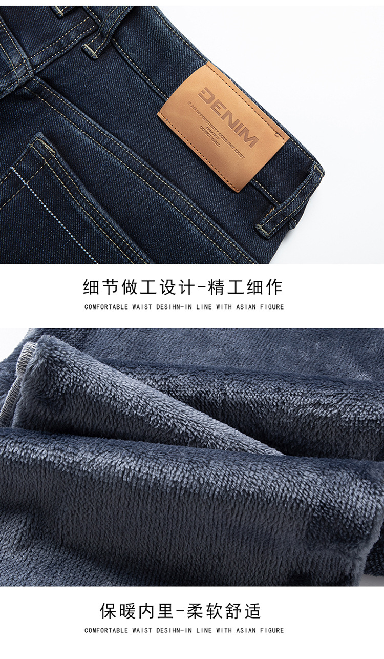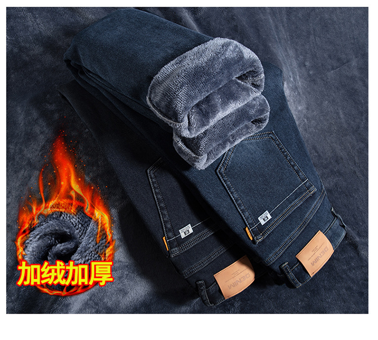부드러운 겨울 기모 청바지 남자의 스트레이트 다리 느슨한 두꺼운 남성 바지 젊은 및 중년 하이 웨이스트 따뜻한 양털 긴 바지스토어 가기