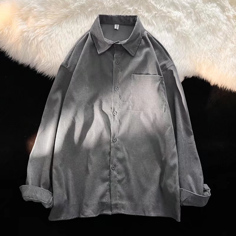 코듀로이 긴팔 셔츠 재킷 남자의 봄 유행 복고풍 홍콩 스타일 남자의 인기 브랜드 느슨한 캐주얼 셔츠