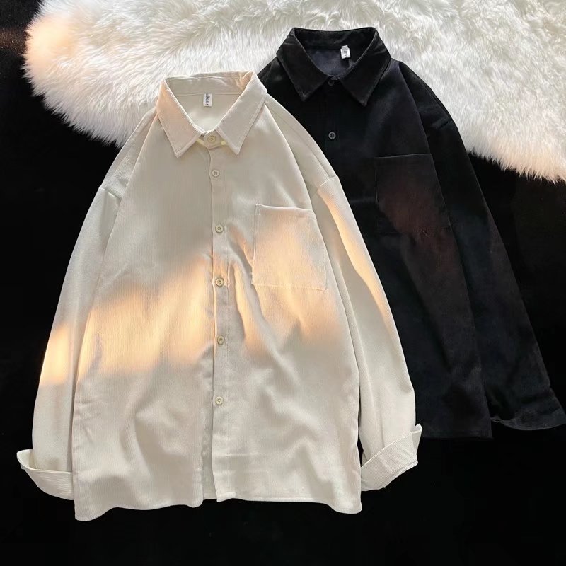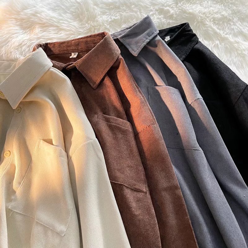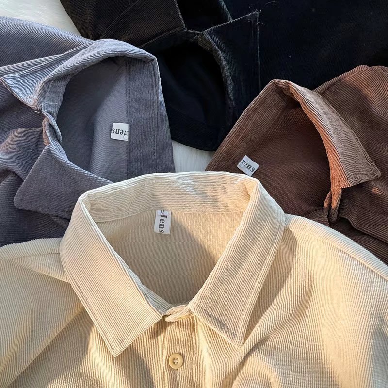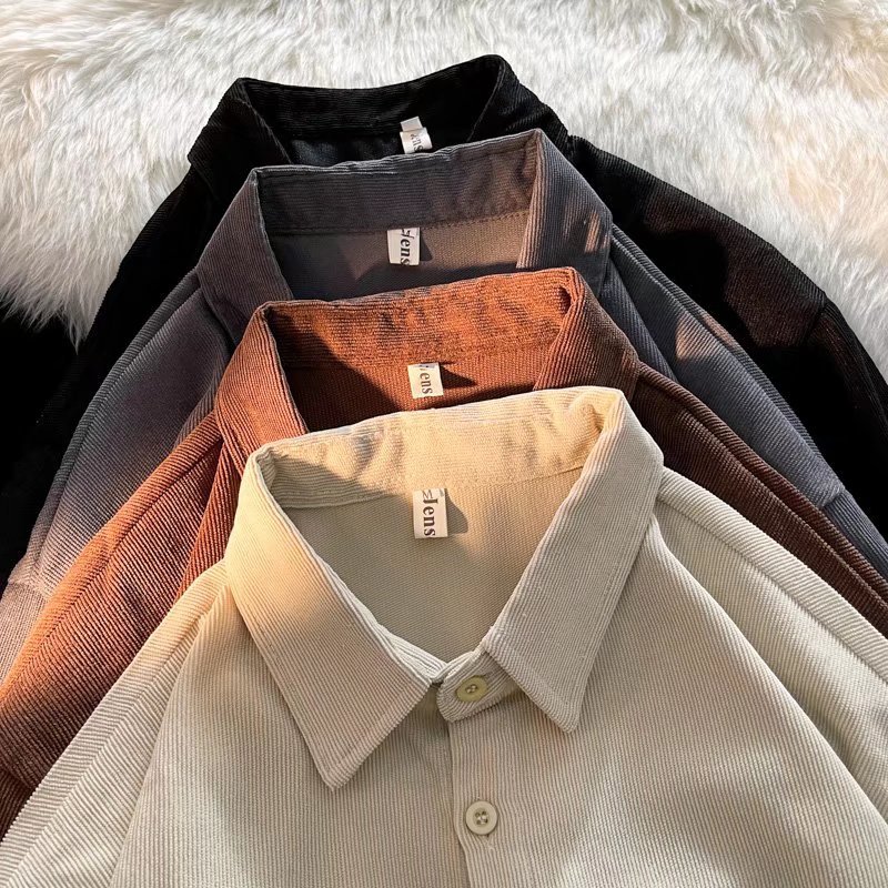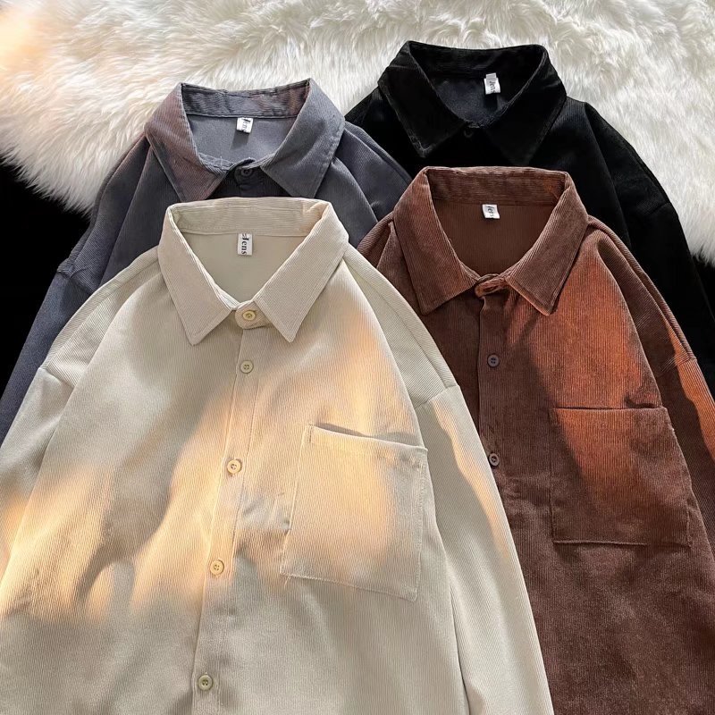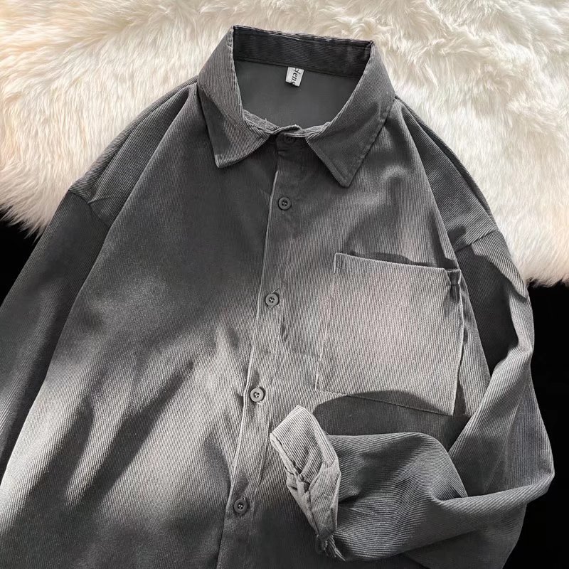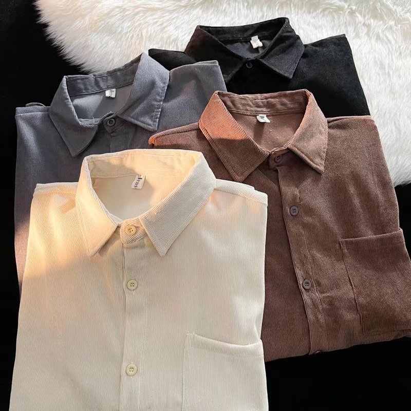 코듀로이 긴팔 셔츠 재킷 남자의 봄 유행 복고풍 홍콩 스타일 남자의 인기 브랜드 느슨한 캐주얼 셔츠스토어 가기