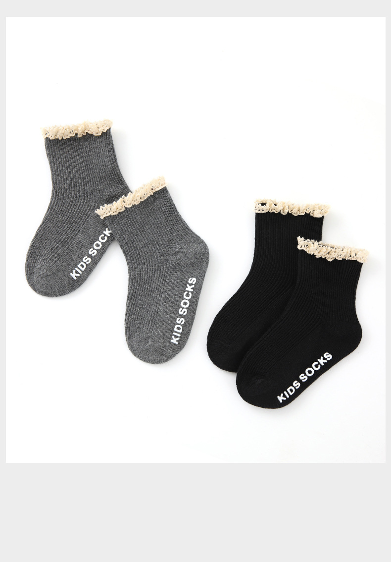 어린이 양말 봄과 가을 아기 바닥 양말 아기 미끄럼 방지 유아 양말 소녀 뼈없는 느슨한 양말 레이스 공주 양말
