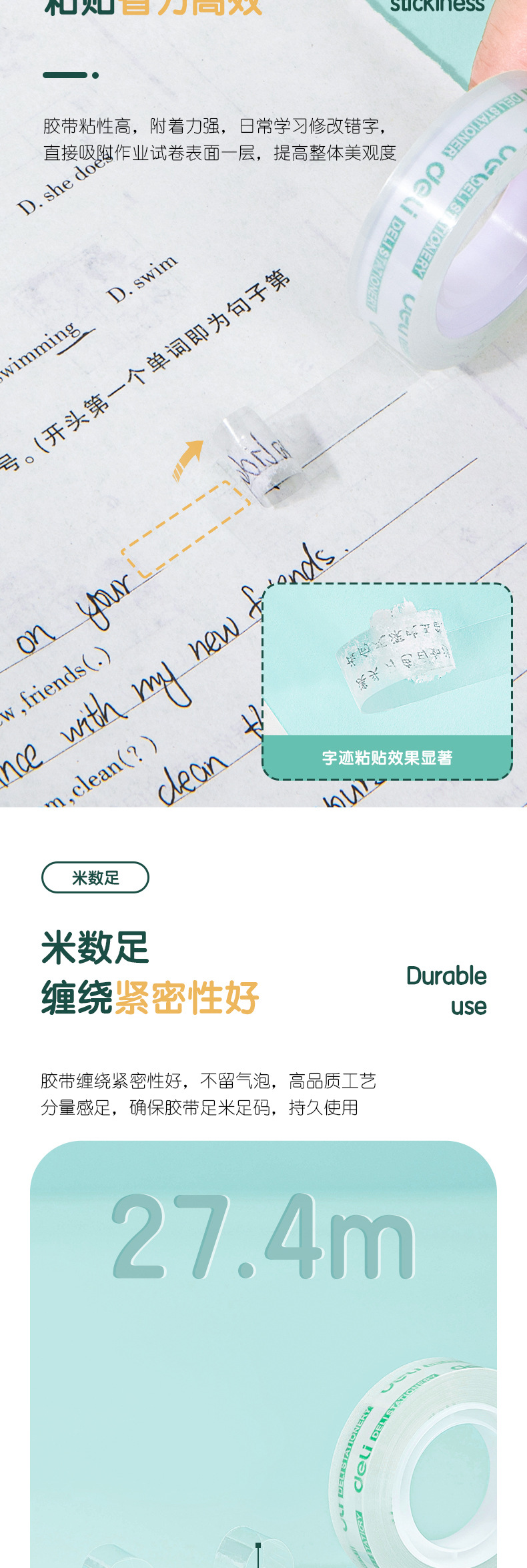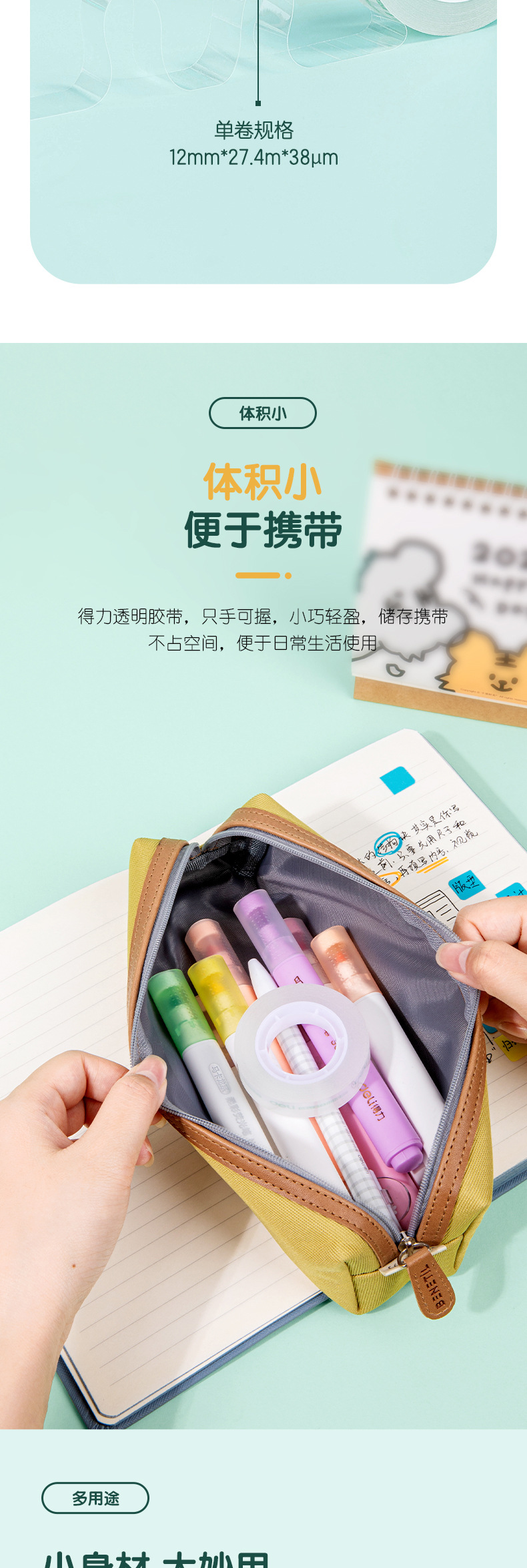 델리 문구 작은 테이프 학생 수제 투명 접착제 12mm 손 눈물 작은 테이프 사무실 좁은 테이프 스몰 사이즈 테이프