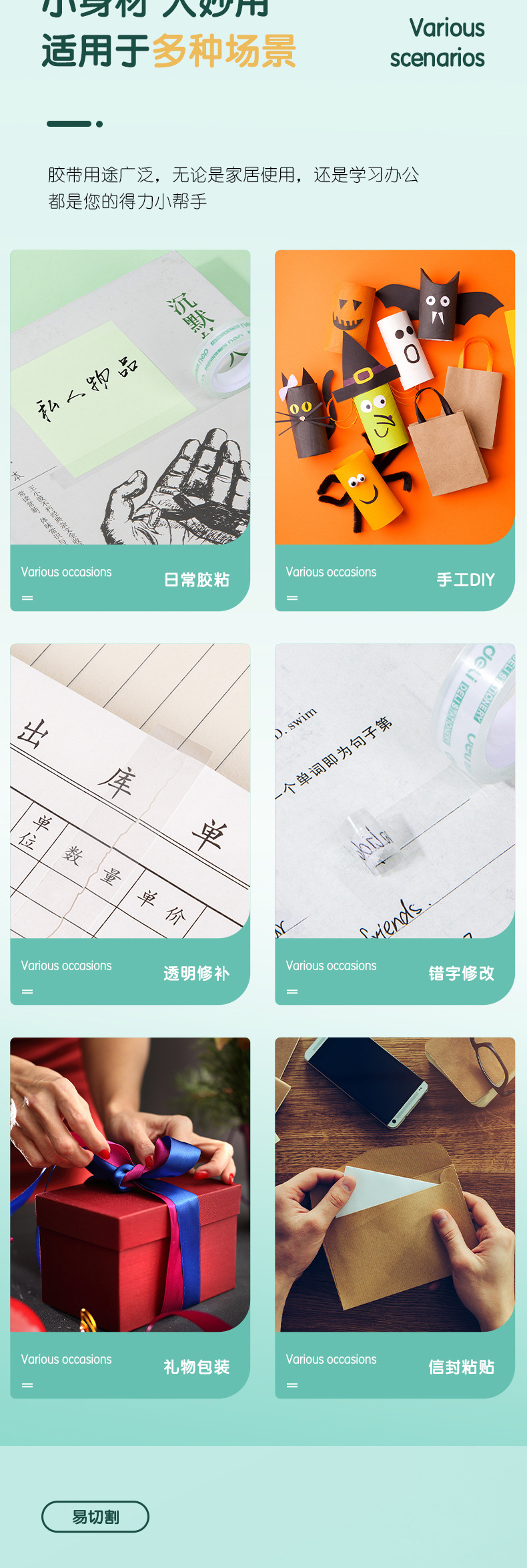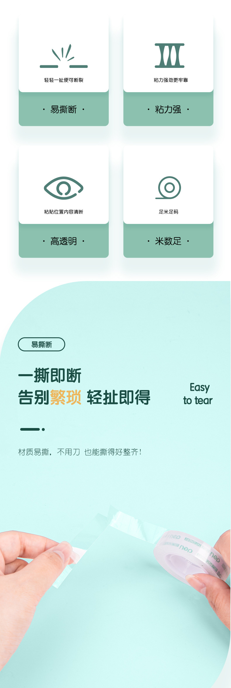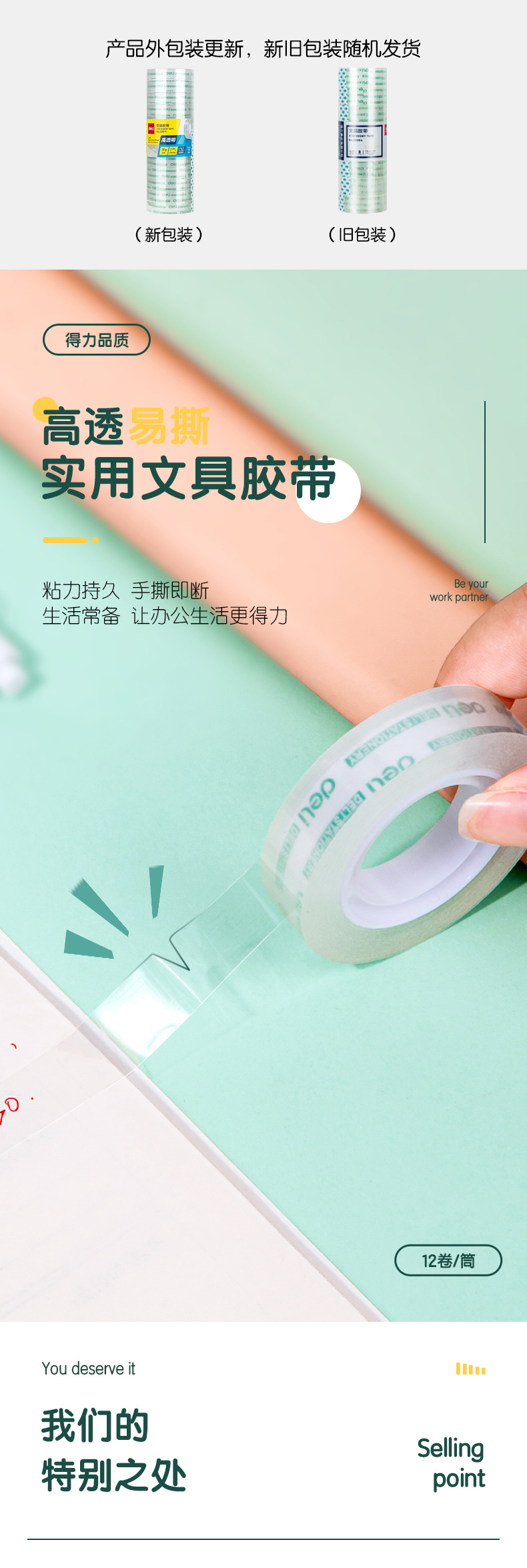• 1롤 가격 30011 쉽게 찢어지는 문구 테이프 12mm*14y*38um (12롤/튜브)