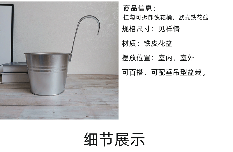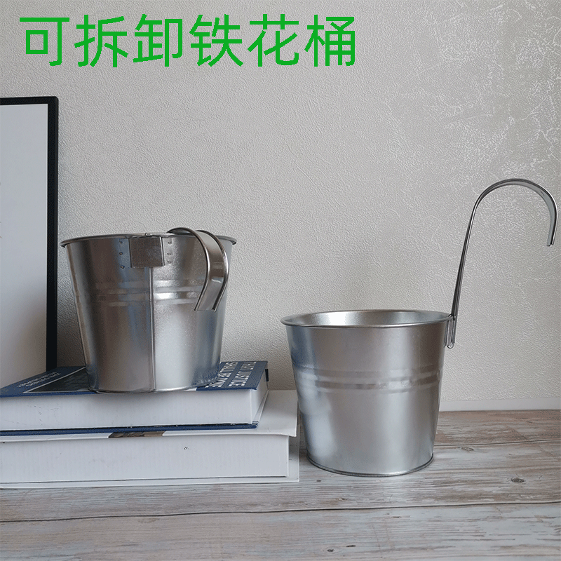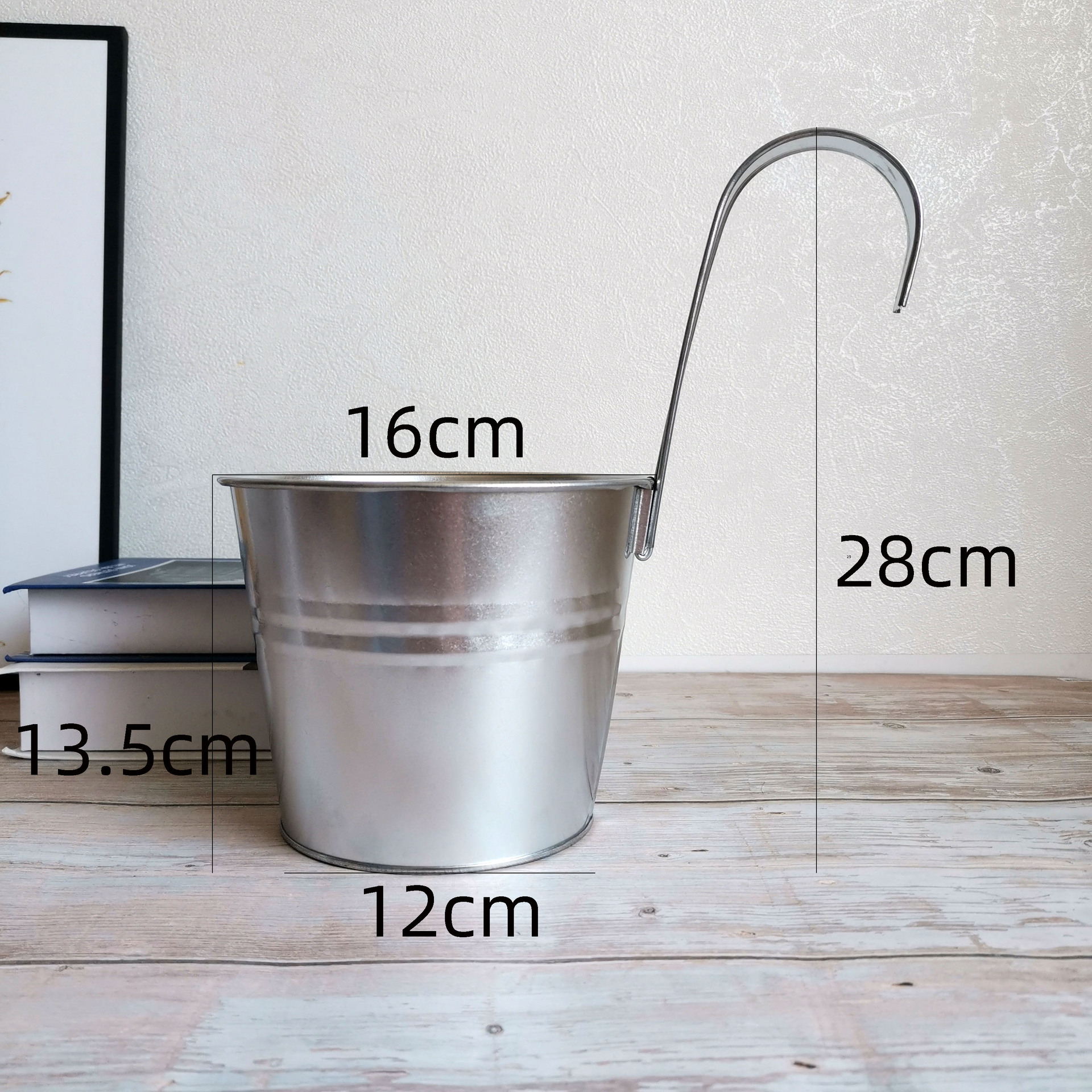 아마존 철 매달린 양동이 아연 도금 화분 발코니 난간 매달린 냄비 철 꽃 양동이 이동식 후크 매달려 화분