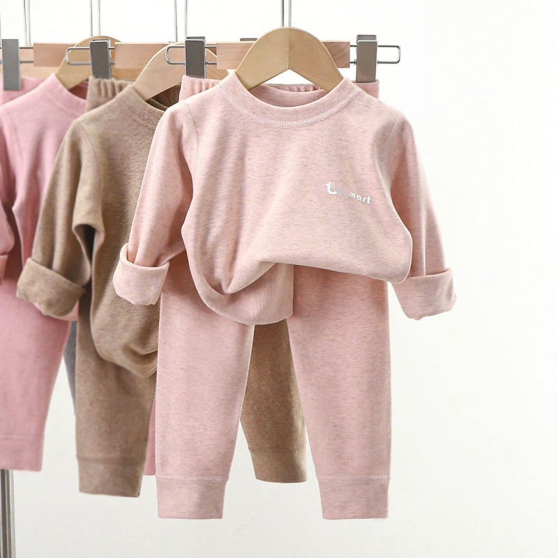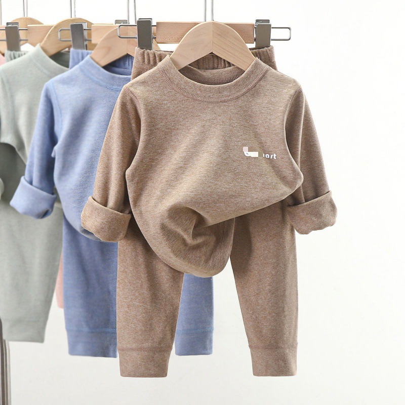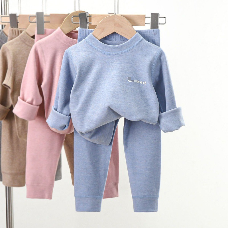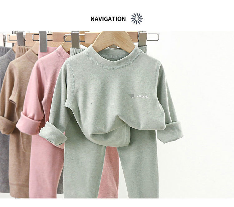 작은 높은 칼라 세트 중간 고리 작은 얇은 스트립 자체 난방 중간 및 대형 어린이 가을 의류 및 바지 가정 의류 세트 어린이스토어 가기