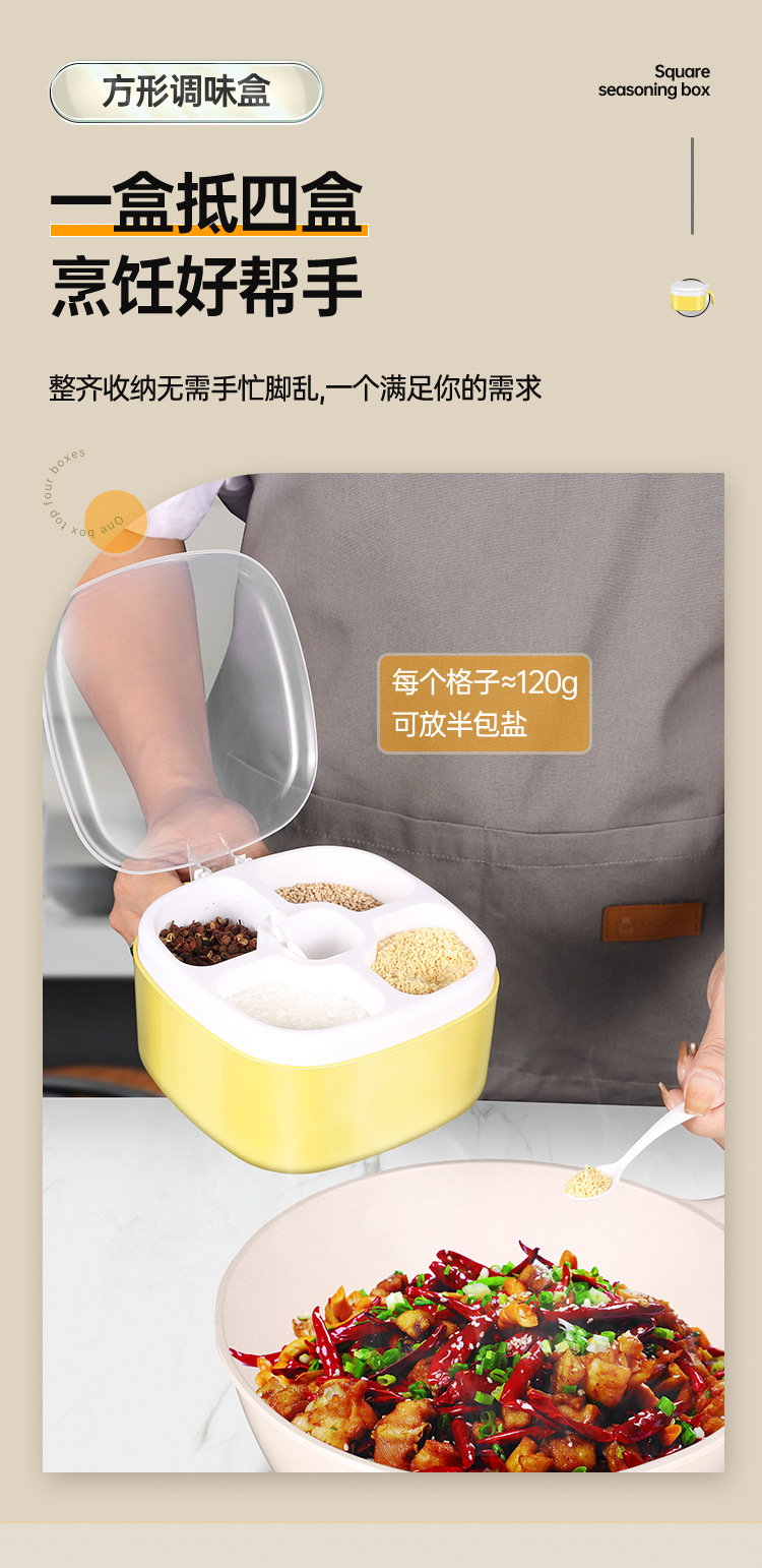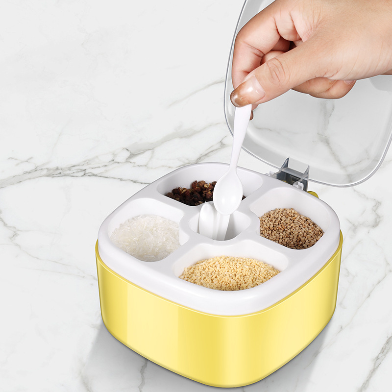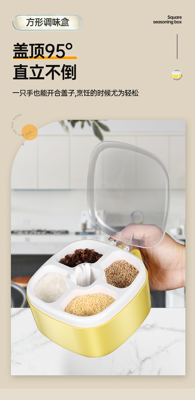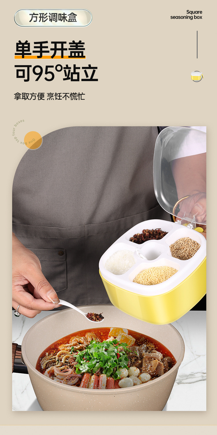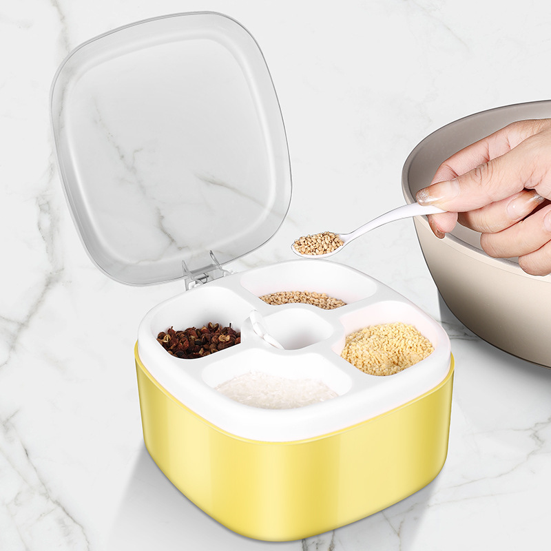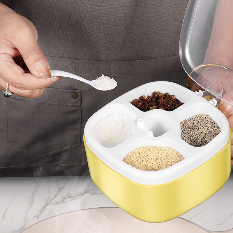 조미료 상자 조합 세트 멀티 그리드 통합 소금 및 글루탐산 모노 나트륨 치킨 에센스 조미료 상자 뚜껑 보관 조미료 상자가있는 가정용 주방