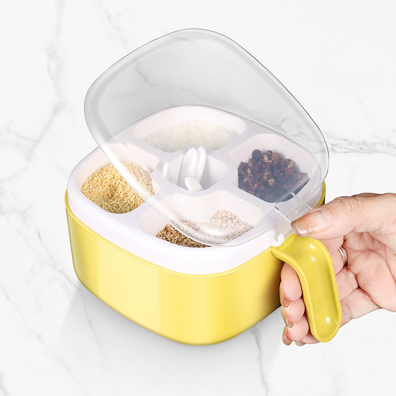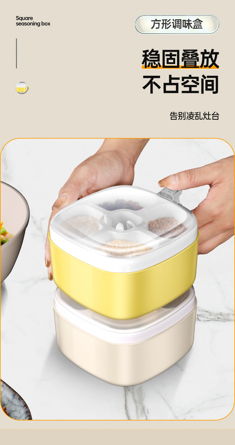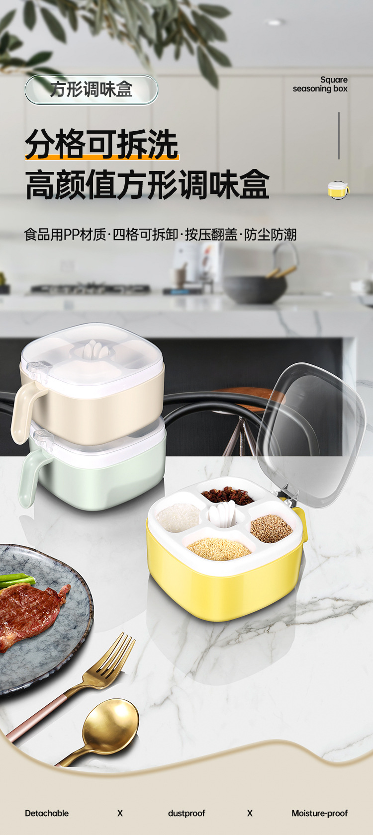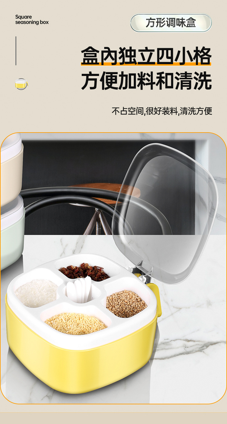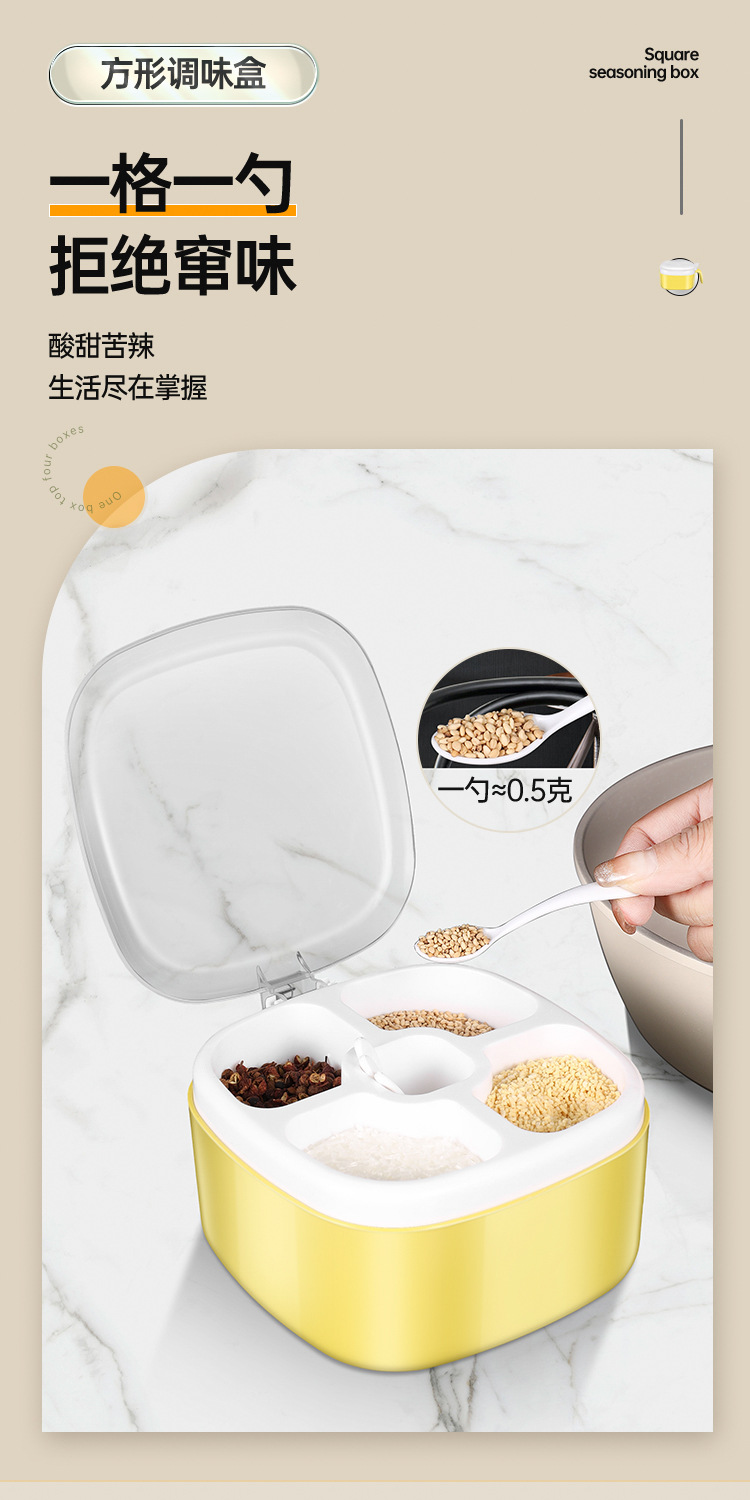 조미료 상자 조합 세트 멀티 그리드 통합 소금 및 글루탐산 모노 나트륨 치킨 에센스 조미료 상자 뚜껑 보관 조미료 상자가있는 가정용 주방