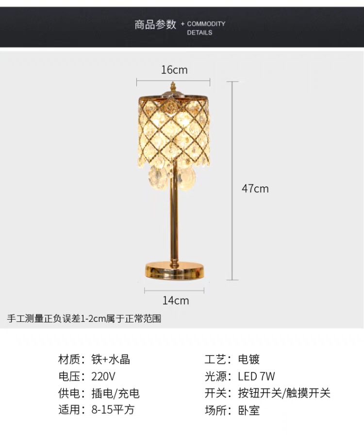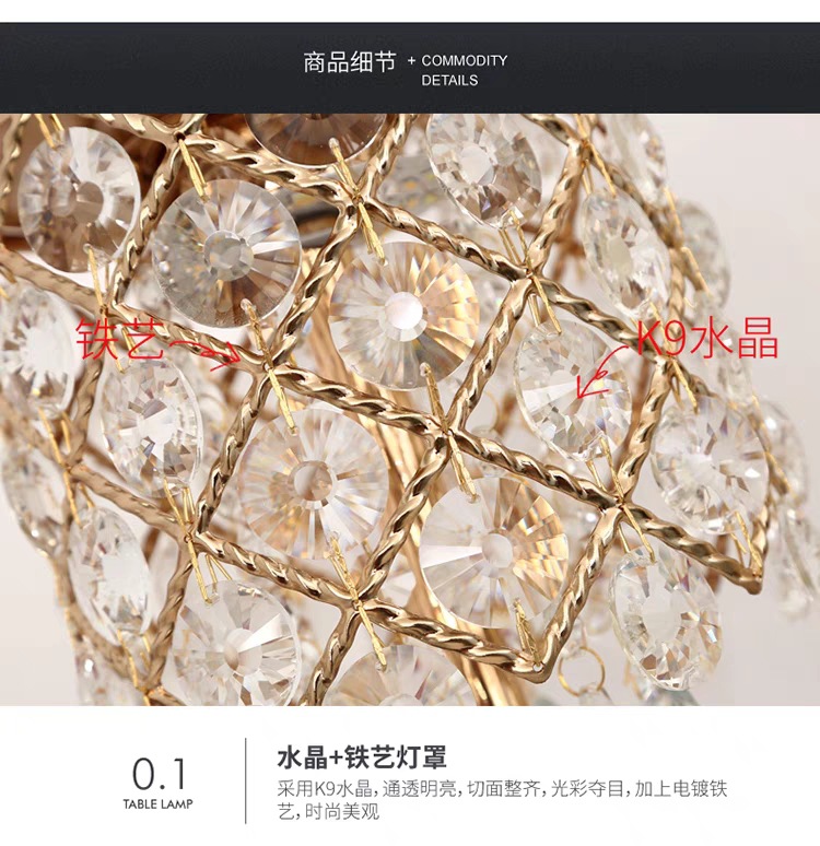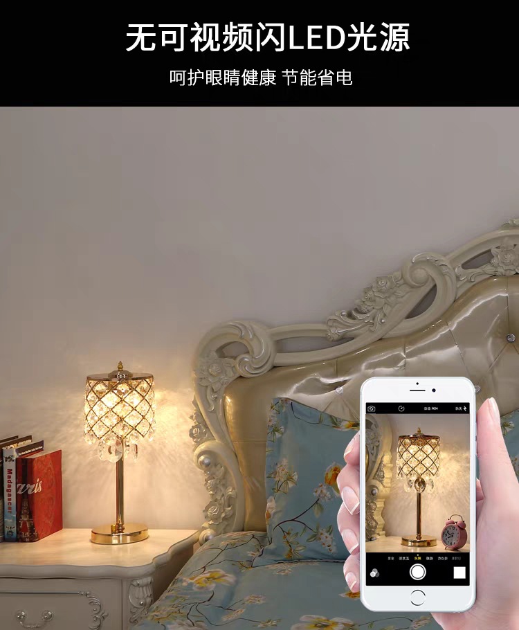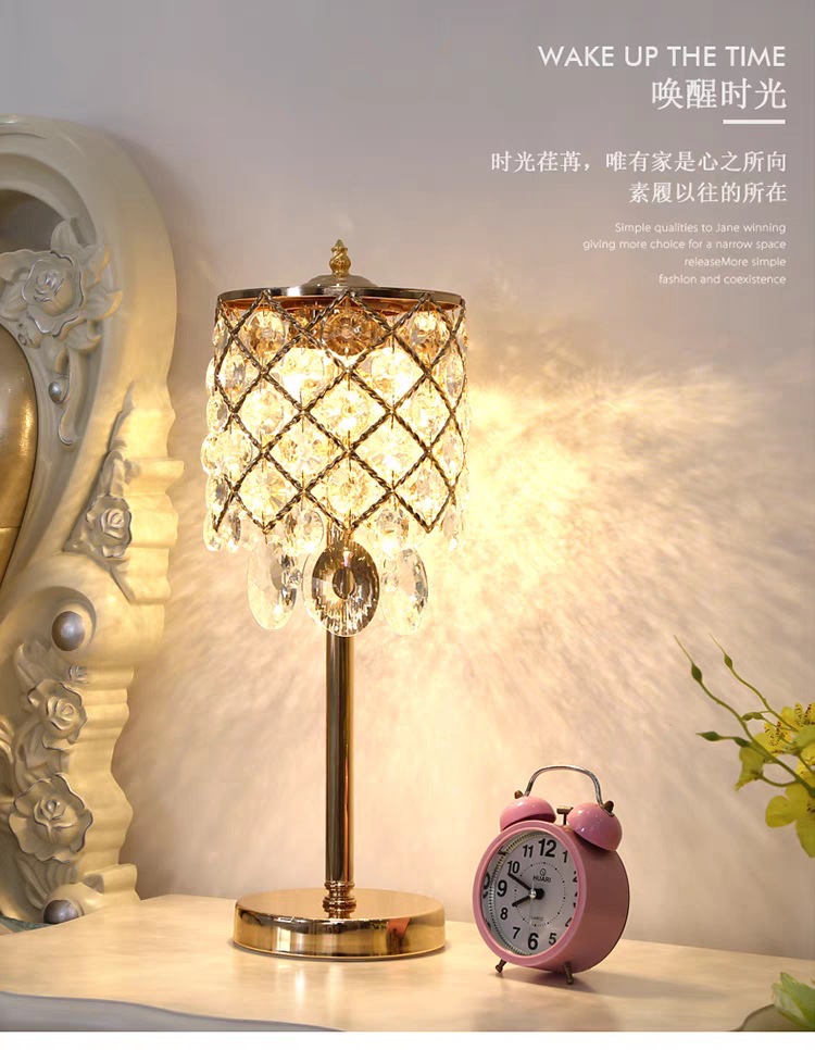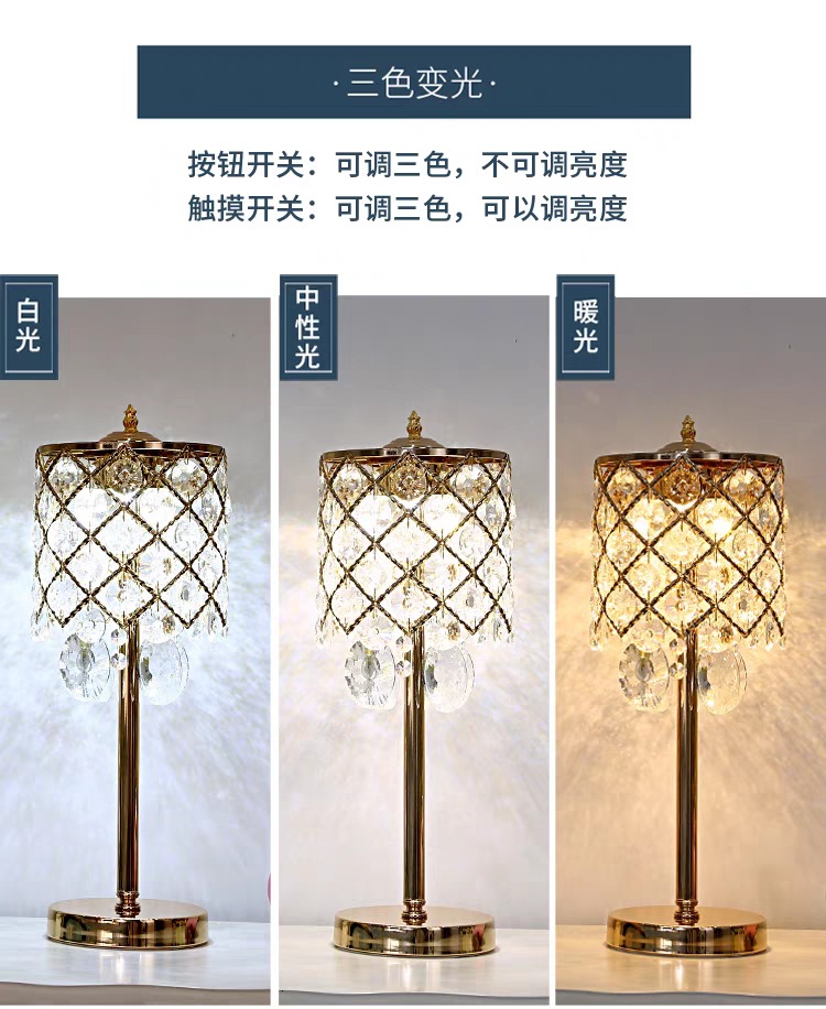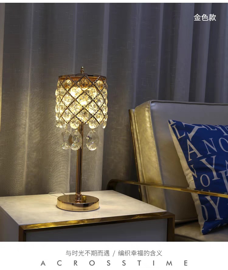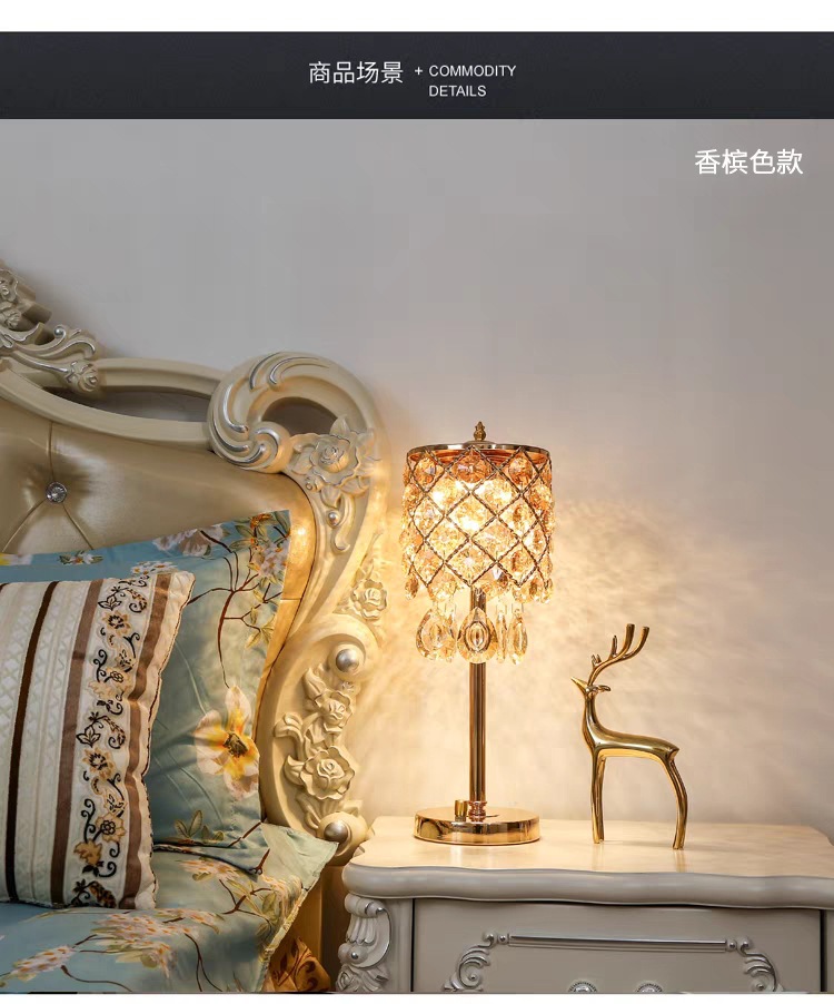 크리스탈 테이블 램프 침실 침대 옆 램프 조명 럭셔리 고급 감각 간단한 현대 크리에이티브 터치 웨딩 침대 옆 탁자 조명